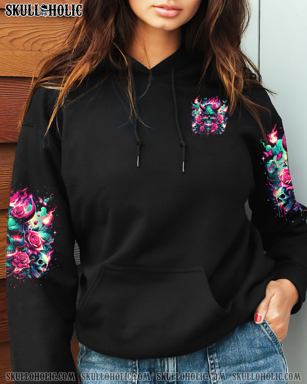 Our TLNO2003241 all over print showcases a mesmerizing design of a skull demon crowned with enchanting roses. This design delves into the quote “and when her halo broke, she carved the two halves into horns,” representing the strength and resilience gained in the face of adversity. Embrace your inner darkness and rise above life’s challenges with this powerful symbol.