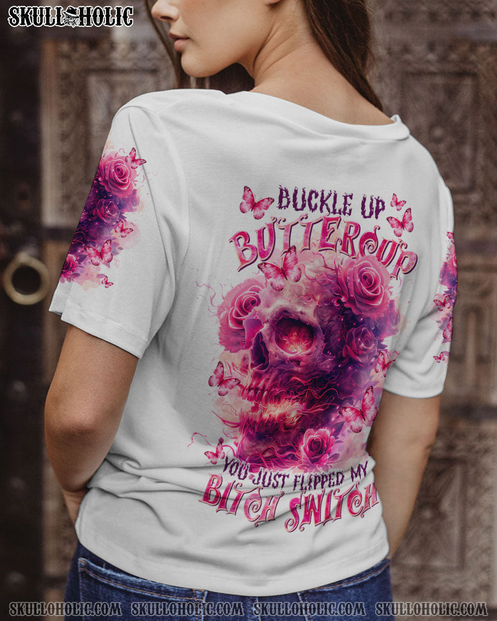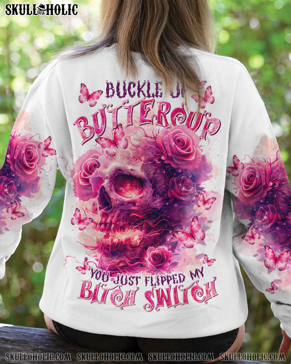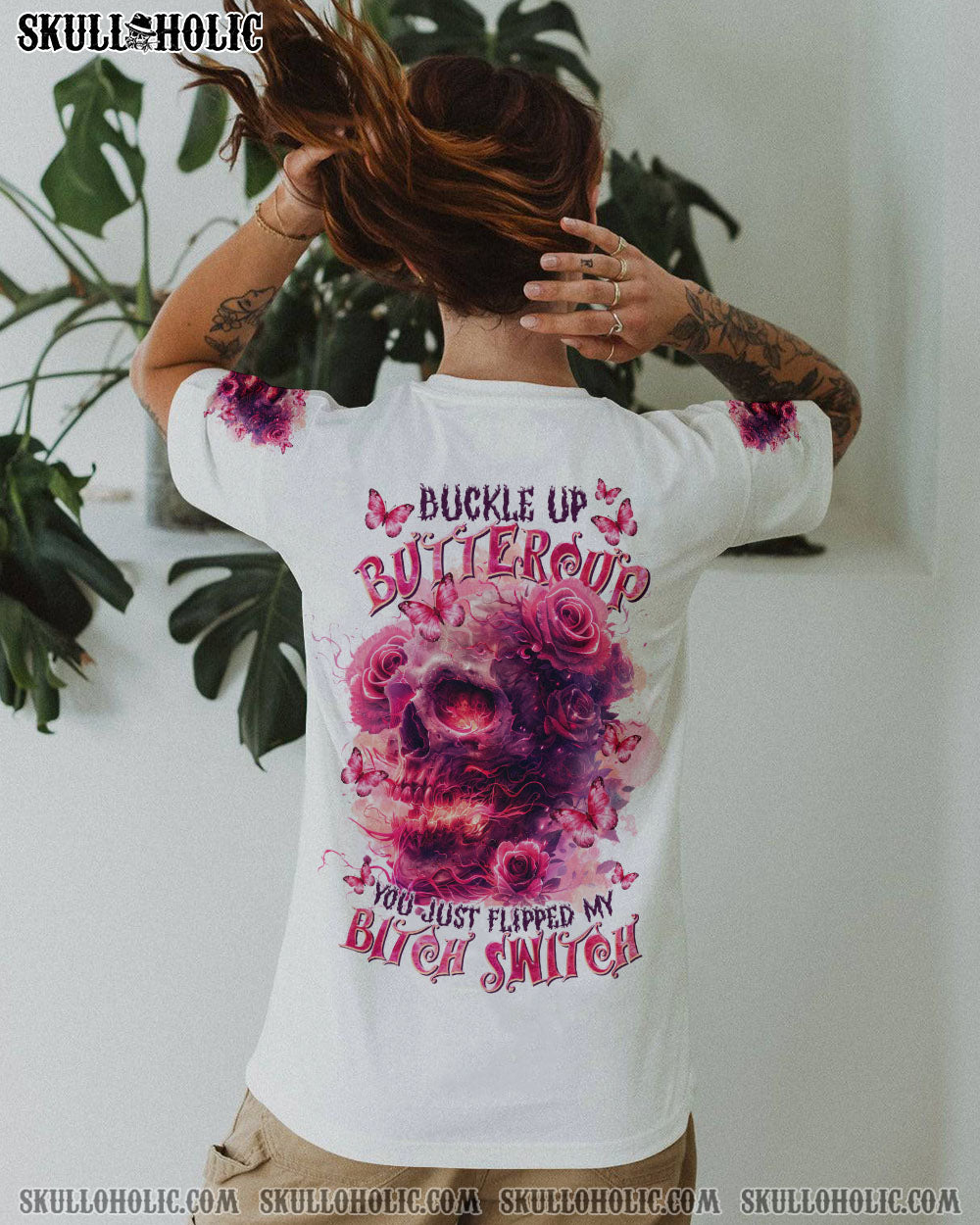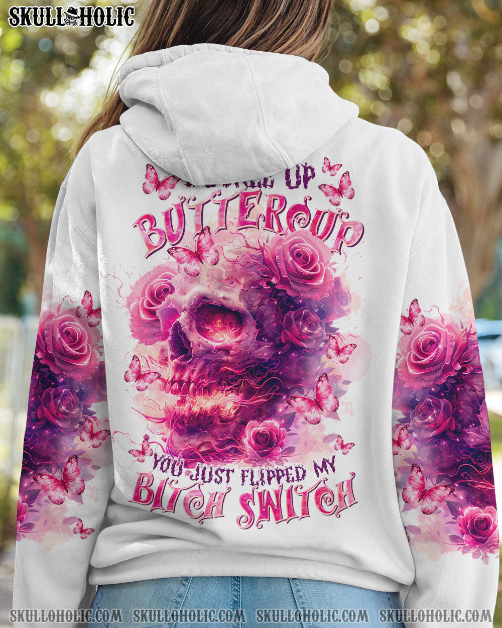 Unleash your fierce side with our B SWITCH ROSE SKULL ALL OVER PRINT. This skull design features ghostly roses and an angry expression, representing intense emotions. The quote warns against provoking anger, showcasing the speaker’s assertiveness and determination.