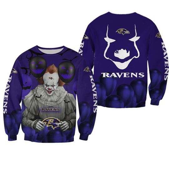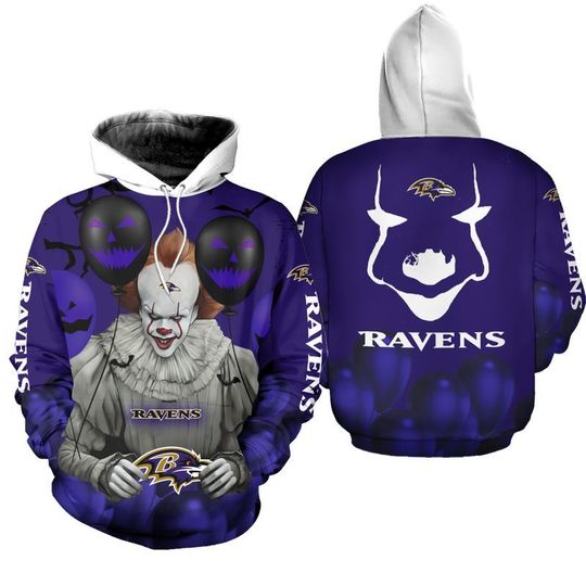 BALTIMORE RAVENS PENNYWISE THE DANCING CLOWN IT HALLOWEEN 3D ALL OVER PRINT HOODIE – LIMITED EDITION