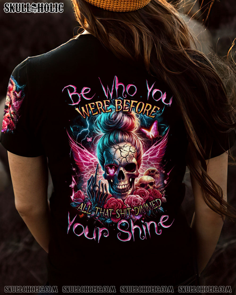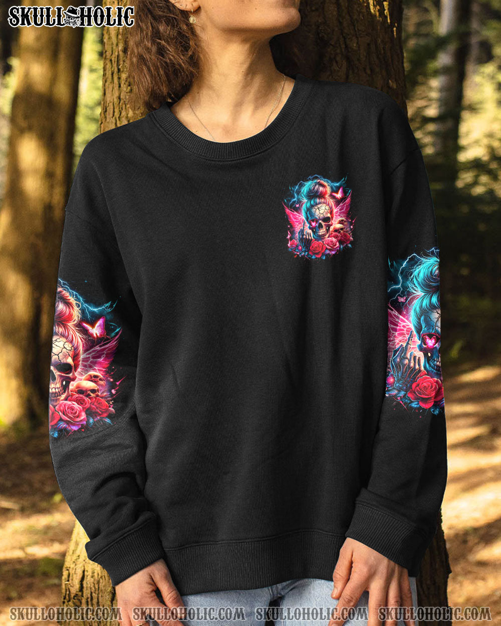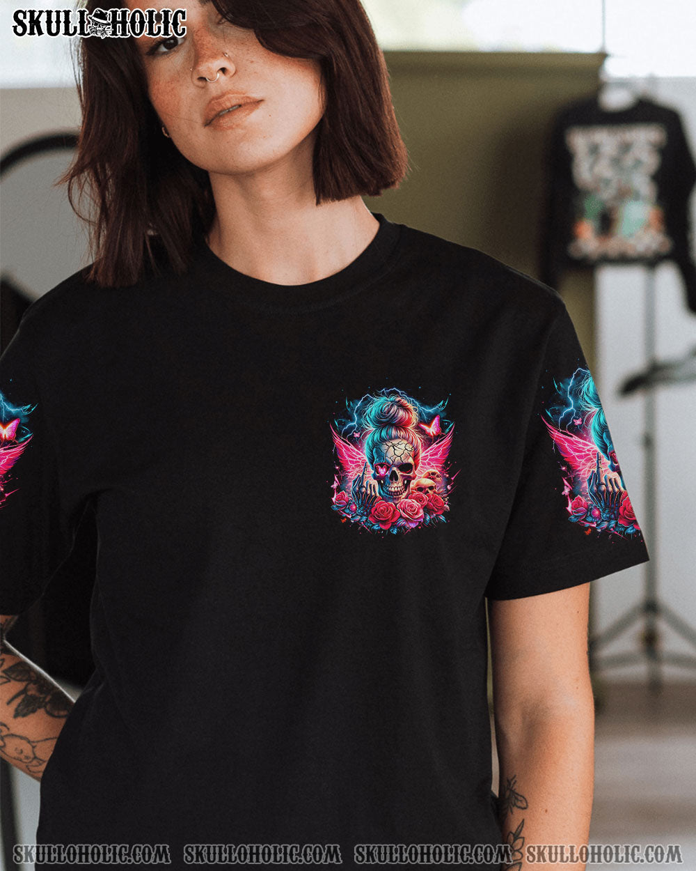 Unleash your inner strength with our BE WHO YOU SKULL ALL OVER PRINT – TYQY0405241. This captivating design features a skull bun, shining wings, roses, butterflies, lightning, and a powerful quote, representing resilience and power. Let this striking masterpiece inspire you to conquer any challenge and soar to new heights.💀🦋🌹