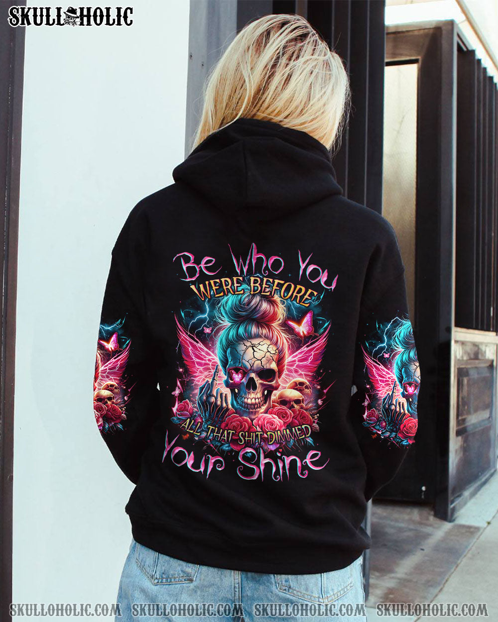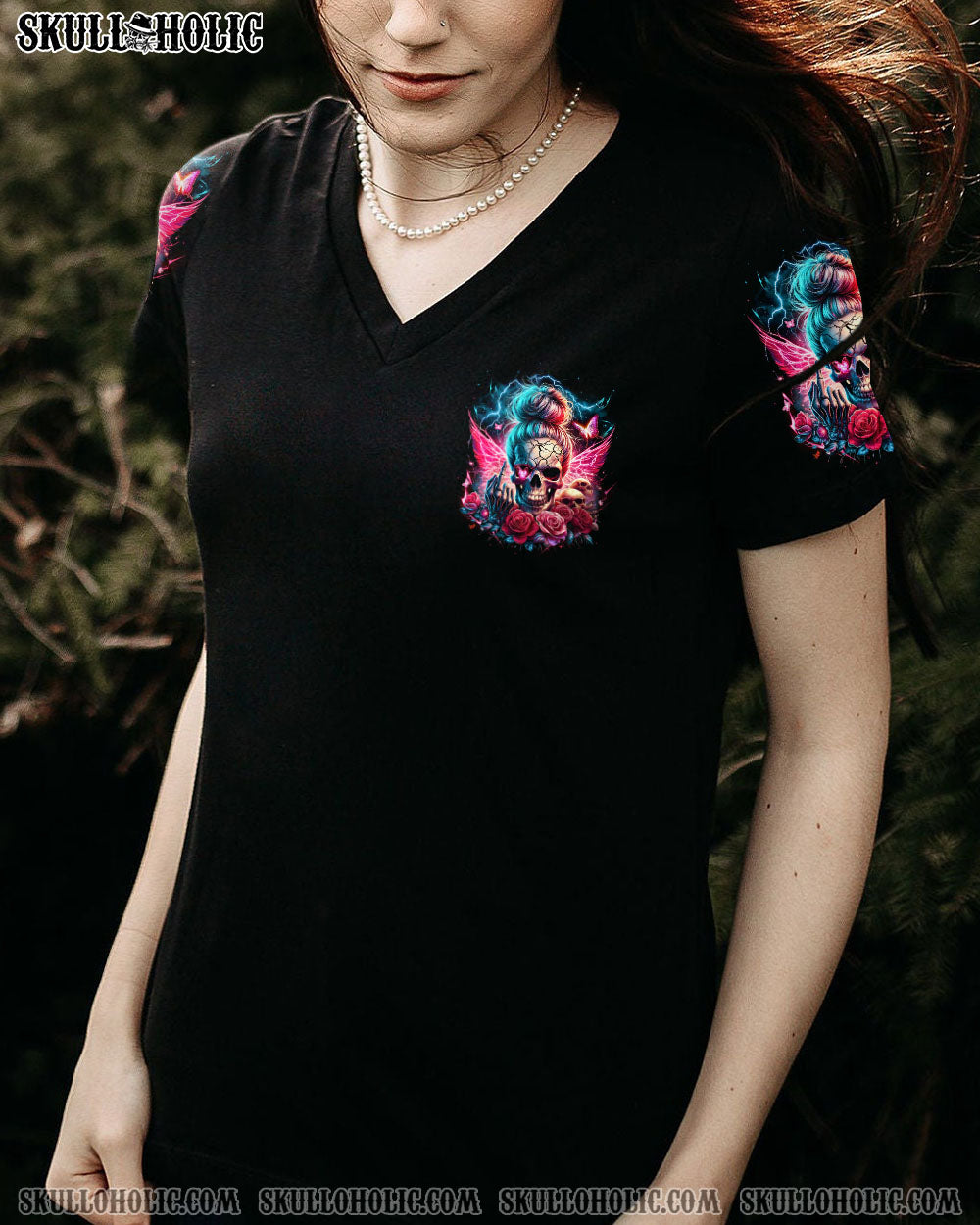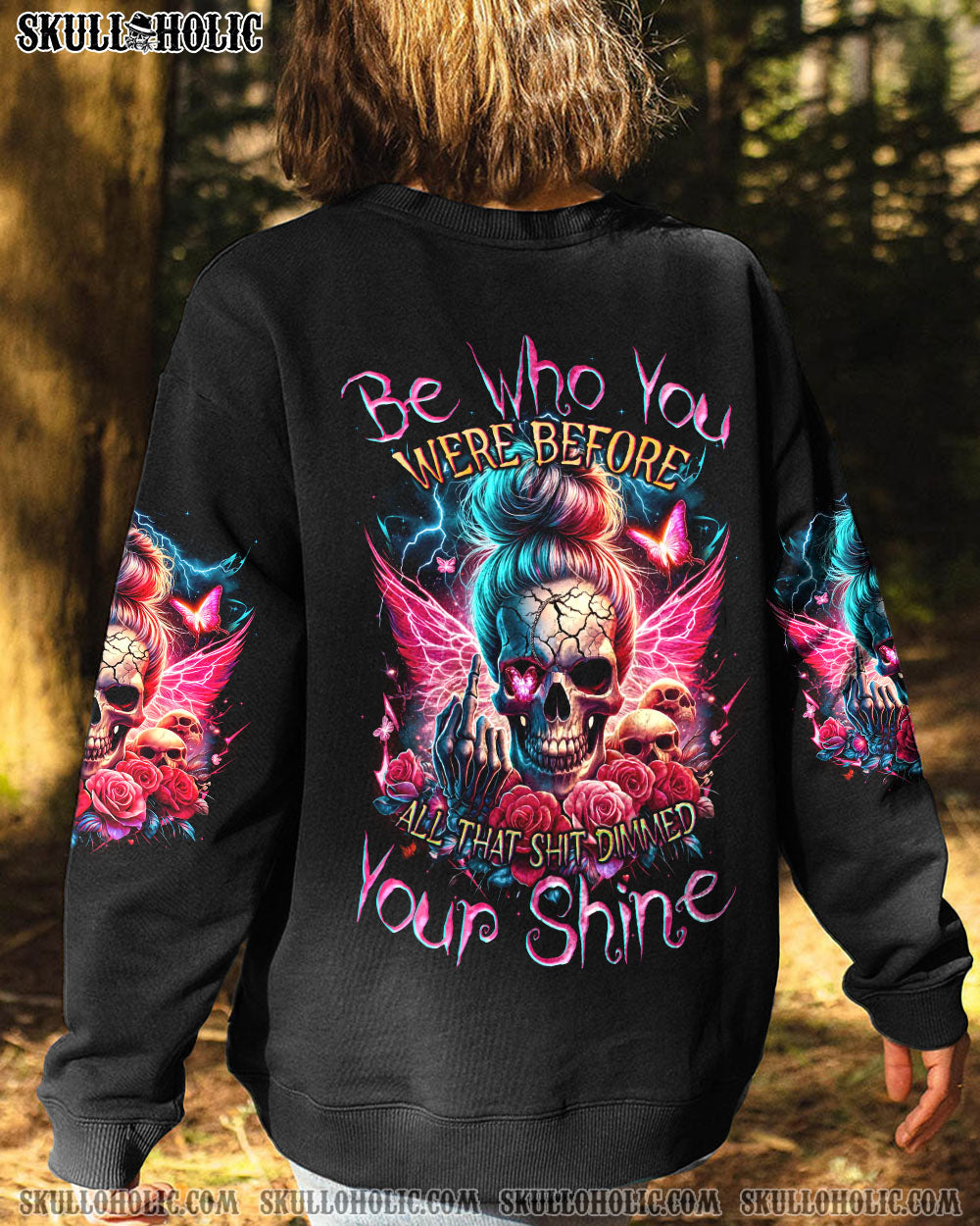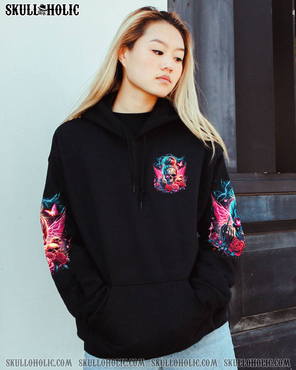 Unleash your inner strength with our BE WHO YOU SKULL ALL OVER PRINT – TYQY0405241. This captivating design features a skull bun, shining wings, roses, butterflies, lightning, and a powerful quote, representing resilience and power. Let this striking masterpiece inspire you to conquer any challenge and soar to new heights.💀🦋🌹