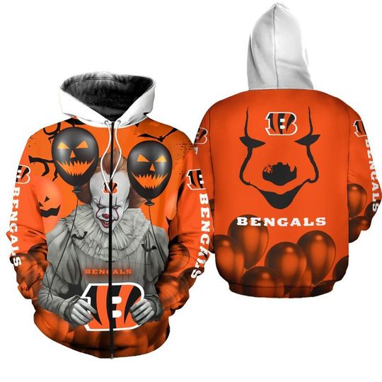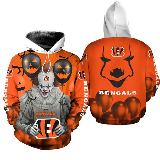 CINCINNATI BENGALS PENNYWISE THE DANCING CLOWN IT HALLOWEEN 3D ALL OVER PRINT HOODIE – LIMITED EDITION