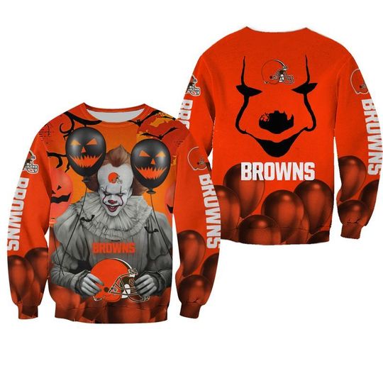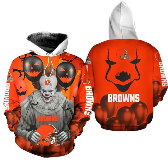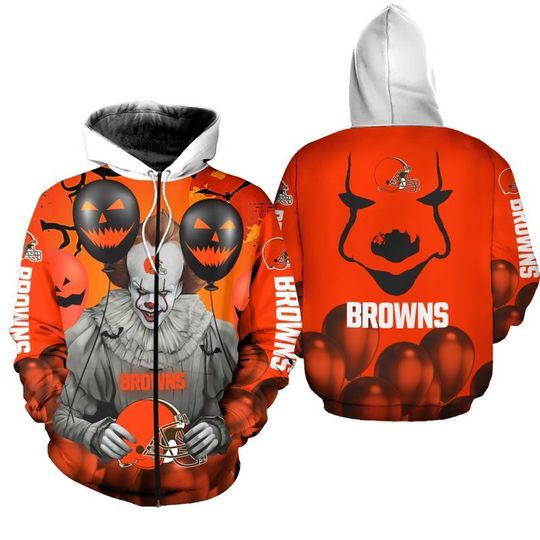 CLEVELAND BROWNS PENNYWISE THE DANCING CLOWN IT HALLOWEEN 3D ALL OVER PRINT HOODIE – LIMITED EDITION