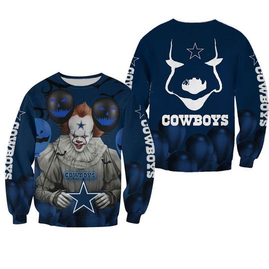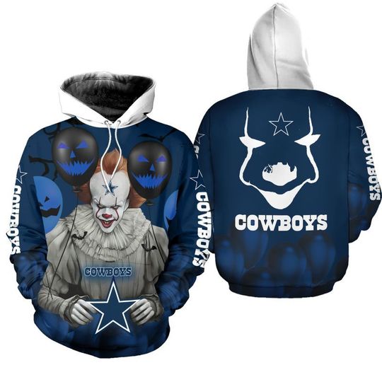 DALLAS COWBOYS PENNYWISE THE DANCING CLOWN IT HALLOWEEN 3D ALL OVER PRINT HOODIE – LIMITED EDITION