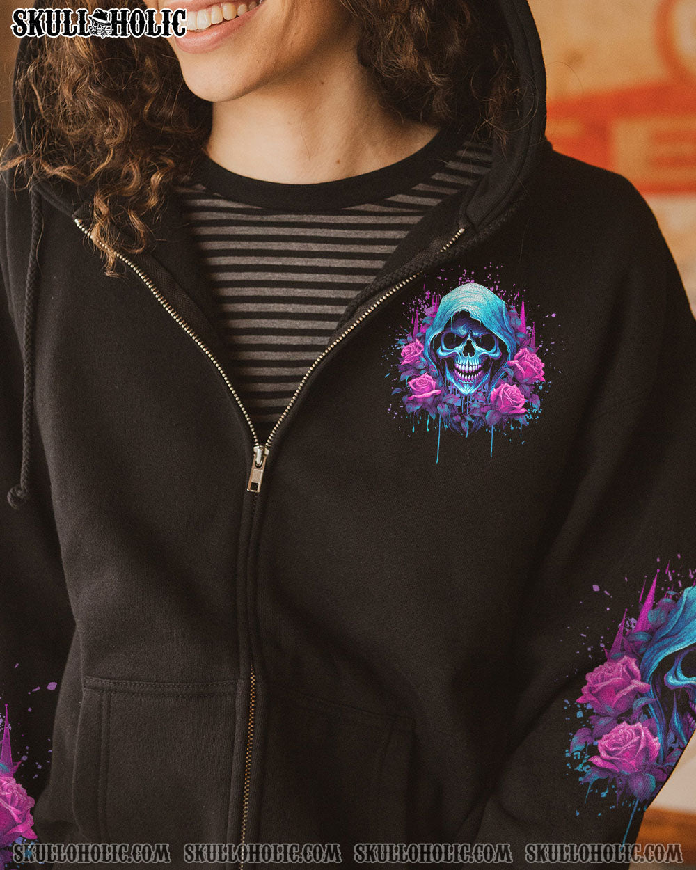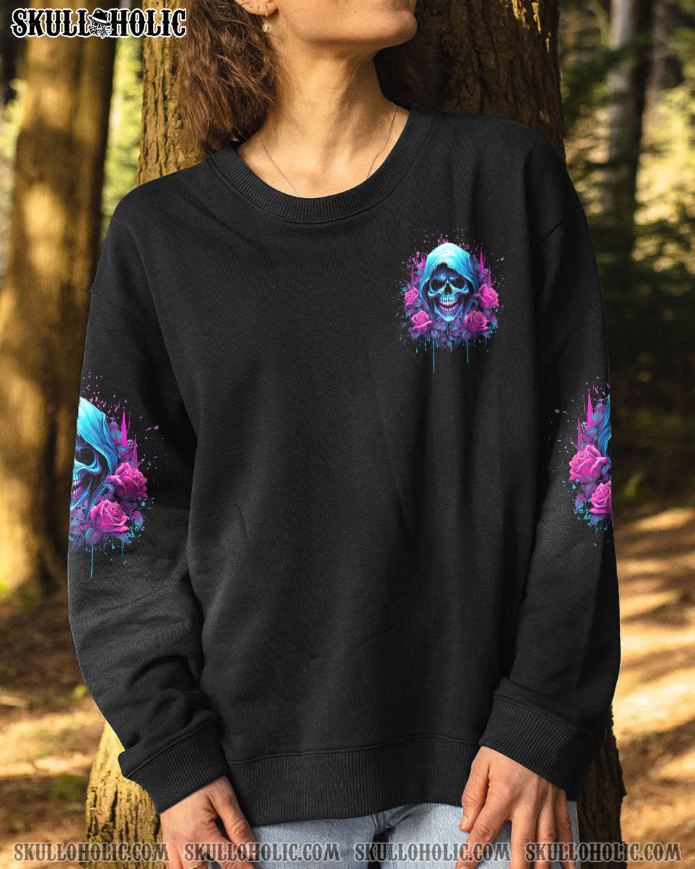 Express your individualism and stand up for yourself with our DON’T PISS ME OFF REAPER ALL OVER PRINT. This captivating design features a witty quote and vibrant colors to represent your strength and resilience. Don’t let anyone underestimate you with this bold and sassy statement of confidence. Make sure you grab it today and show off your unapologetic nature.