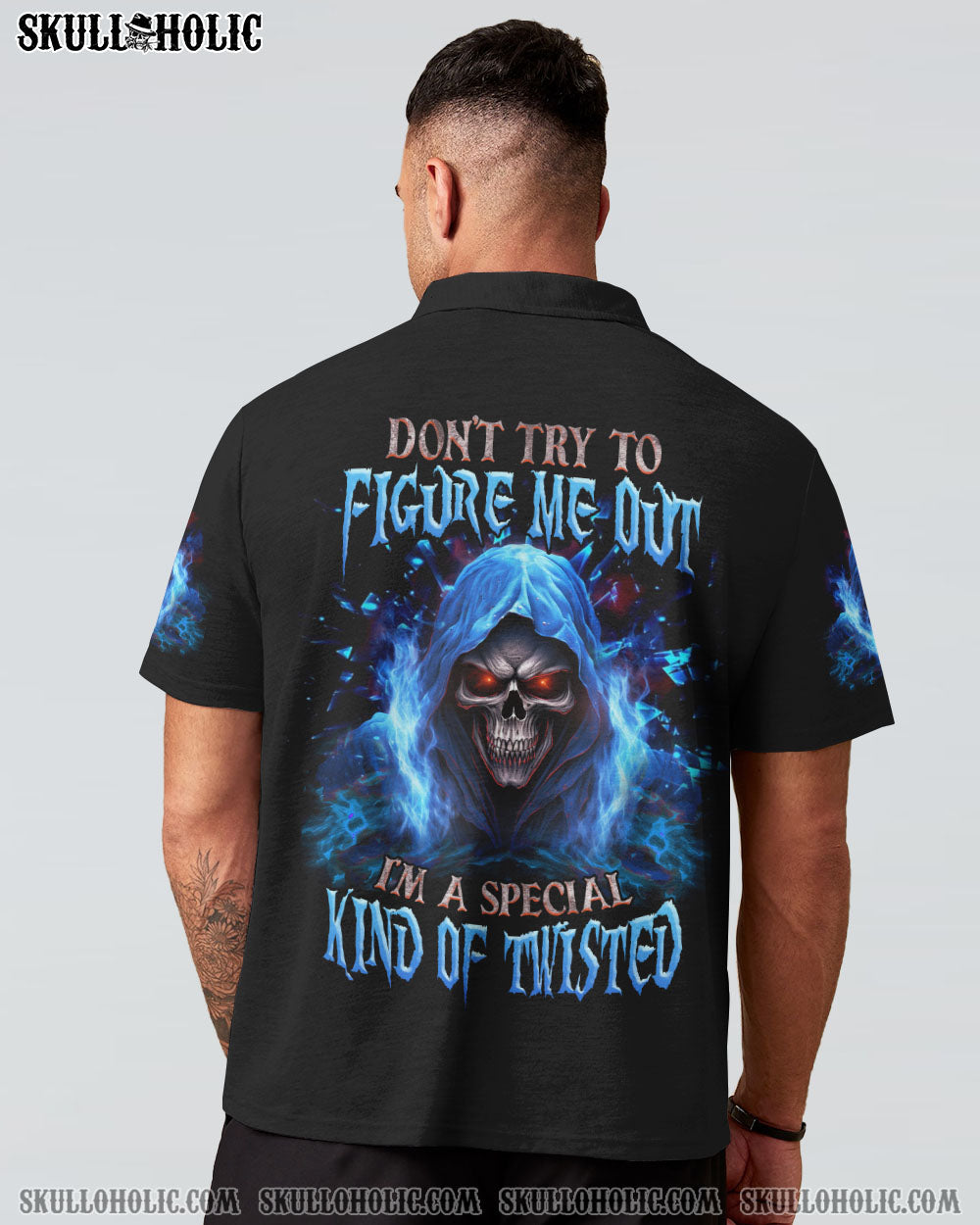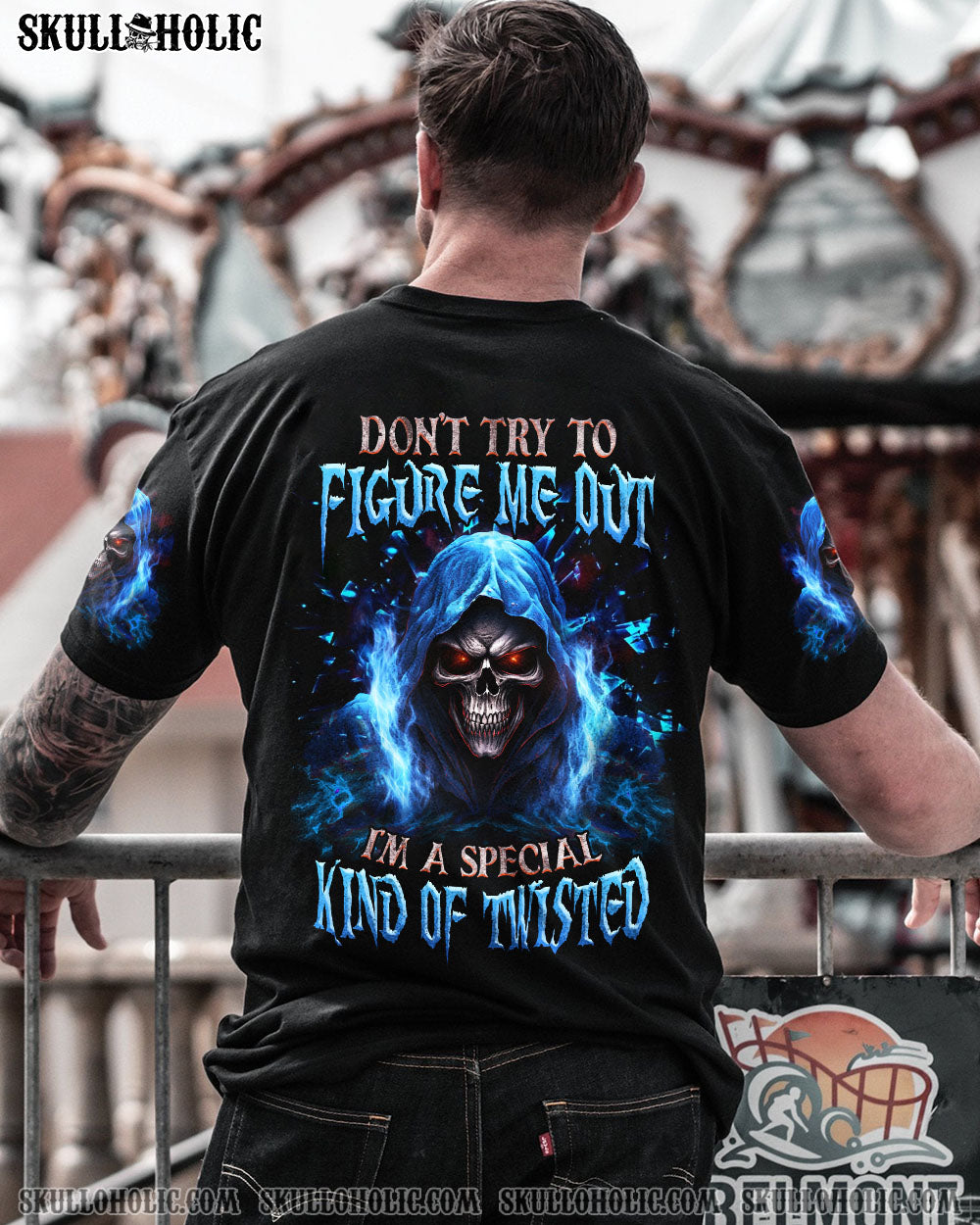 Showcase your unique perspective with this “Don’t Try to Figure Me Out” all-over-print shirt. Featuring a vibrant pattern of a reaper’s glowing eyes on a short-sleeve silhouette, this stylish piece is sure to make a statement. Crafted from a lightweight and breathable fabric, it offers both comfort and quality. Embrace individuality and express your special kind of twisted in this exclusive shirt.