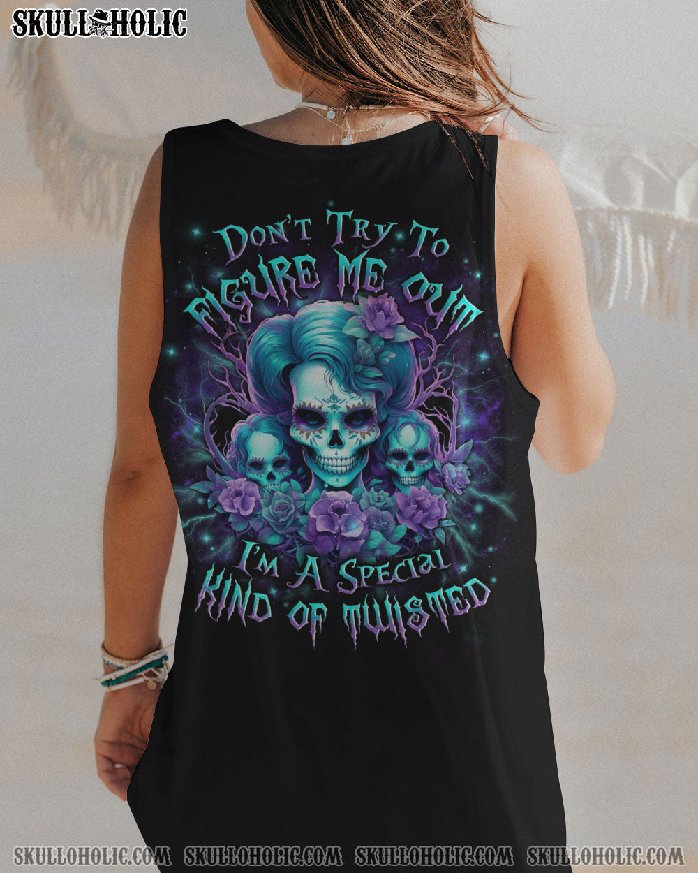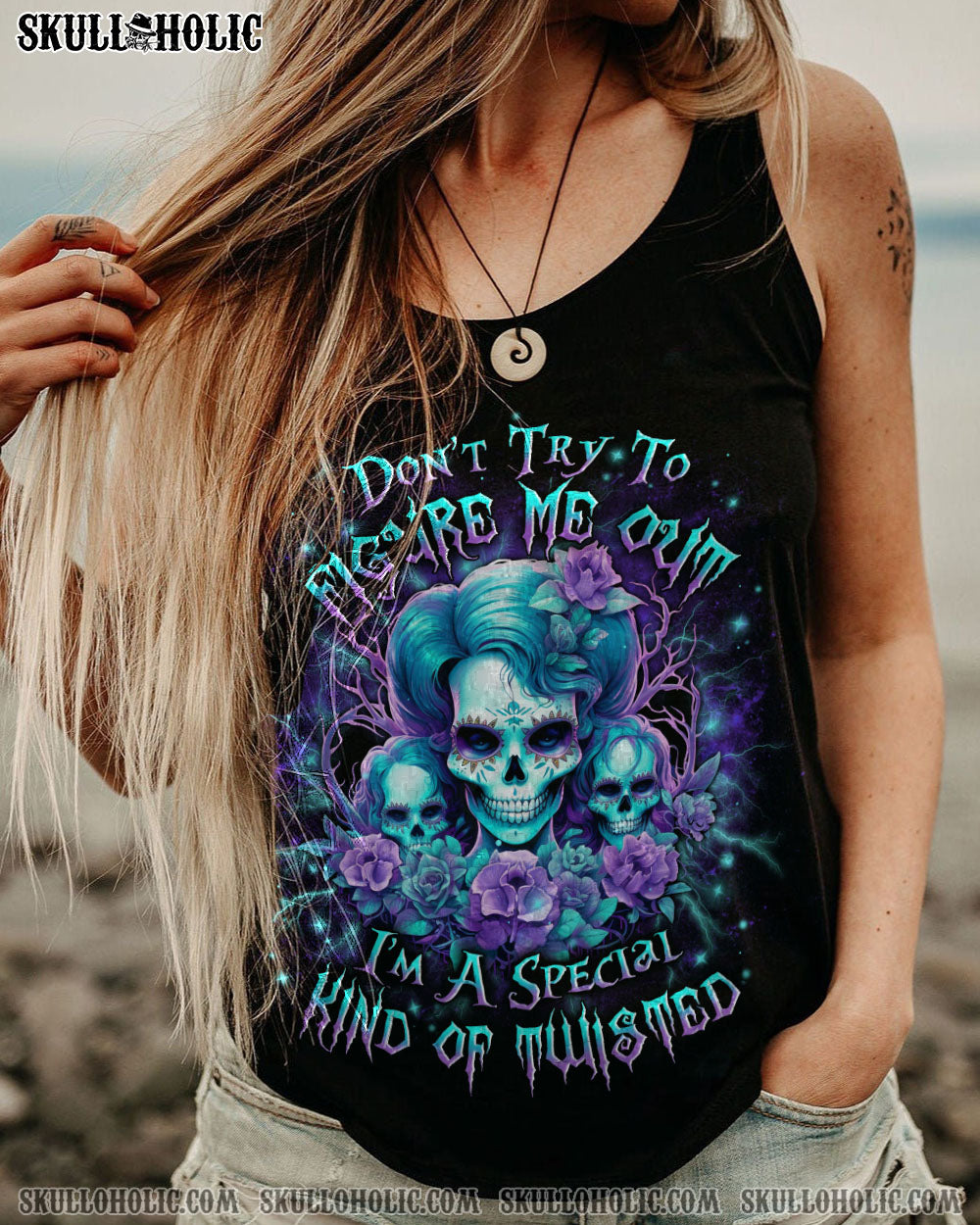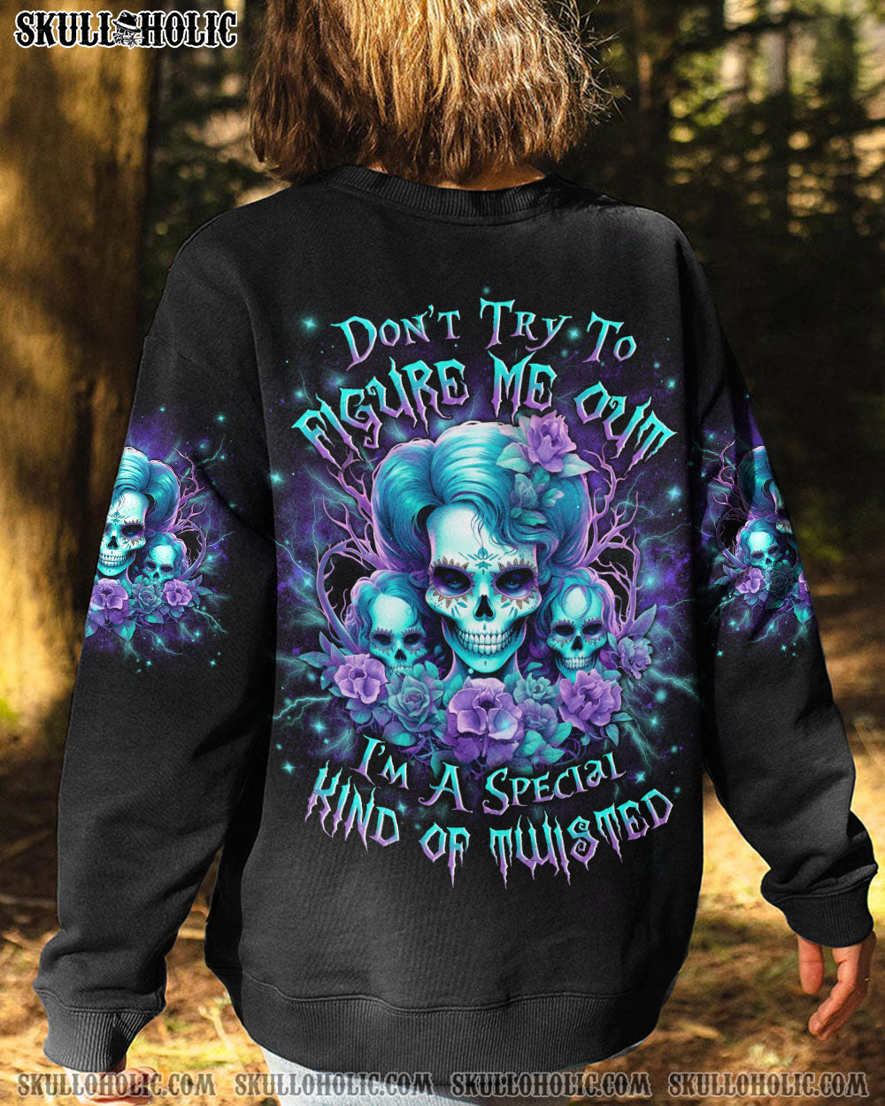 Be an enigma no more! Stand out in this striking “Don’t Try to Figure Me Out; I’m a Special Kind of Twisted” all-over print t-shirt and proudly declare your unique spirit. Showcase your quirks and individuality with confidence and command attention wherever you go. Make a statement and embrace your one-of-a-kind identity with this must-have design.
