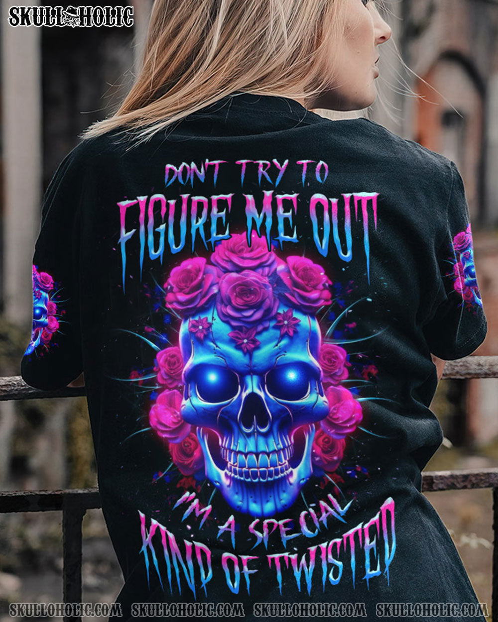 Our DON’T TRY TO FIGURE ME OUT is the perfect way to add a hint of mystery to your look. Featuring a mesmerizing rose butterfly skull design adorned with striking eye-catching colors, this design makes a bold and powerful statement that warns others against attempting to unravel your enigma. Embrace your aura of intrigue and leave them in awe as they discover the surprises that await those who try to know you too well.