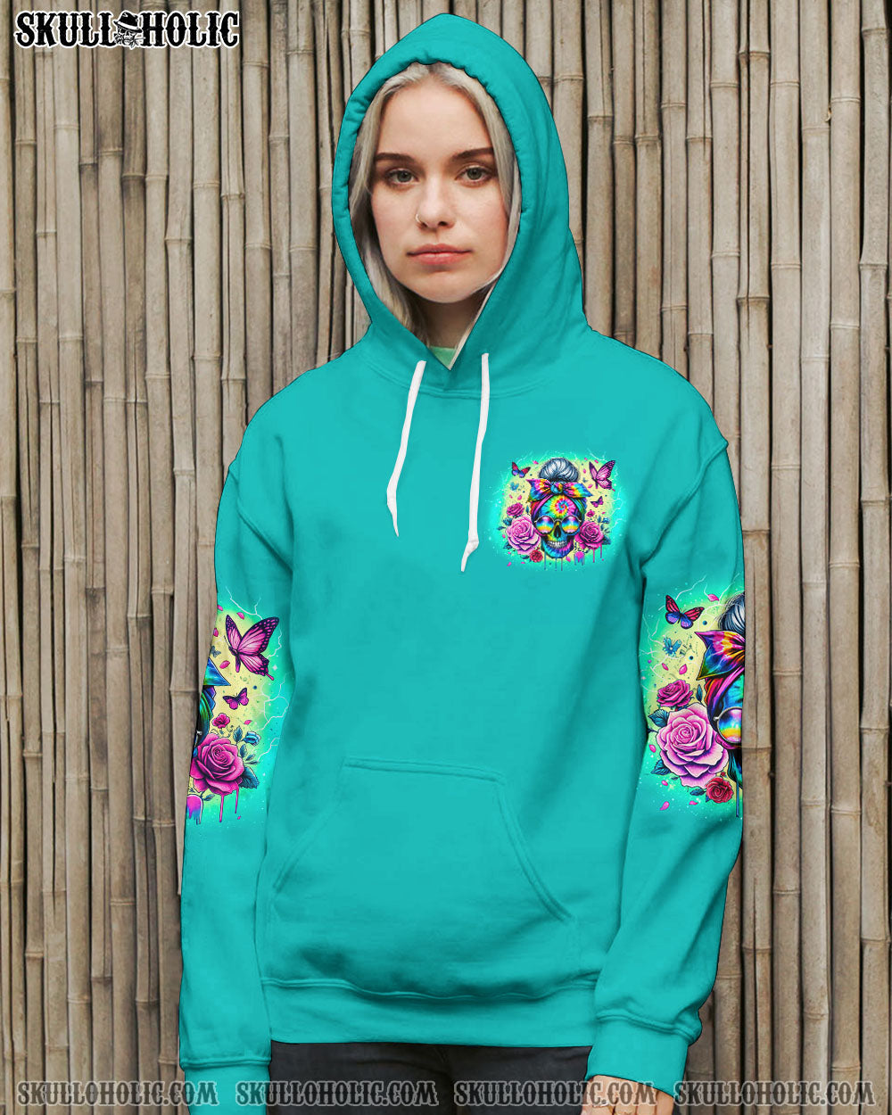 Unleash your unique style with our “Don’t Try to Figure Me Out” messy bun featuring a skull, tie-dye headband, roses, and butterflies. Embrace your individuality and complexity with confidence. 🌺🦋🔥