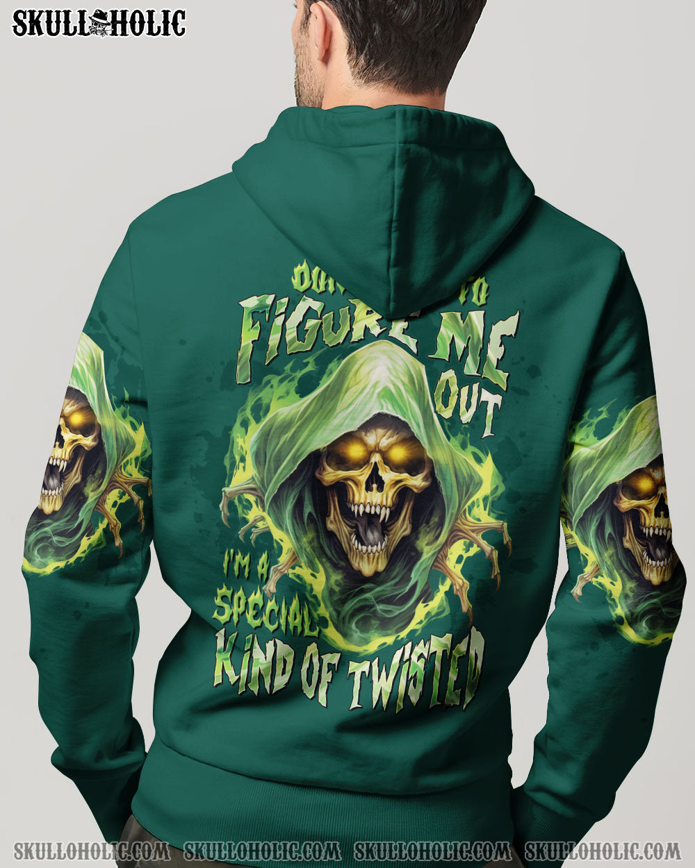 Express your mysterious personality with this all-over print design featuring an angry reaper amid a sophisticated blue backdrop. With a bold message of “Don’t try to figure me out, I’m a special kind of twisted,” this item celebrates your complexity and individuality, encouraging others to accept your unique brand of brilliance. Showcase your self-confidence, and be a source of strength and allure with this captivating look.