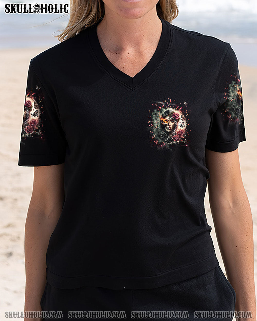 Embrace your uniqueness with our DON’T TRY TO FIGURE ME OUT SKULL LADY ALL OVER PRINT. Featuring a two-sided skull with a smoky rose, this design captures the complexity of individuality. Celebrate your layers and depths with this reminder that not everyone fits into conventional molds. Be unapologetically you!