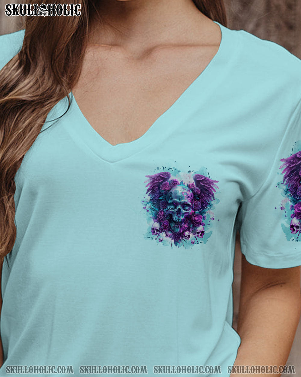 Unleash your mystifying side with our new DON’T TRY TO FIGURE ME OUT SKULL WINGS ALL OVER PRINT. Intricate roses and bold wings surround a skull, inviting you to embrace your complexity and uniqueness. With the quote, “Don’t try to figure me out,” this design speaks to those who are enigmatic and unapologetically themselves.
