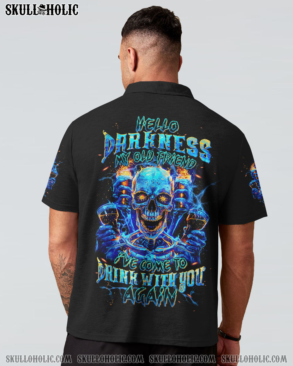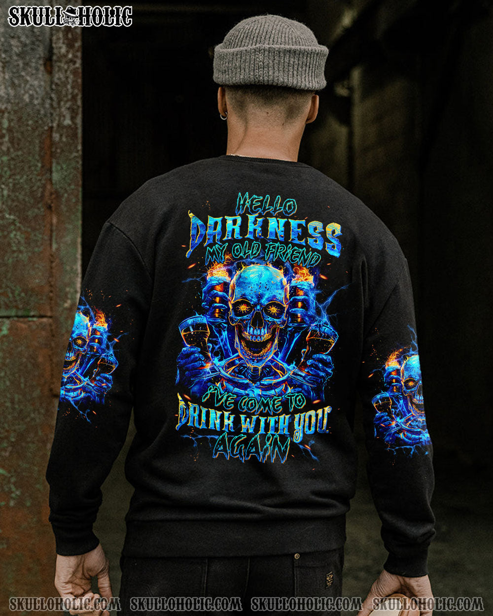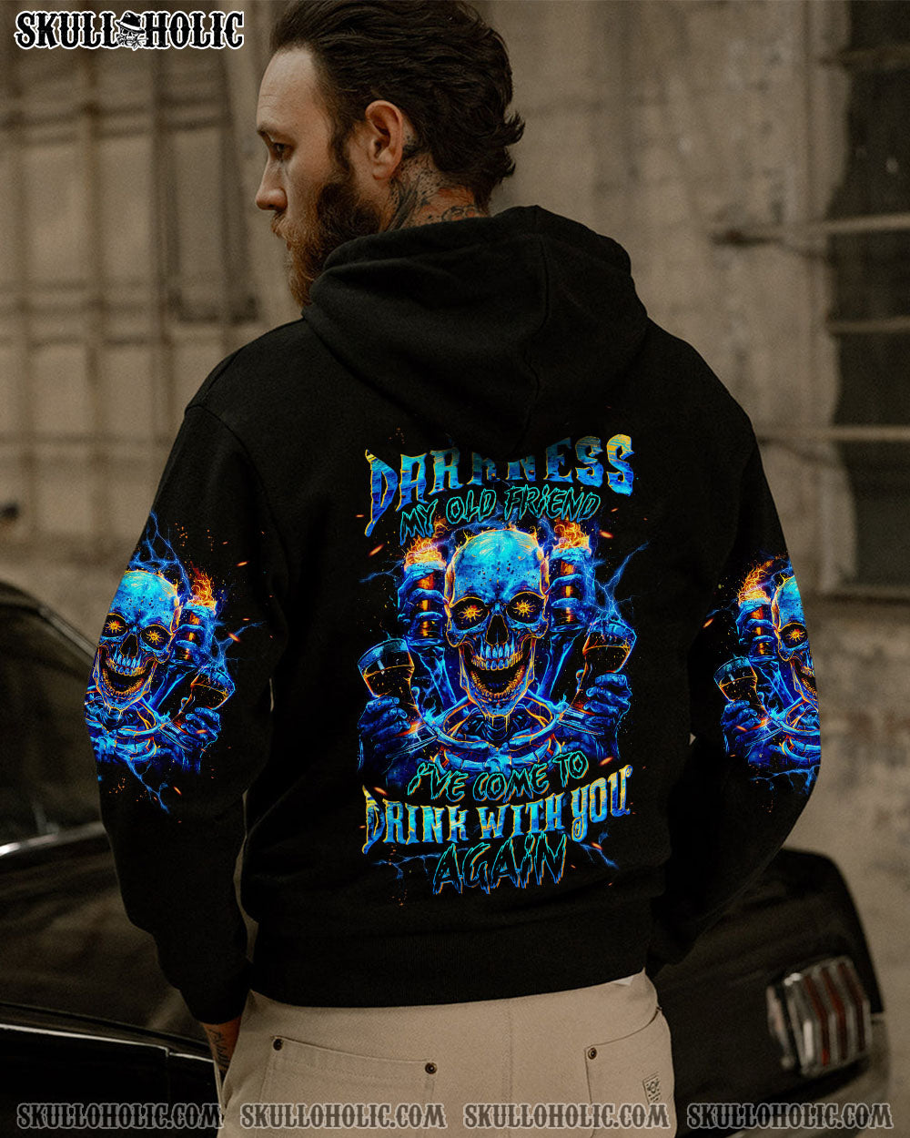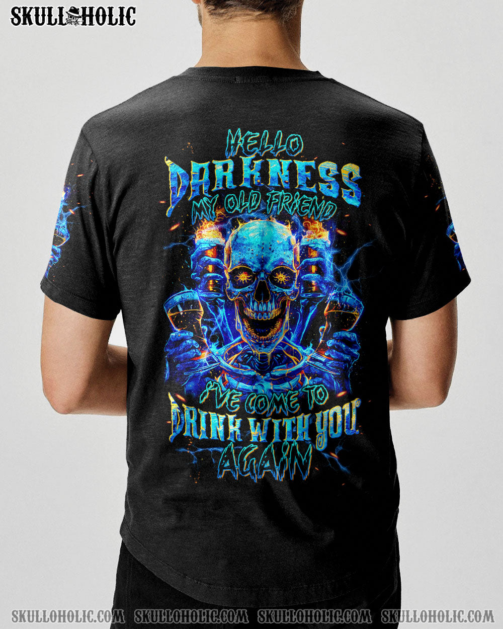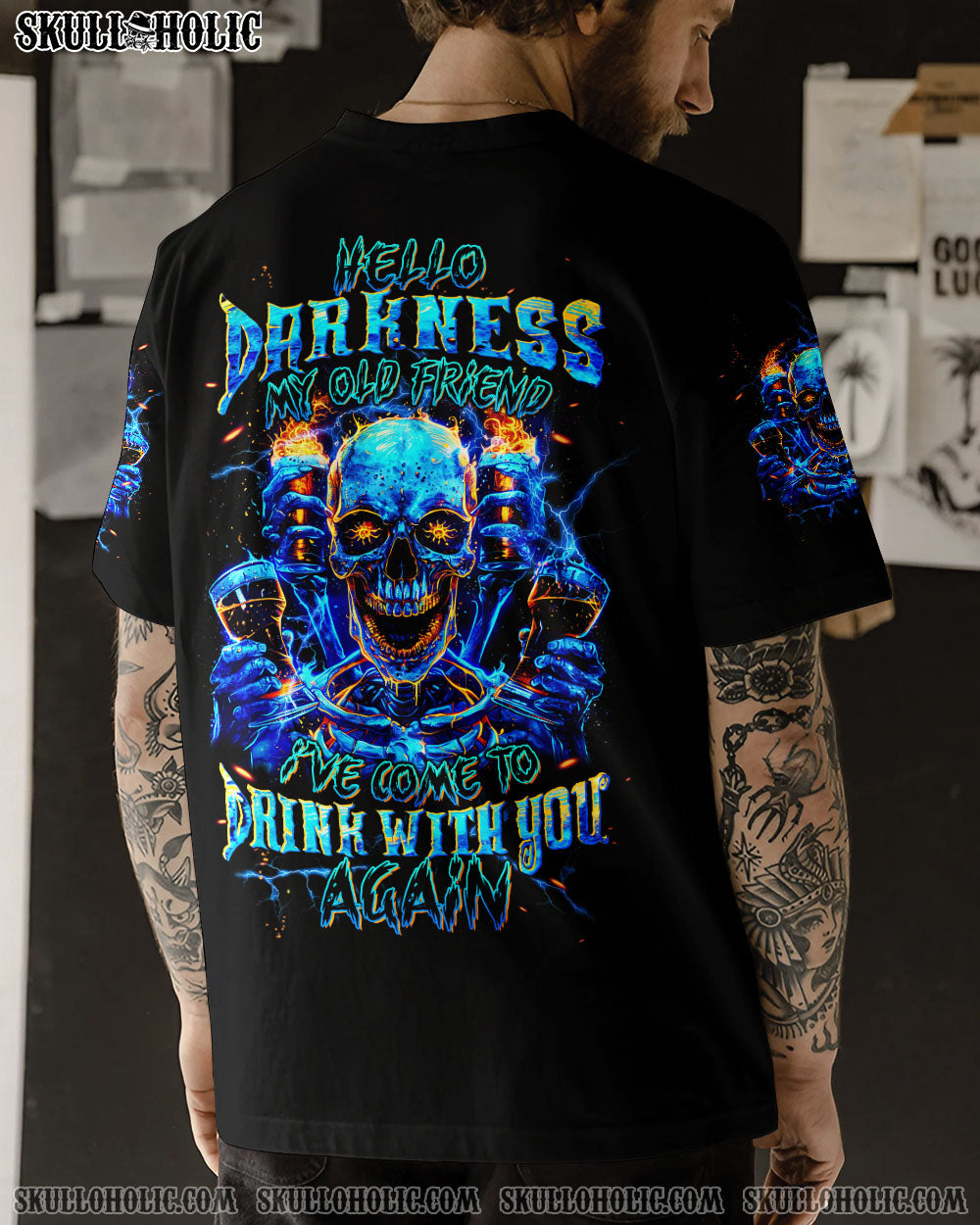 Experience the enigmatic allure of our skull design with the DRINK WITH YOU AGAIN SKULL ALL OVER PRINT. Embodying the essence of a mysterious soul, this print is perfect for those drawn to the night’s embrace. With the quote “the devil whispered to me ‘Hello darkness my old friend, I’ve come to drink with you again'”, find comfort and solace in your own company, embracing the darker aspects of your nature.