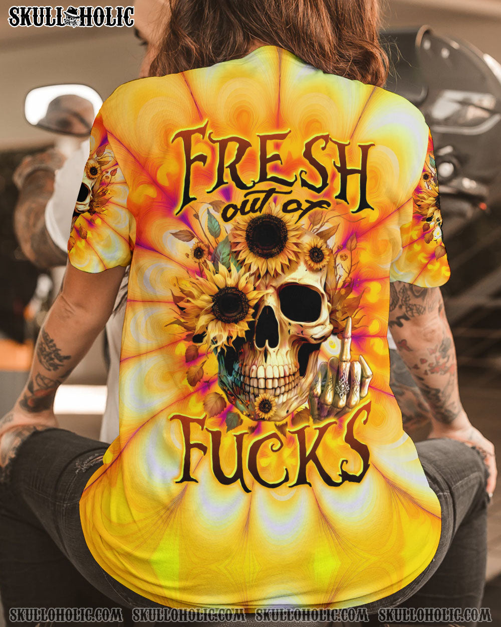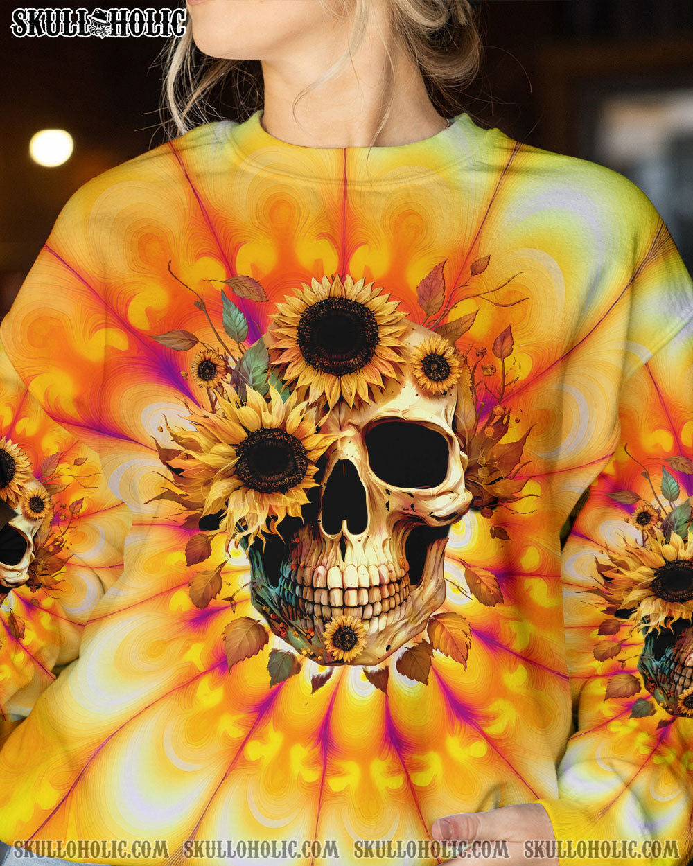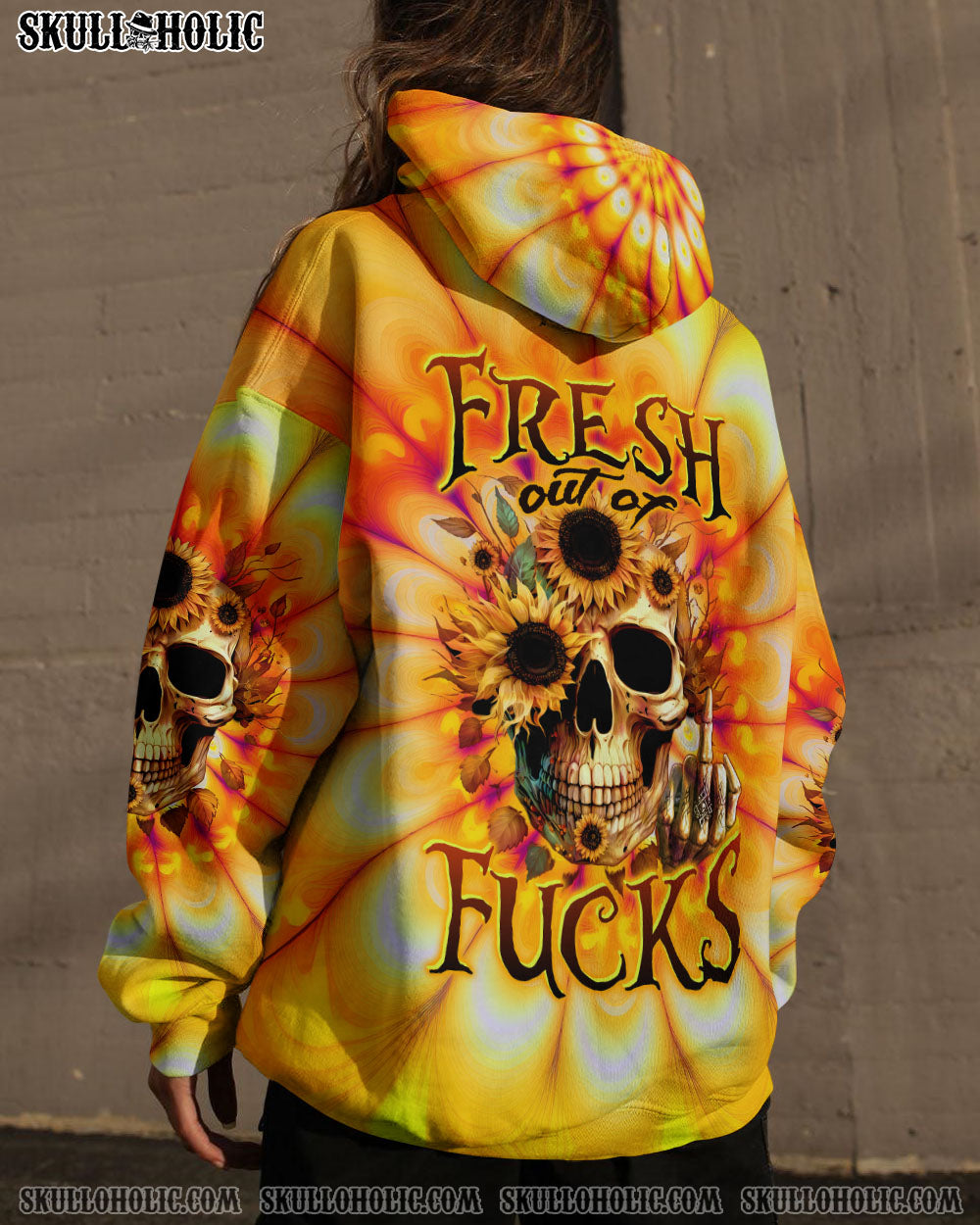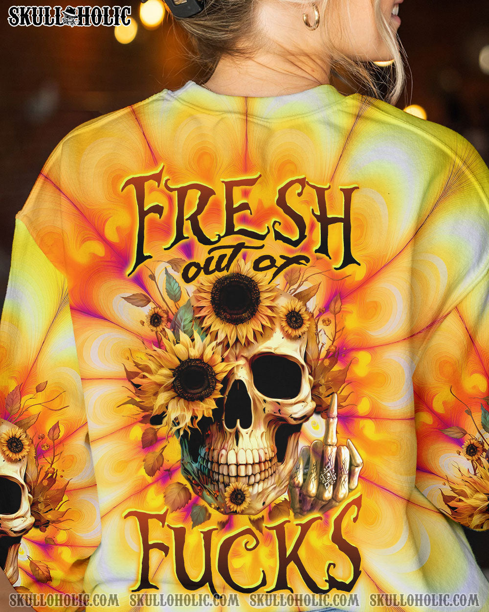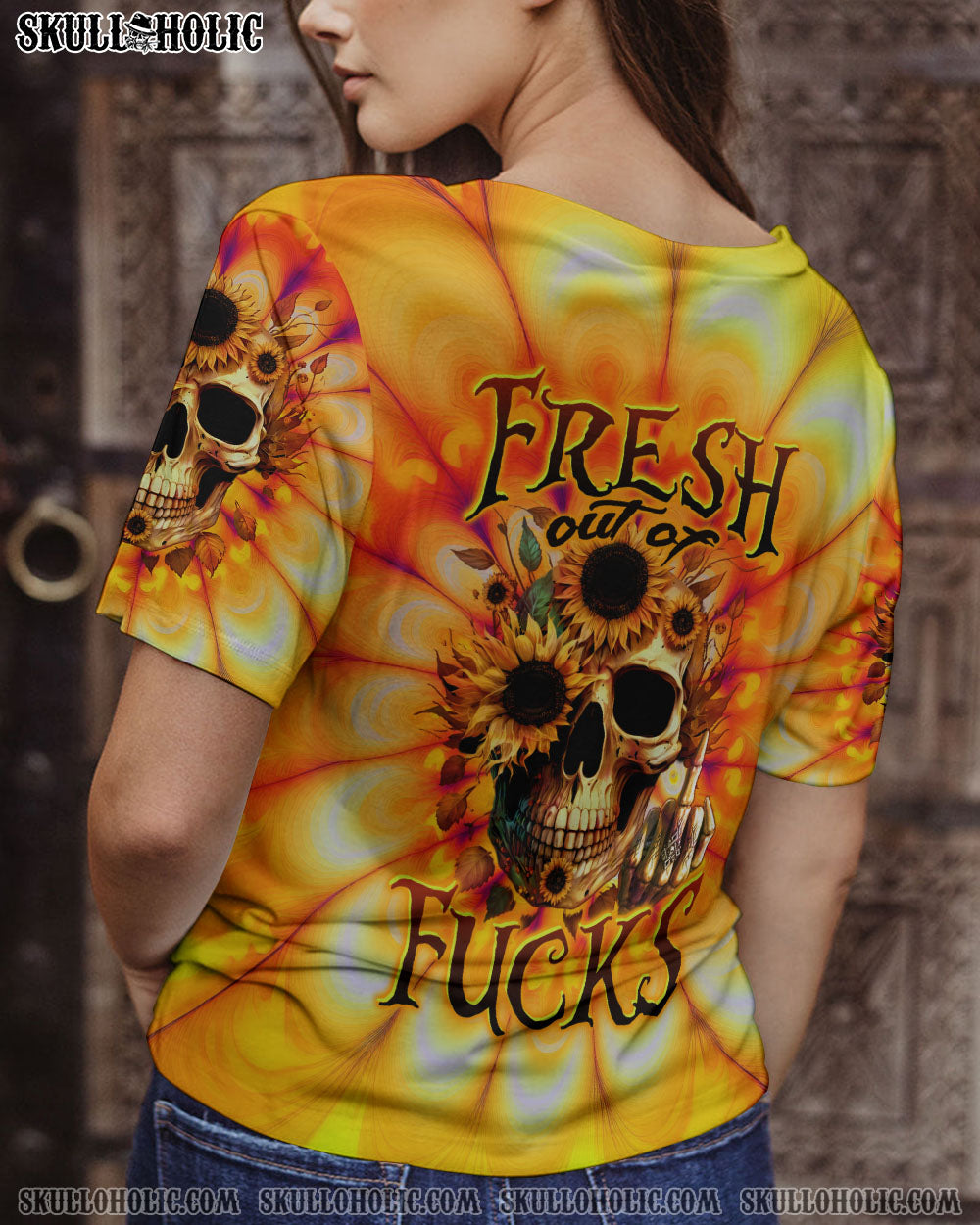 FRESH OUT OF F SUNFLOWER SKULL TIE DYE ALL OVER PRINT – TLTW0404236