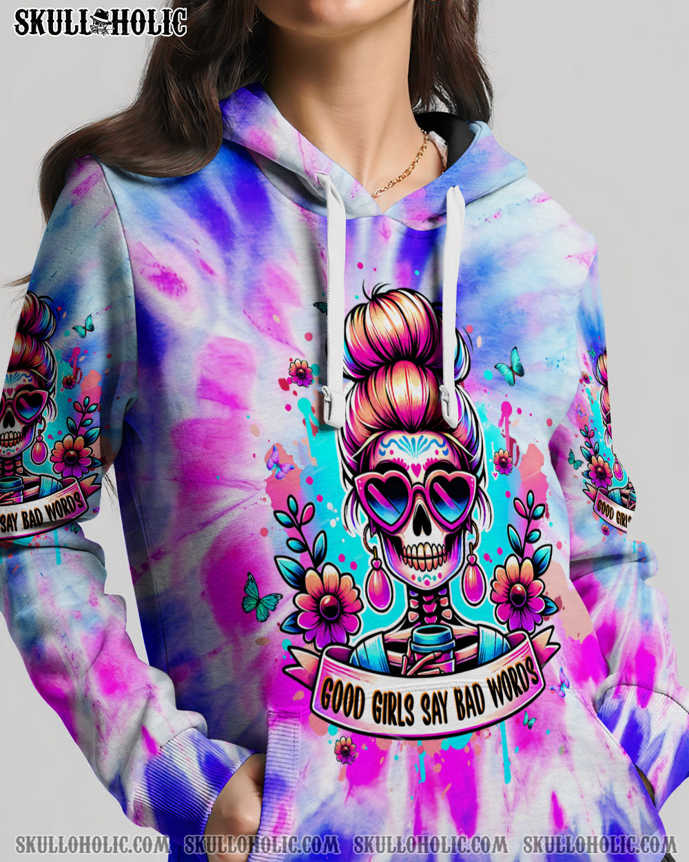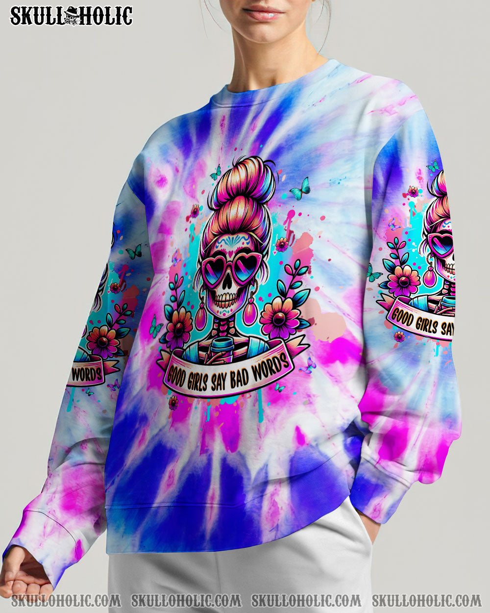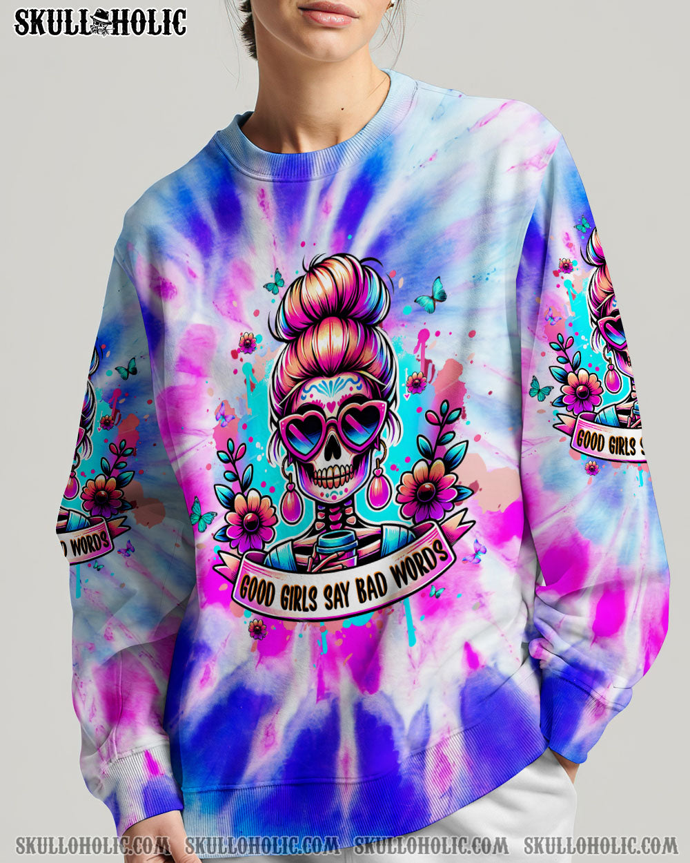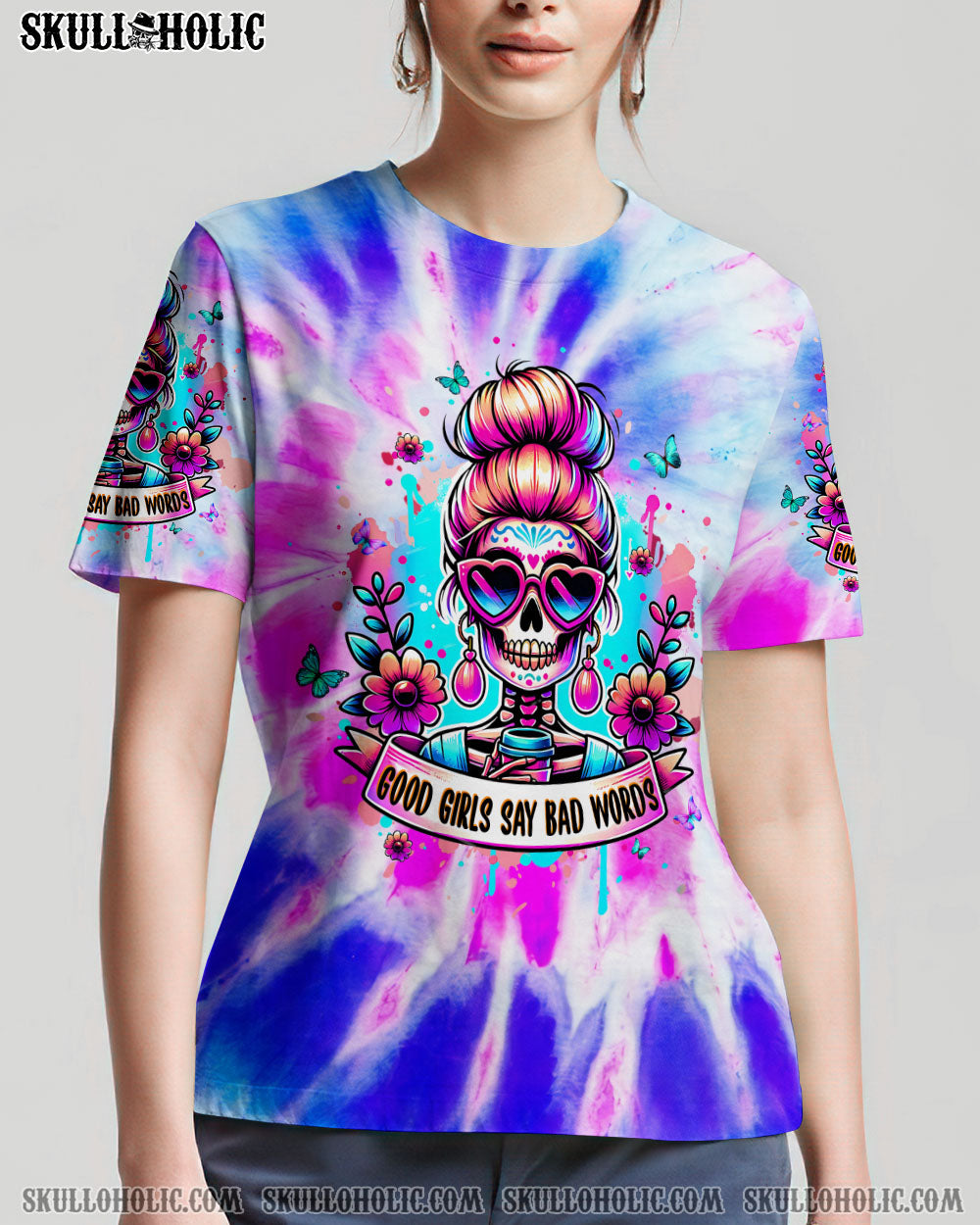 GOOD GIRLS SAY BAD WORDS MESSY BUN SKULL ALL OVER PRINT – TLPQ1304244