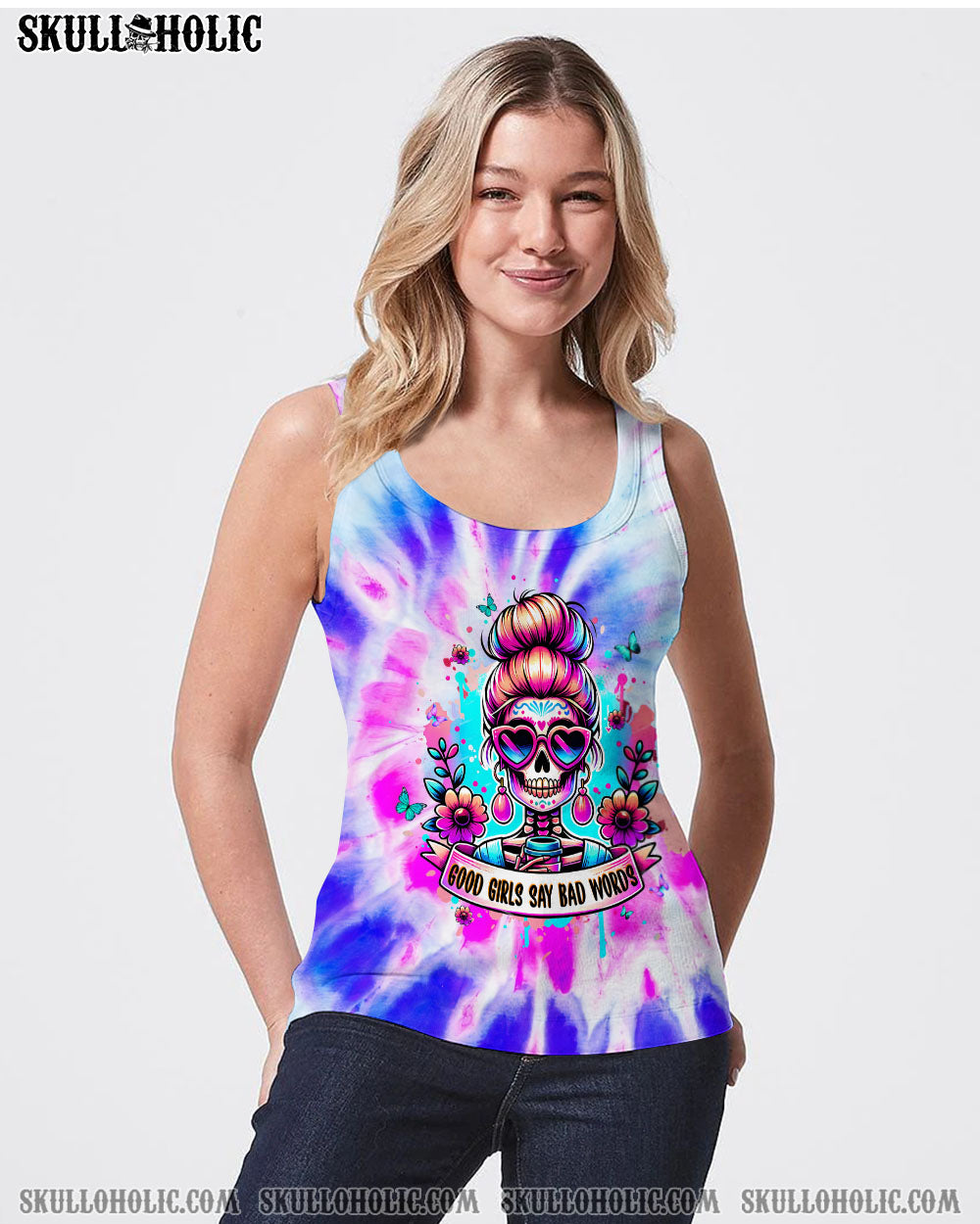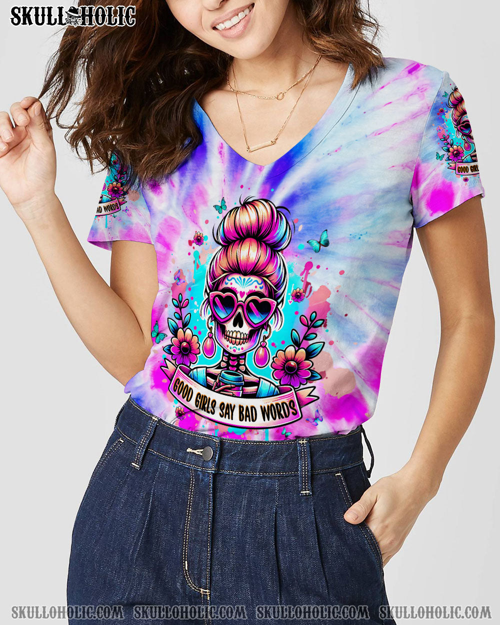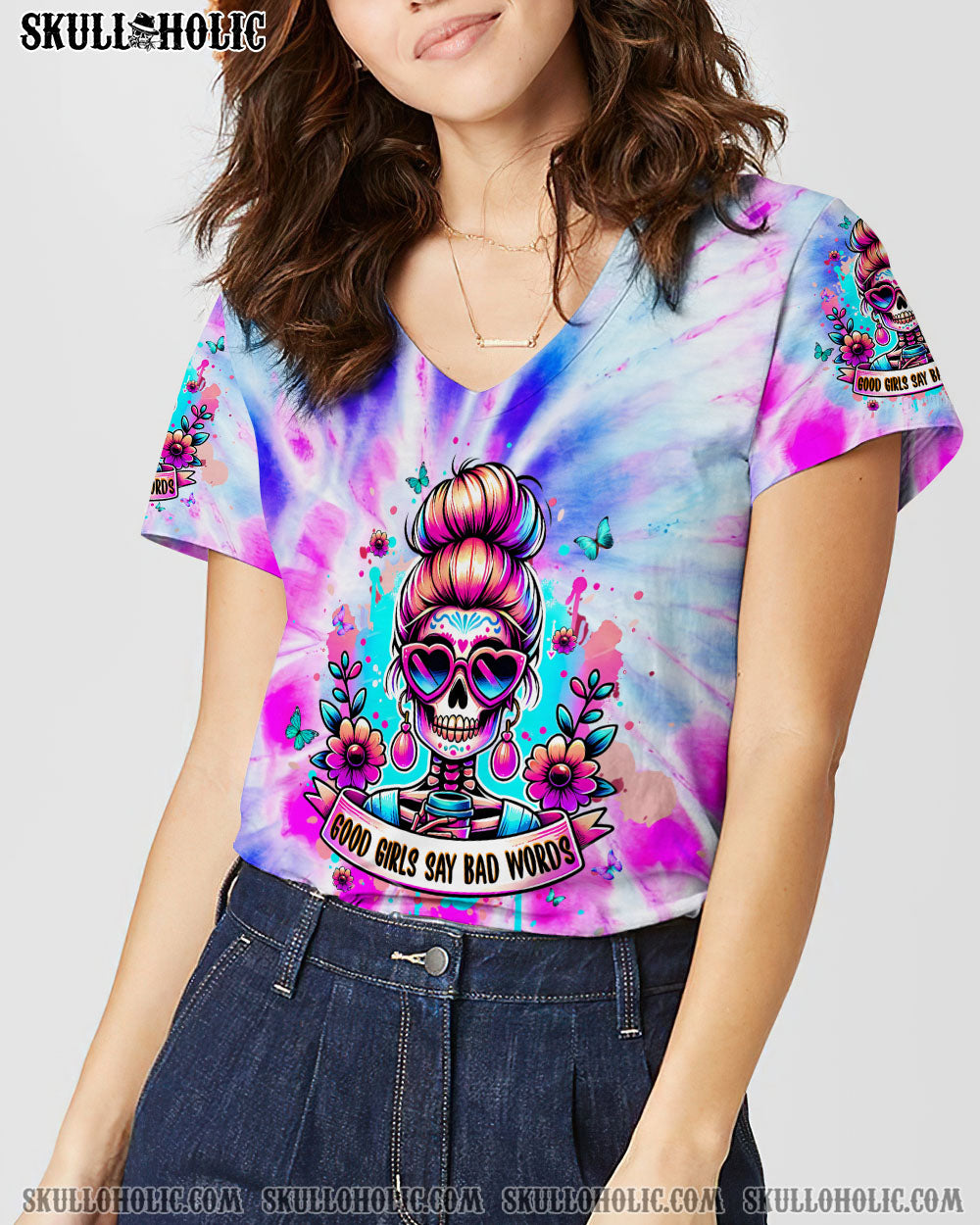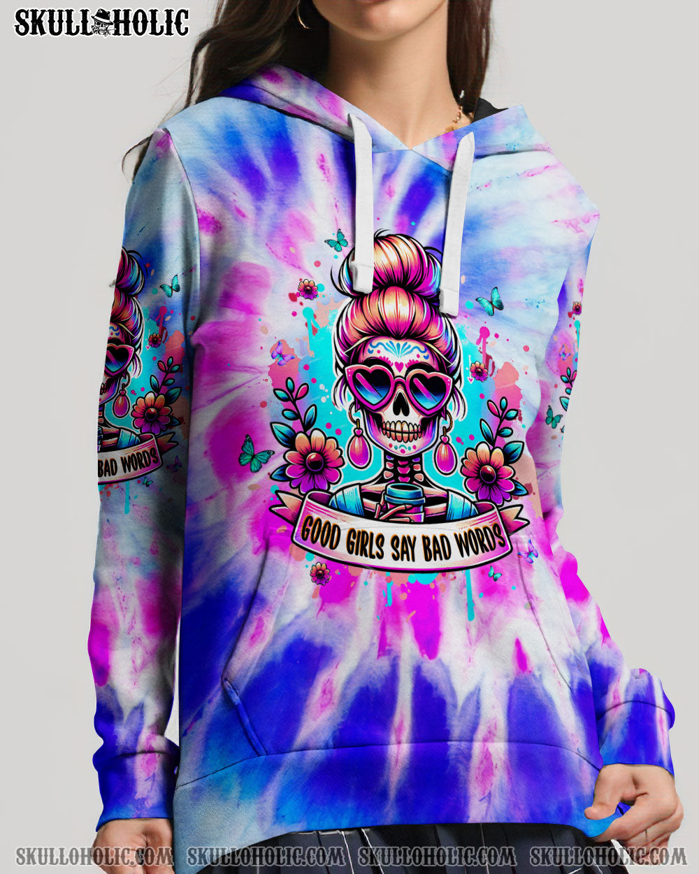 GOOD GIRLS SAY BAD WORDS MESSY BUN SKULL ALL OVER PRINT – TLPQ1304244