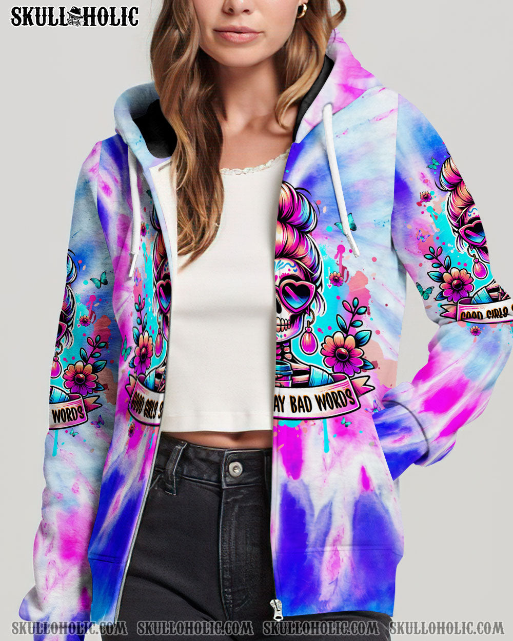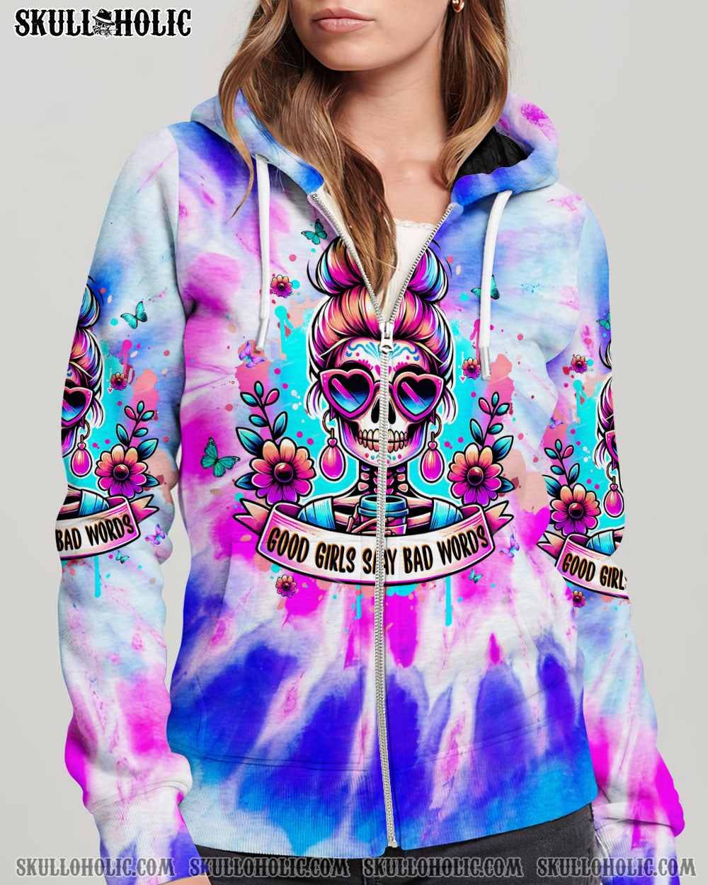 GOOD GIRLS SAY BAD WORDS MESSY BUN SKULL ALL OVER PRINT - TLPQ1304244