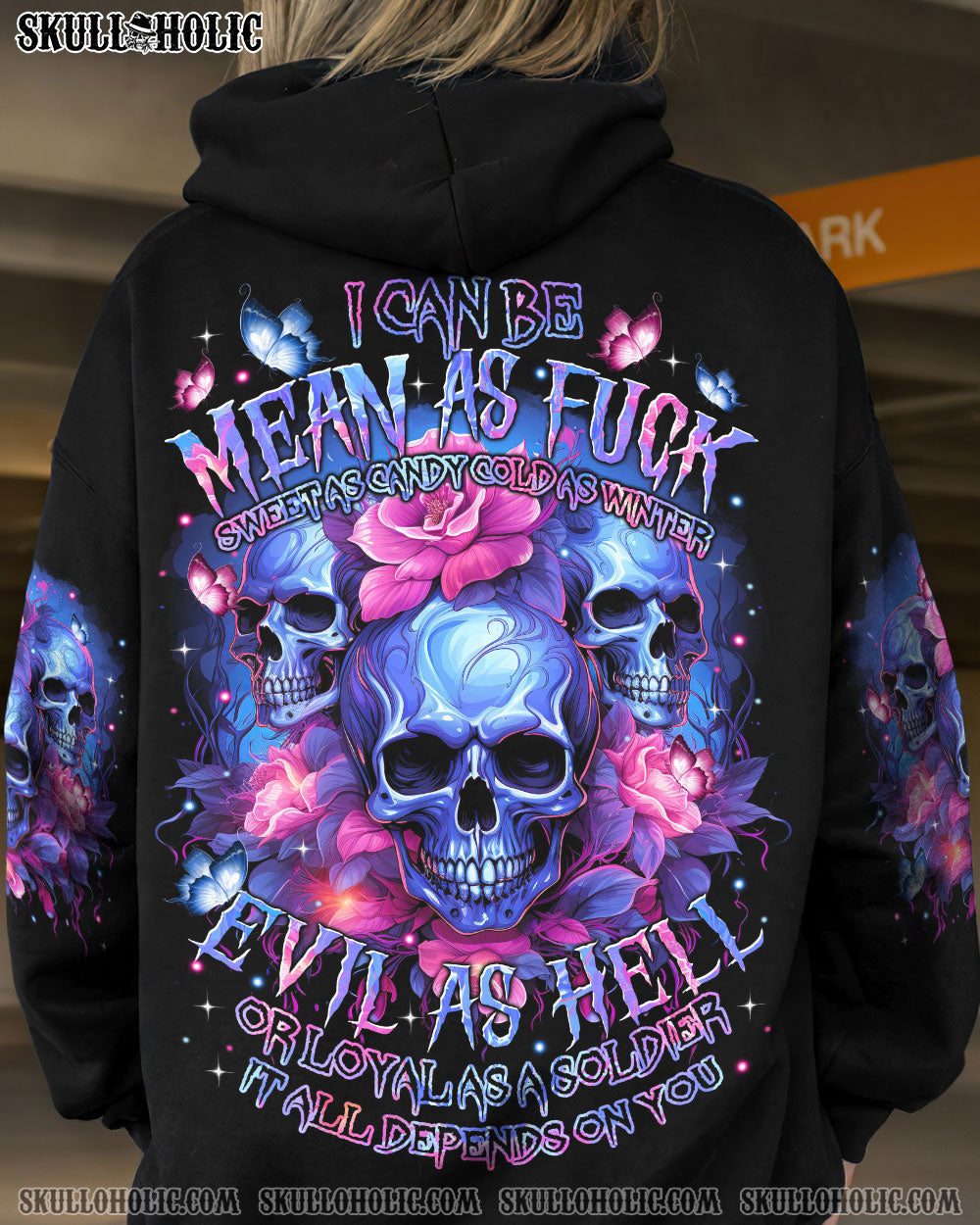 Embark on an enigmatic journey with our mesmerizing “He’ll Be Back” all over print design. A stoic skull adorned with a whimsical messy bun is surrounded by intricate roses and an intriguing quote, sparking curiosity and inviting interpretation. A visual paradox of disheveled elegance and timeless charm, this design beckons you to explore its cryptic allure.