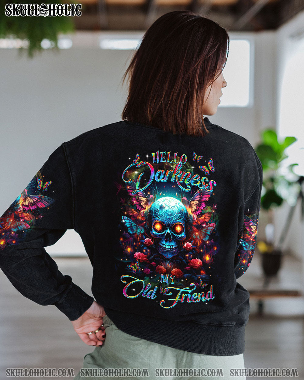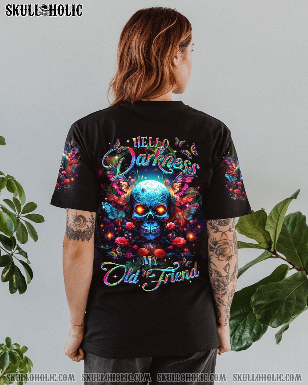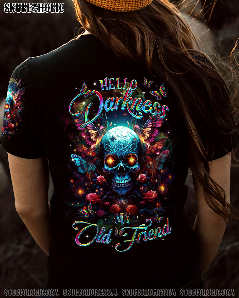 Indulge in the mesmerizing fusion of our skull and butterfly design from TLTR0103244. Vibrant hues against a serene darkness evoke a sense of inner peace and reflection. “HELLO DARKNESS MY OLD FRIEND” speaks to those who find comfort in solitude, embracing it as a haven for self-exploration.