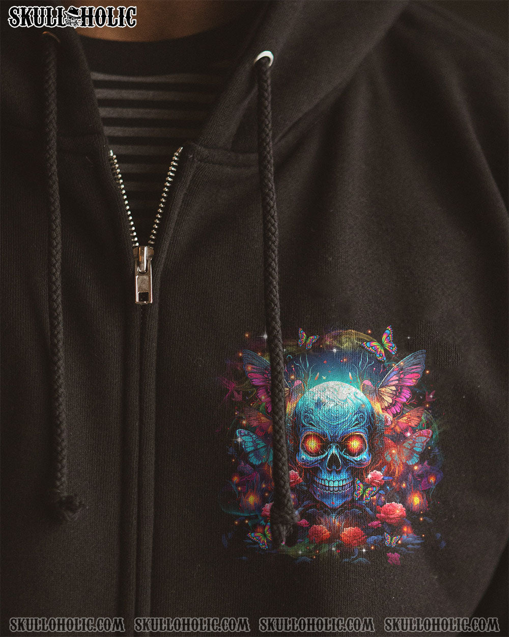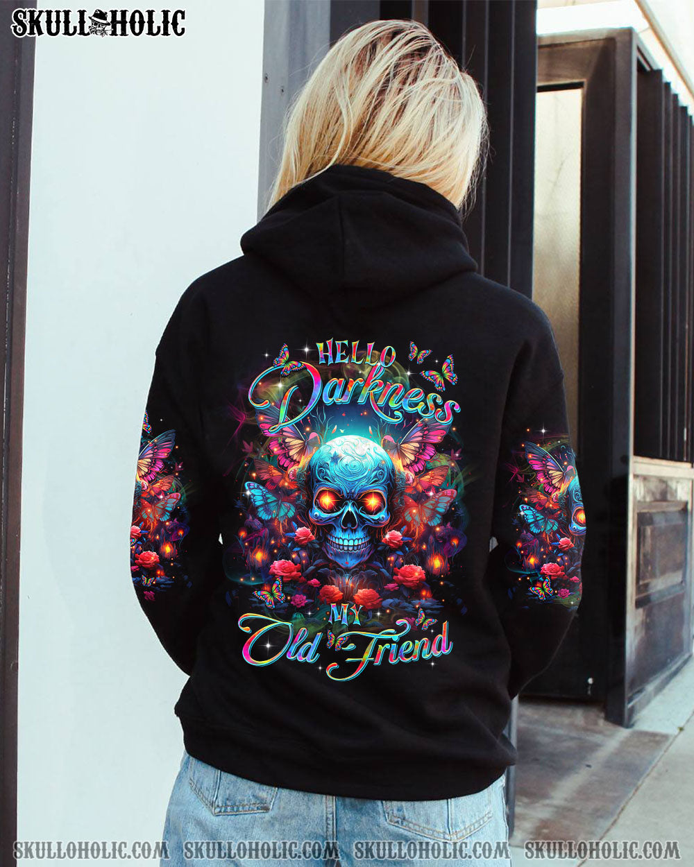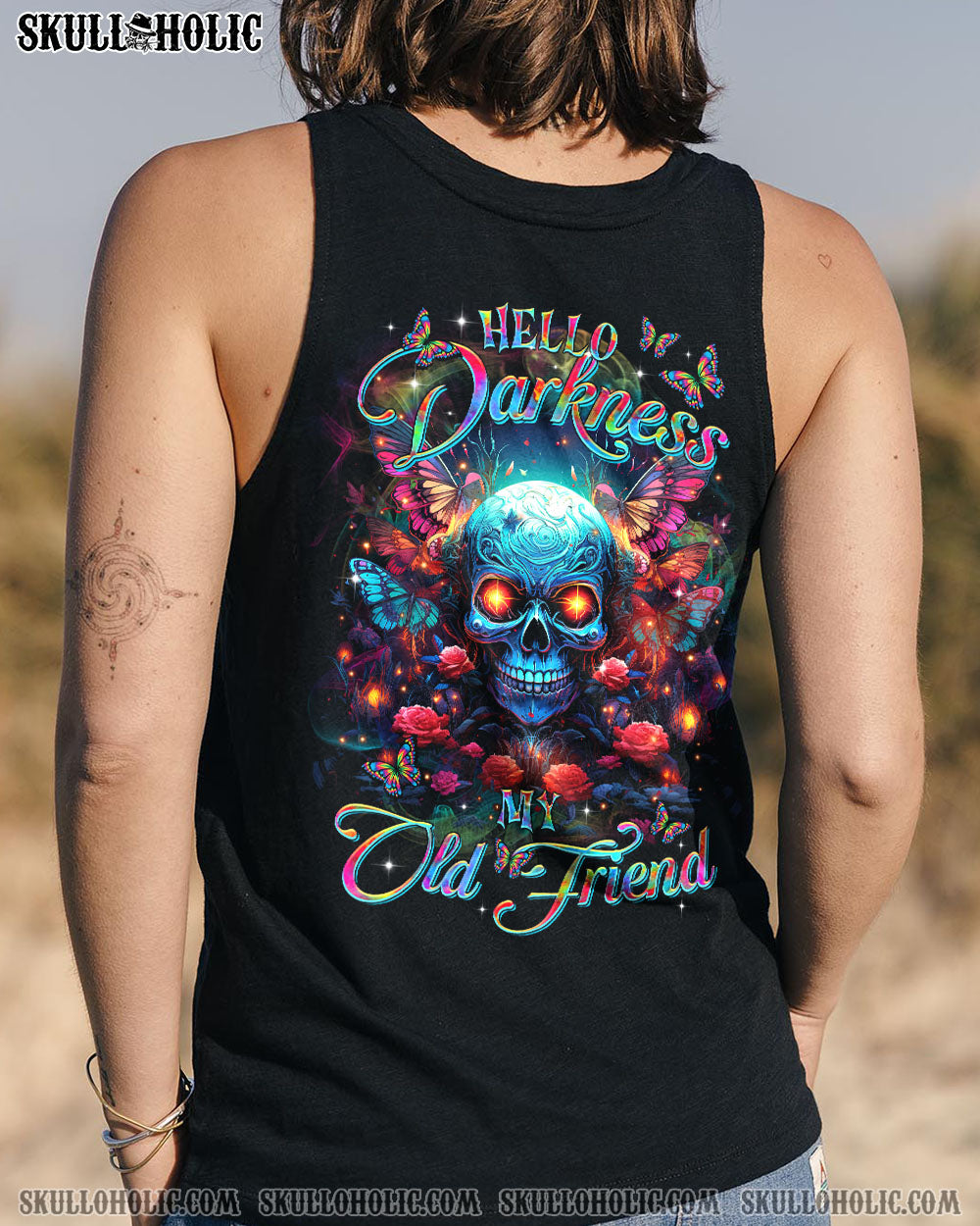 Indulge in the mesmerizing fusion of our skull and butterfly design from TLTR0103244. Vibrant hues against a serene darkness evoke a sense of inner peace and reflection. “HELLO DARKNESS MY OLD FRIEND” speaks to those who find comfort in solitude, embracing it as a haven for self-exploration.