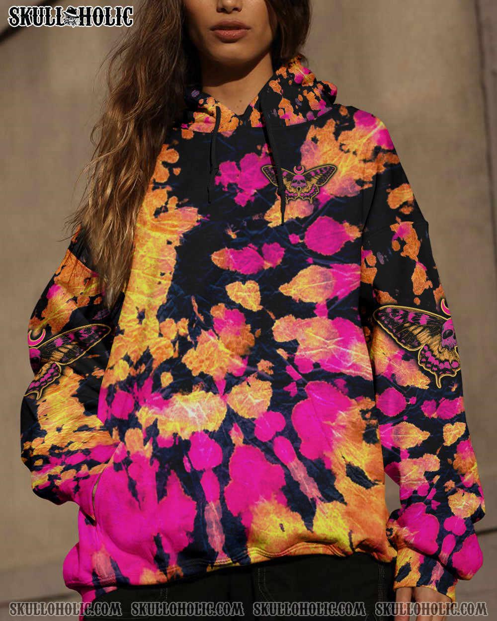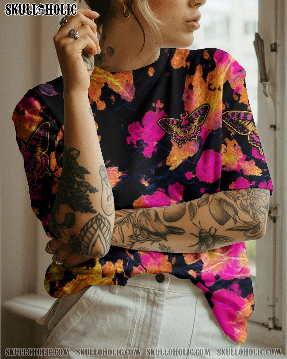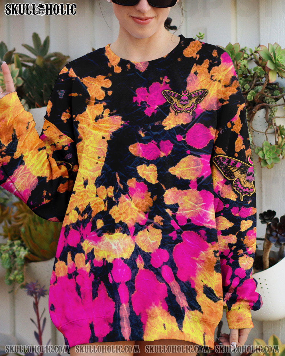 Our HELLO DARKNESS MY OLD FRIEND BUTTERFLY ALL OVER PRINT – TLNZ2407234 offers a captivating display of tie dye love with a bold butterfly skull design. This tie dye apparel captures the beauty of life’s mysteries and encourages embracing the profound aspects of the soul’s journey. Express yourself and embrace your unique style with our striking design.
