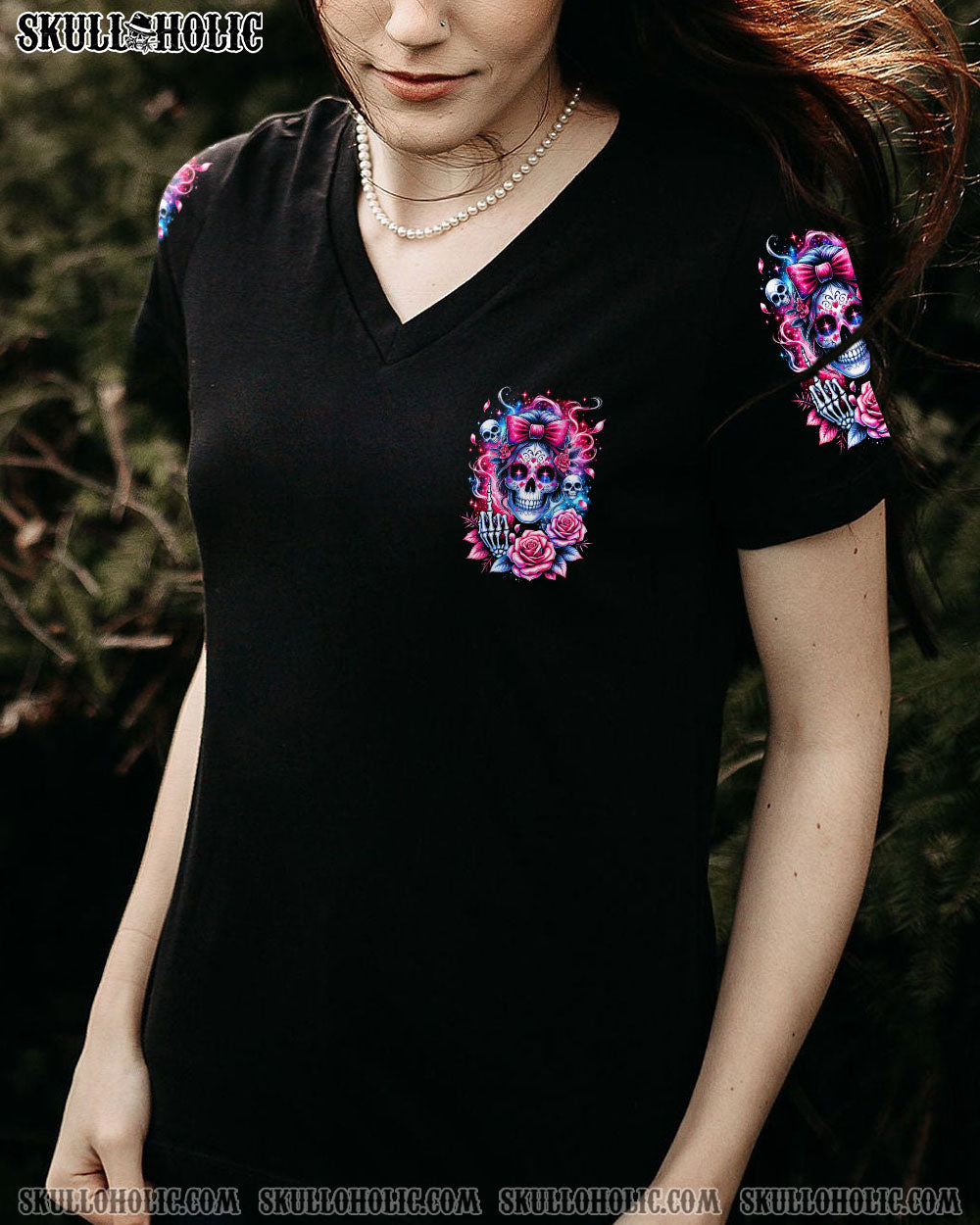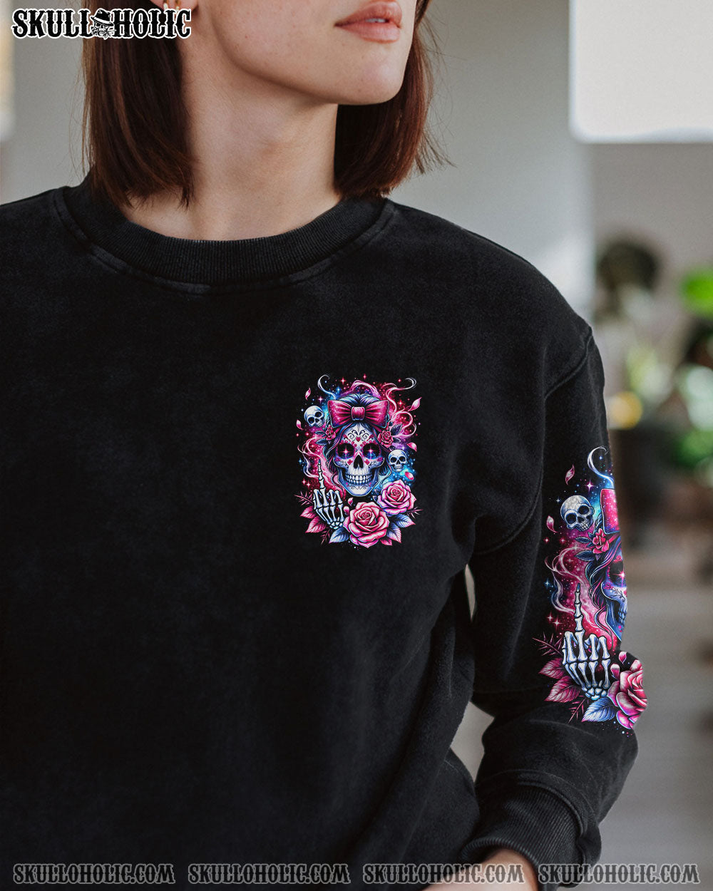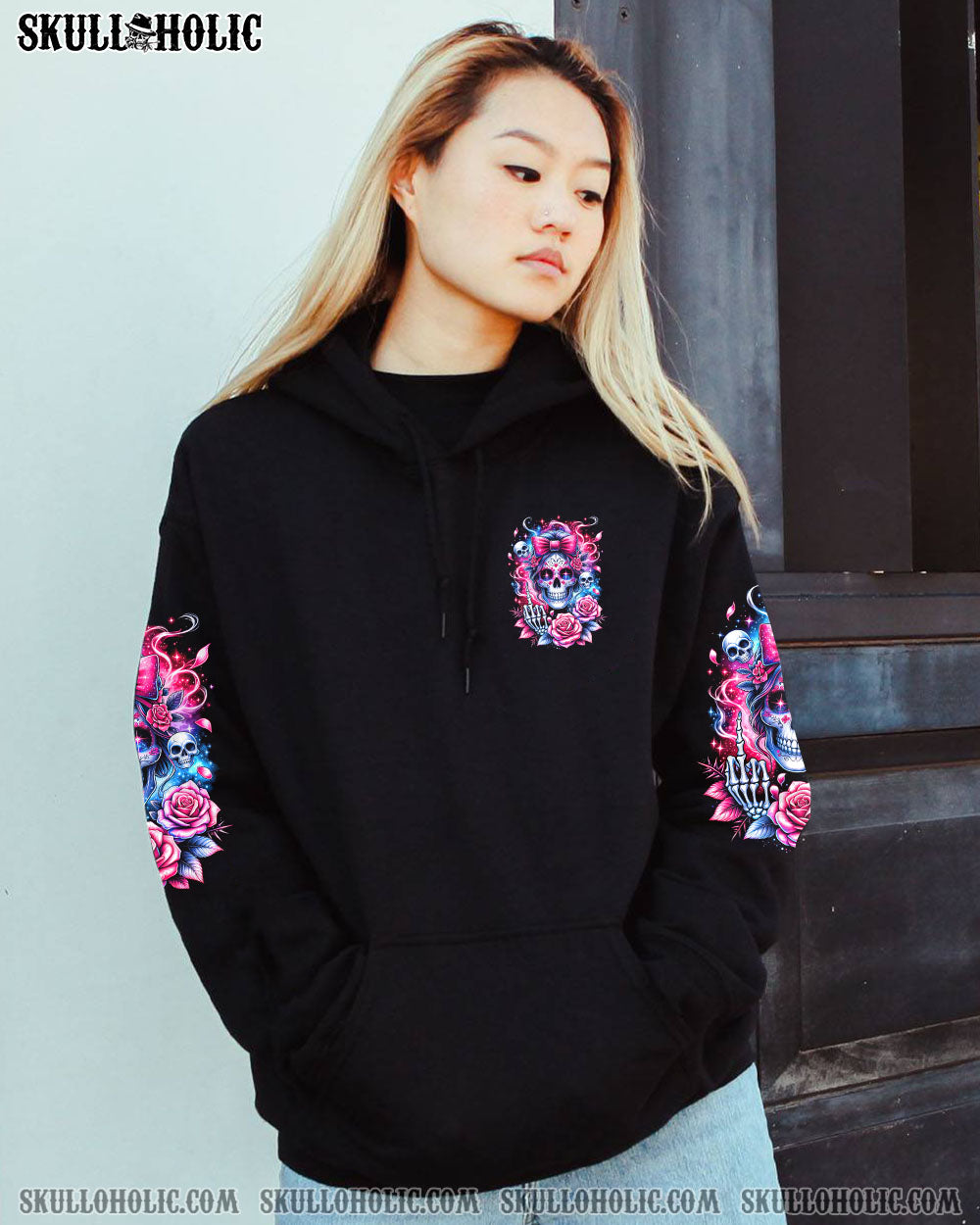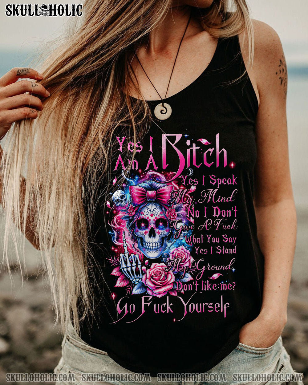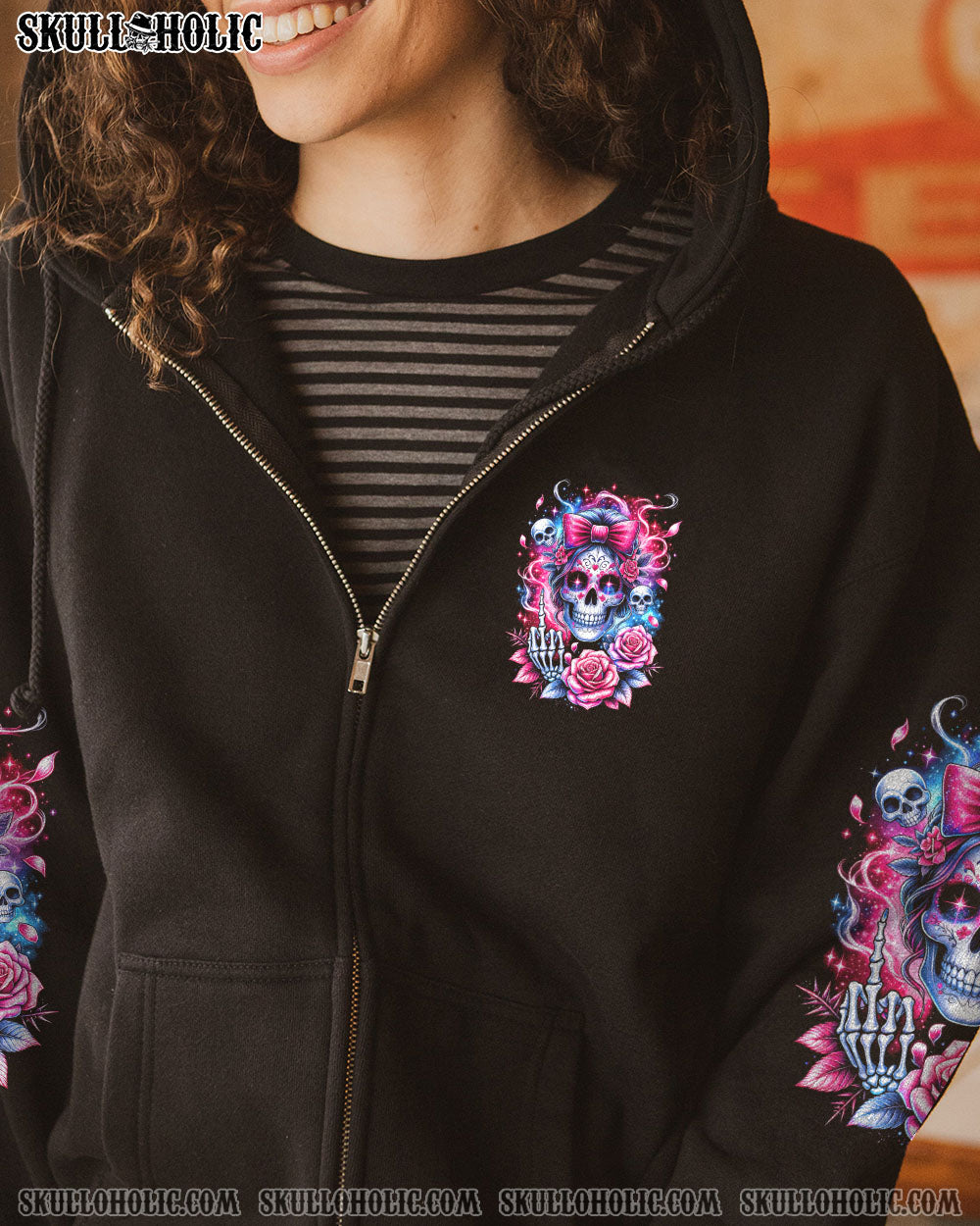 Unleash your unapologetic and fearless spirit with our captivating I AM A B I SPEAK MY MIND ALL OVER PRINT. Featuring a sassy messy bun skull surrounded by vibrant roses, this design celebrates authenticity and individuality. Stand tall and confident against societal judgment with this bold and empowering statement. Embrace your unique self with every glance at this striking and expressive masterpiece.