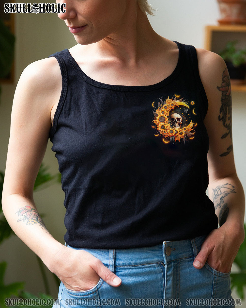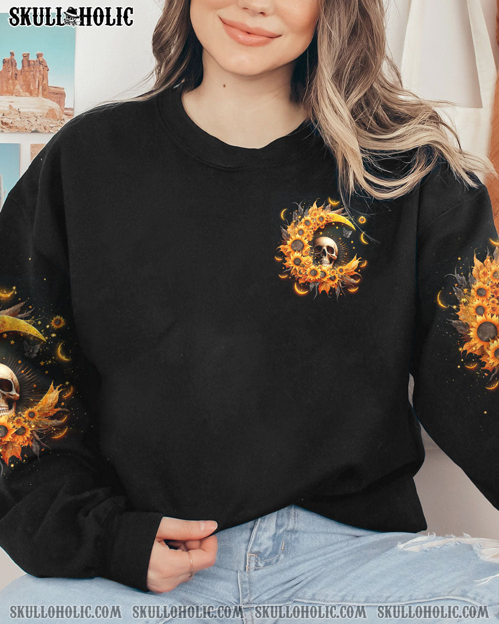 Our website showcases an exclusive design that combines a skull embellished with vibrant and striking sunflowers and an enchanting crescent moon. This extraordinary design serves as a constant reminder to shine brightly and embrace your individuality, as reflected by the accompanying phrase. By choosing to radiate positivity and resilience in the face of challenges, we can inspire others and show our inner strength. With this artistic and elegant design, you’ll undoubtedly stand out from the crowd and turn heads wherever you go.