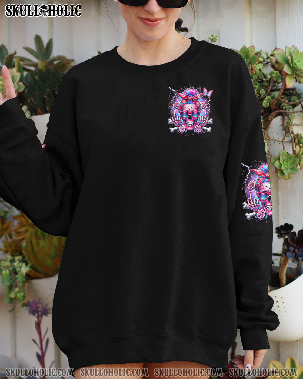 Embody resilience and strength with this powerful all over print messy bun. Featuring a skull with crossed bones, roses, and butterflies, it’s a tribute to those who face challenges head-on and emerge even stronger. Perfect for anyone who refuses to back down and embraces their inner power. Let this design remind you to conquer anything that comes your way.💀🌹🦋