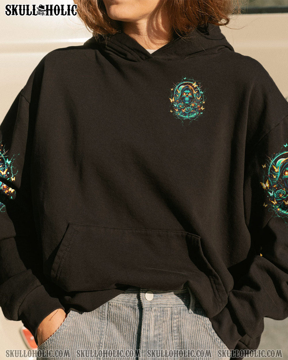 Empower yourself with this stunning representation of inner strength – the I AM THE STORM REAPER ROSE ALL OVER Print. Featuring a majestic reaper surrounded by magical roses and butterflies, this eye-catching design conveys an aura of power and resilience, enhanced by vivid lightning effects. With its inspirational quote, this print captures the transformative journey of overcoming obstacles and reminding yourself of your own power.
