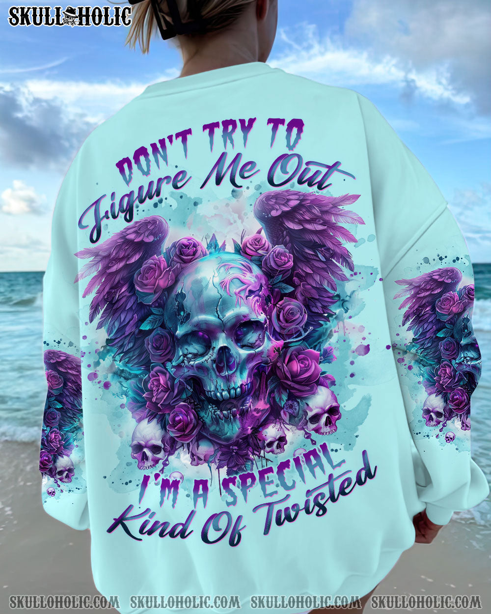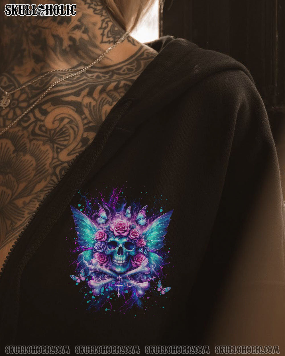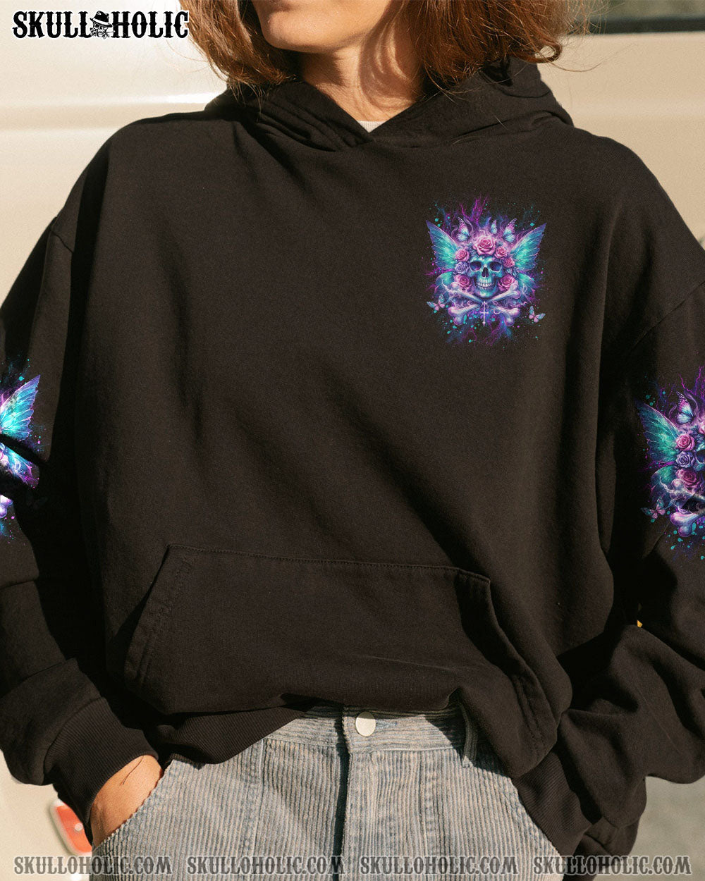 Unleash your hidden strength with our intense Skull Wings All Over Print design. Featuring a fierce skull with intricate wings, delicate roses, and graceful butterflies, this artwork embodies determination. With the empowering quote “I am the storm,” our design reminds you that you can overcome any obstacle. Embrace your inner power and face life with courage.
