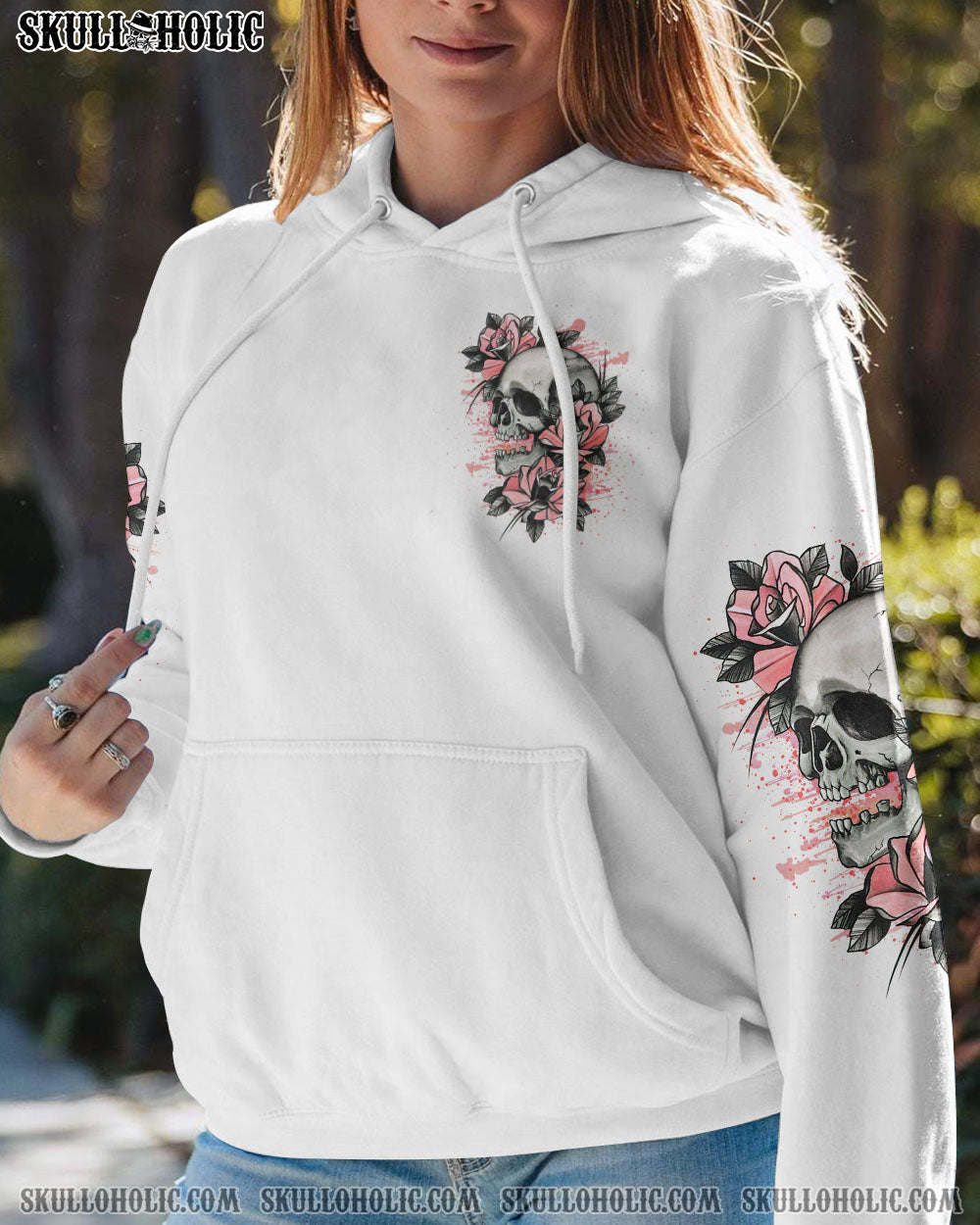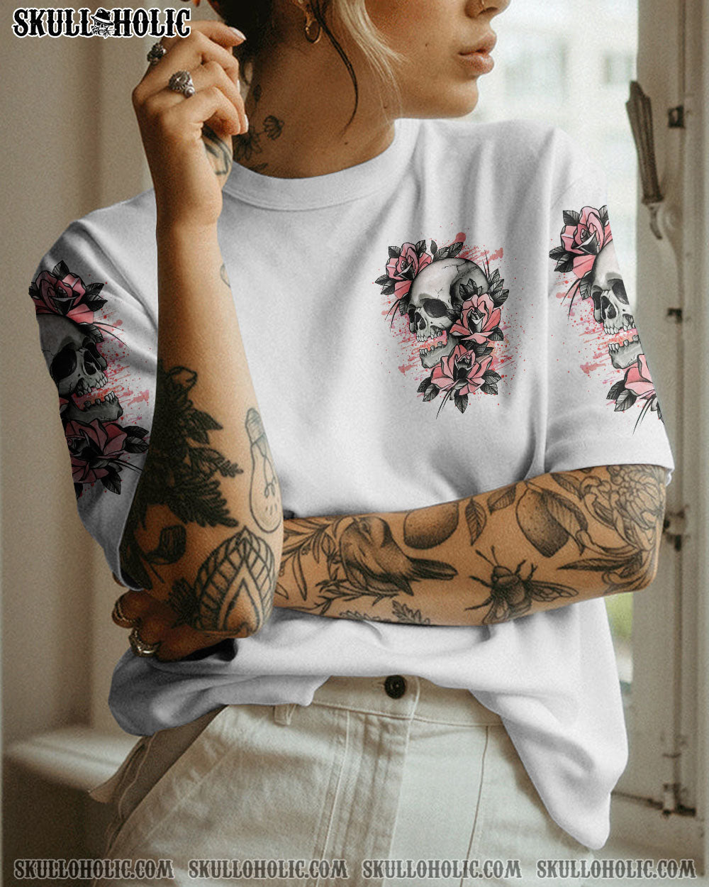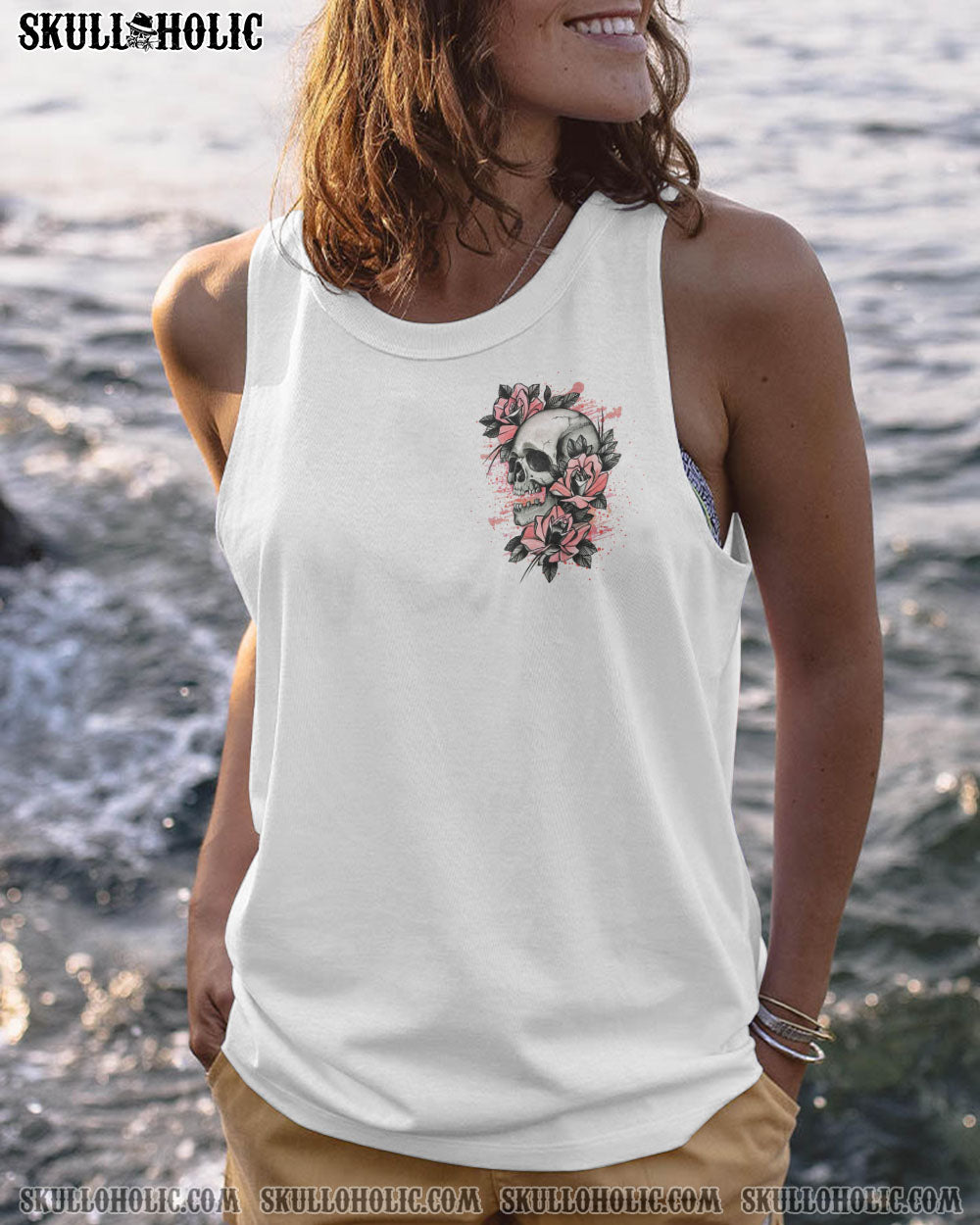 This design is sure to make a bold statement. Featuring a striking skull surrounded by beautiful flowers and a powerful quote, this design is perfect for expressing your edgy style. Our high-quality printing process ensures vibrant colors and outstanding image quality that will last for years.Â