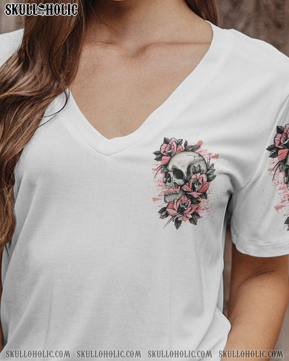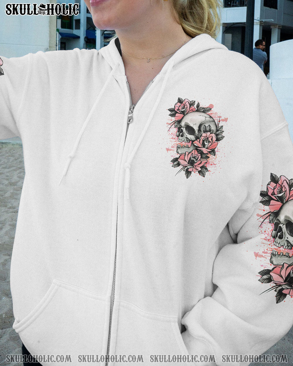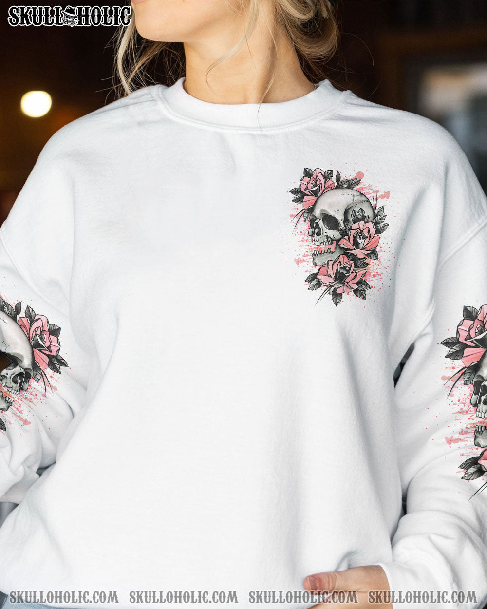 This design is sure to make a bold statement. Featuring a striking skull surrounded by beautiful flowers and a powerful quote, this design is perfect for expressing your edgy style. Our high-quality printing process ensures vibrant colors and outstanding image quality that will last for years.Â