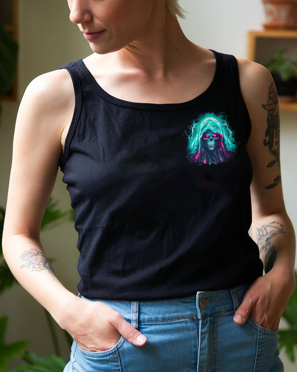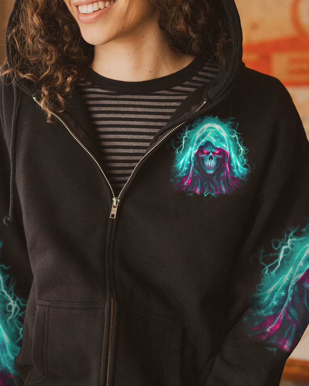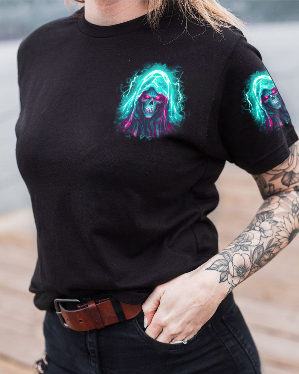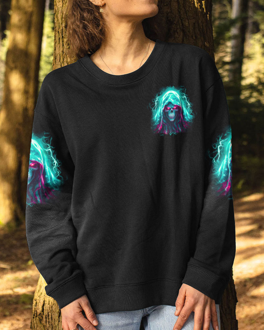 Make a statement with our I DON’T HAVE THE ENERGY PINK REAPER ALL OVER PRINT. This powerful design features fierce and angry eyes for an affirmation of honesty and authenticity in relationships. The saying on the print speaks to the importance of genuine connections and a clear message of being true to oneself. Show that deceit is not welcomed in your life.