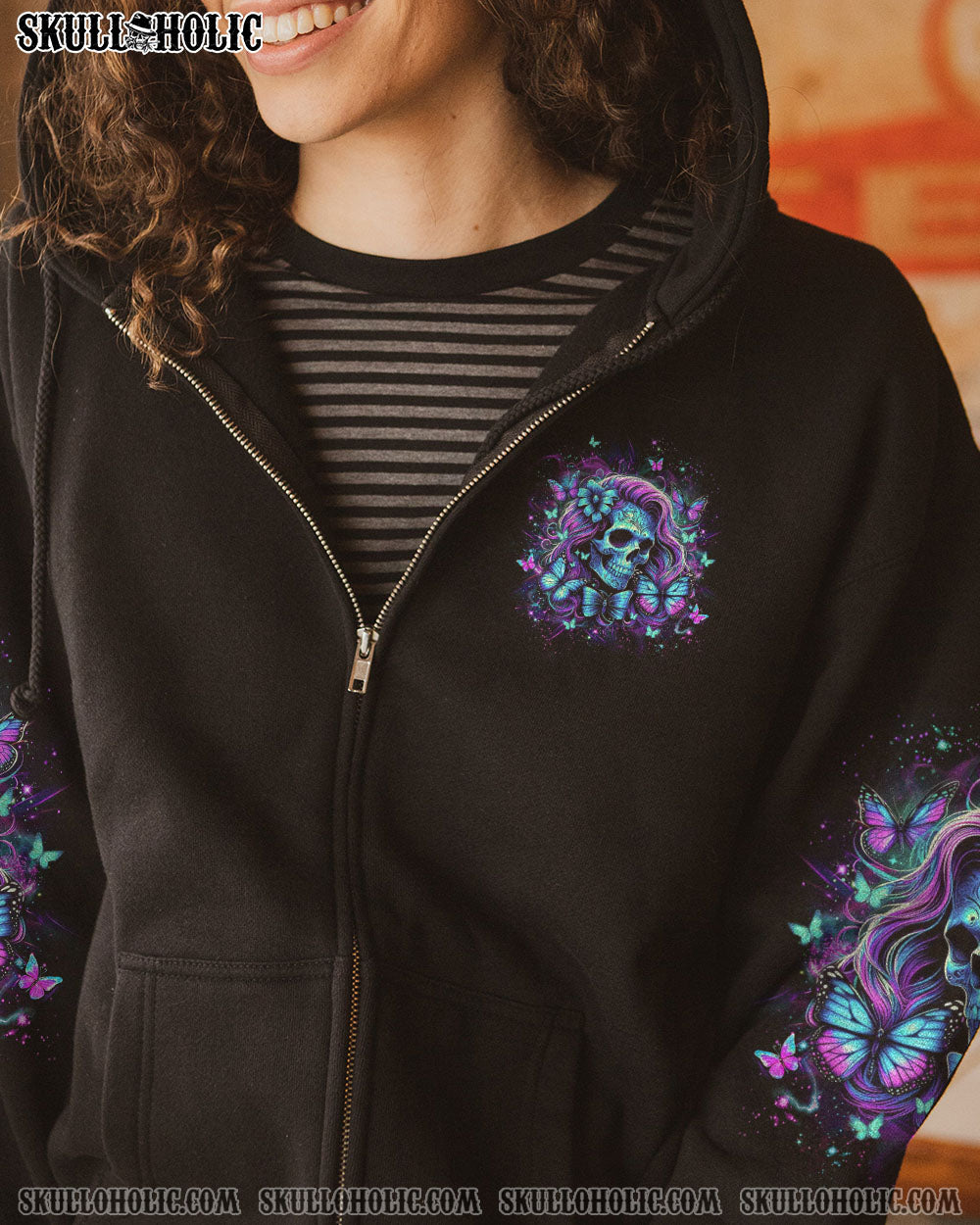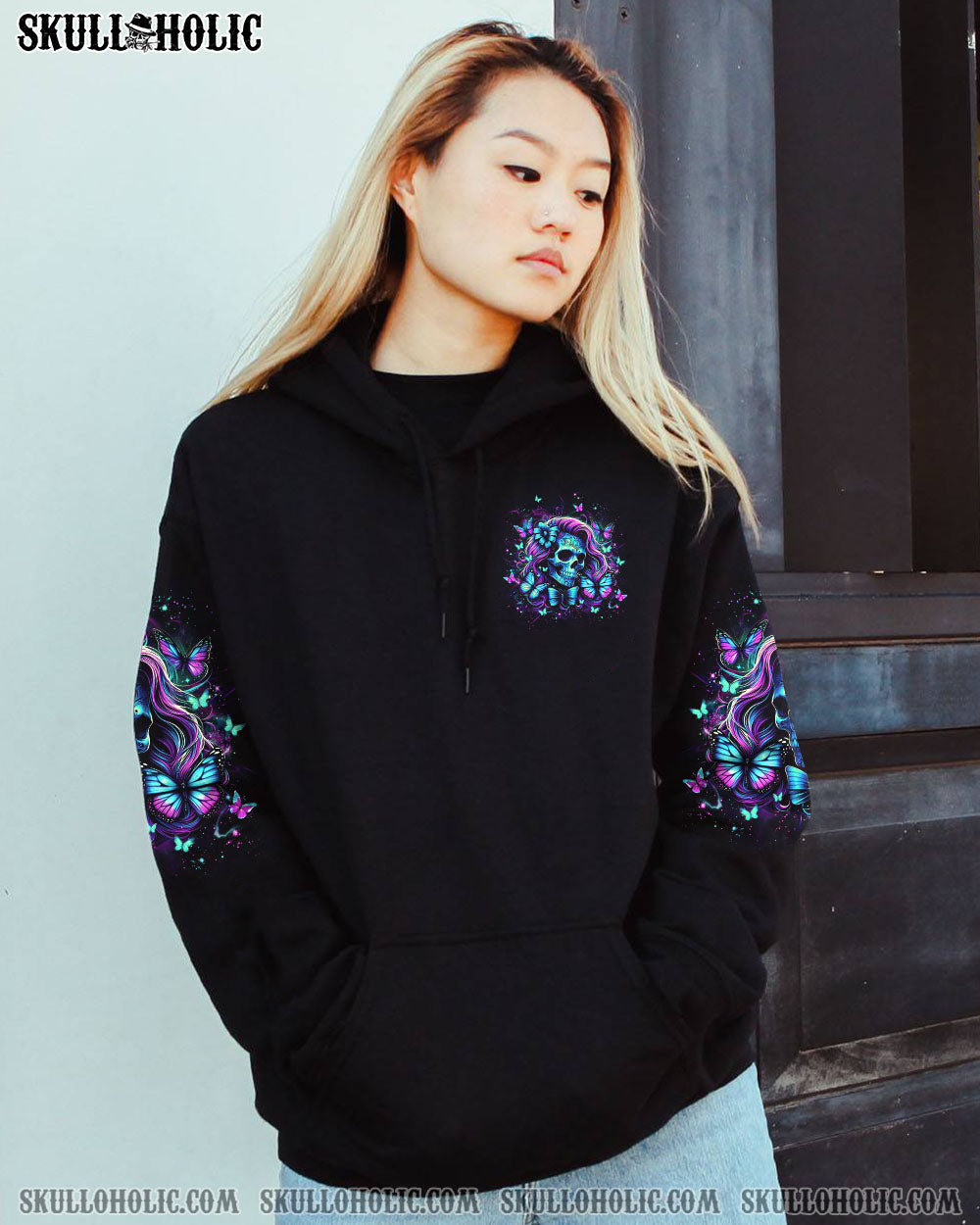 Embrace the multifaceted nature of your identity with our “I HOLD A BEAST AN ANGEL ALL OVER PRINT” top. Featuring a dangerous skull lady surrounded by fluttering butterflies, this top represents the diverse facets of our personality. Unleash your fierce beast, channel your gentle angel, or embrace your wild spirit – the choice is yours.