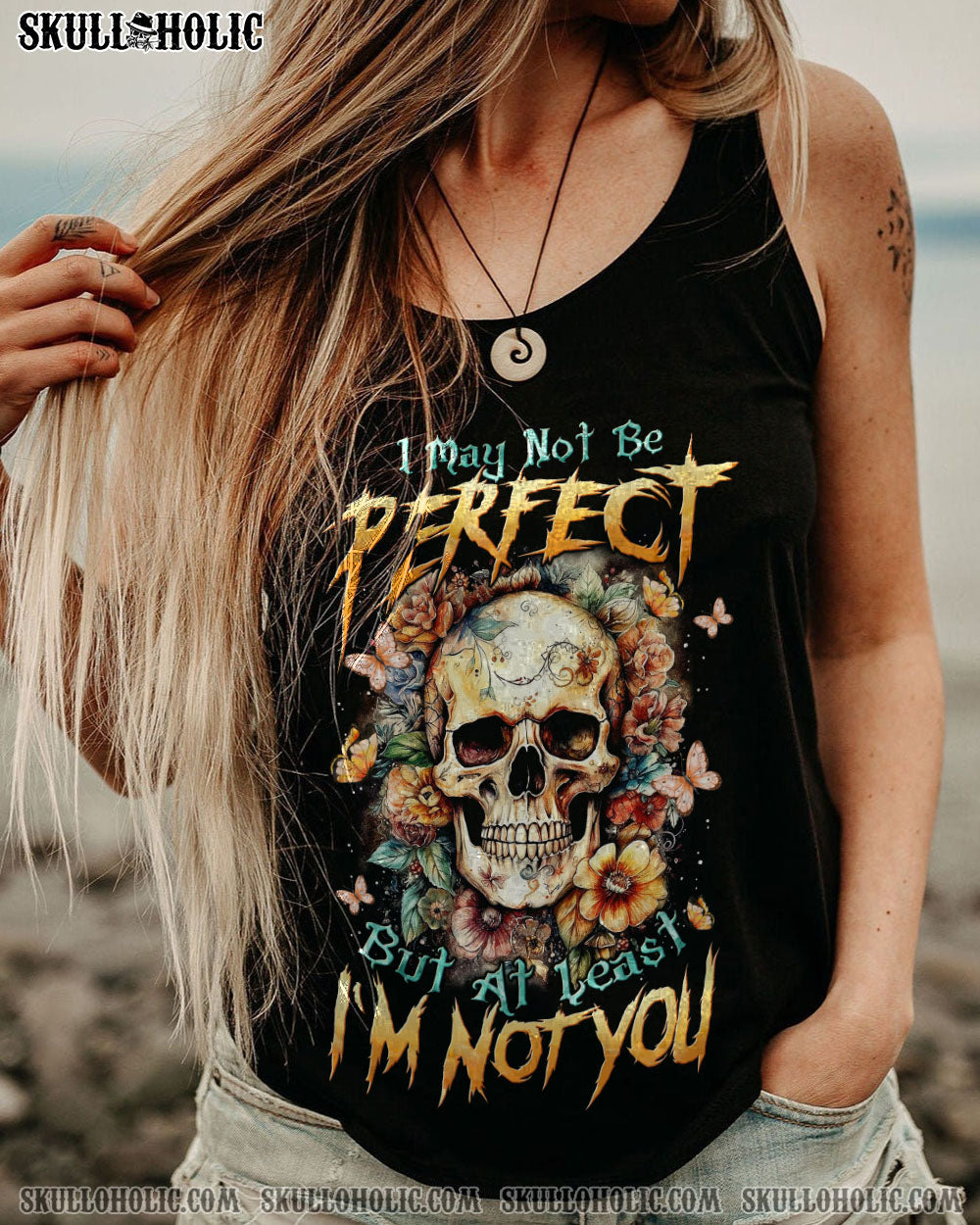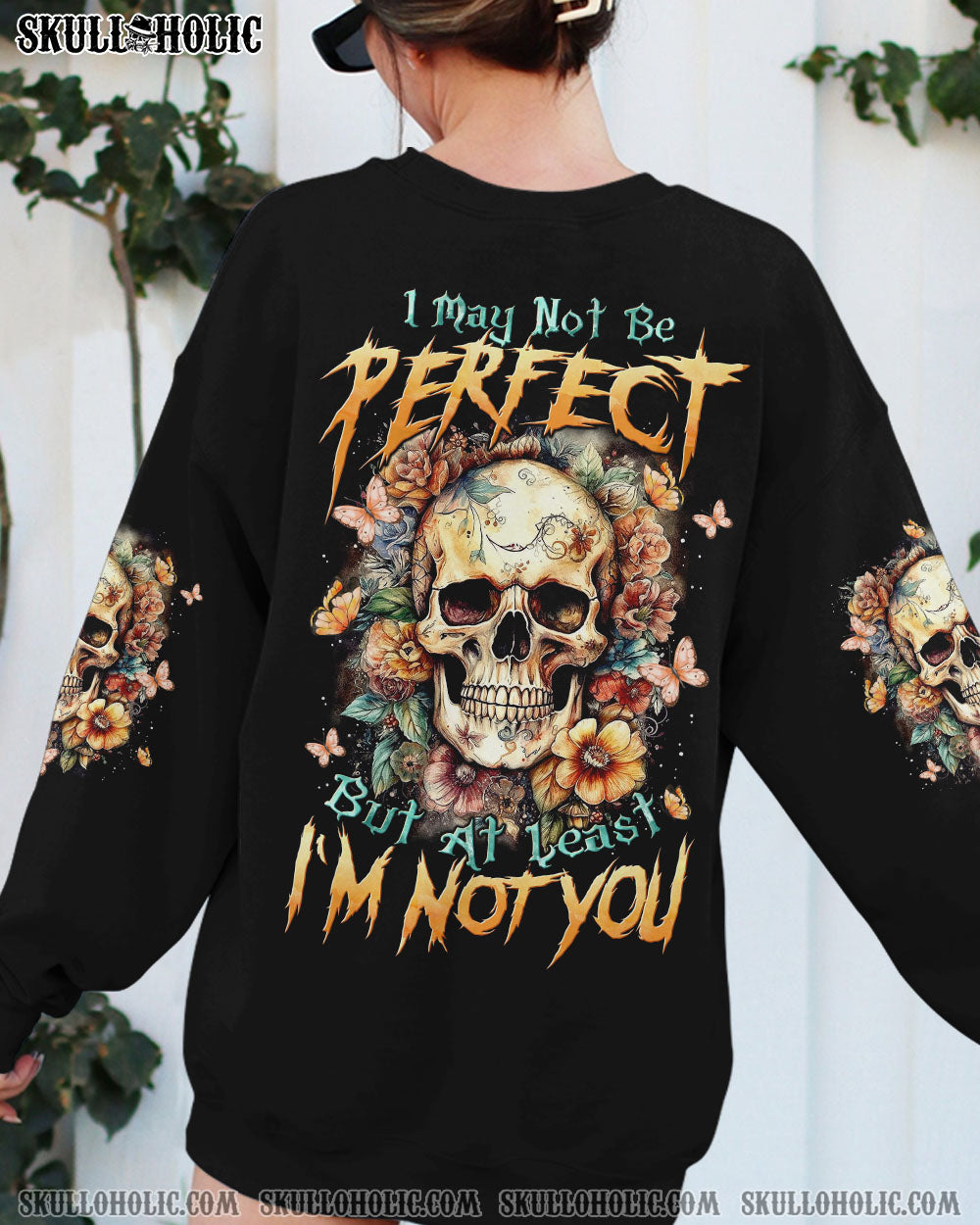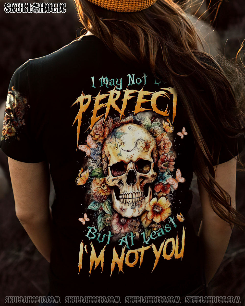 I MAY NOT BE PERFECT FLORAL SKULL ALL OVER PRINT – TLTW1007233