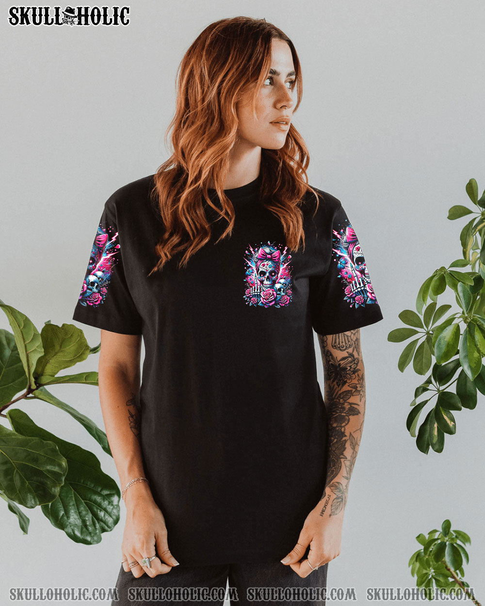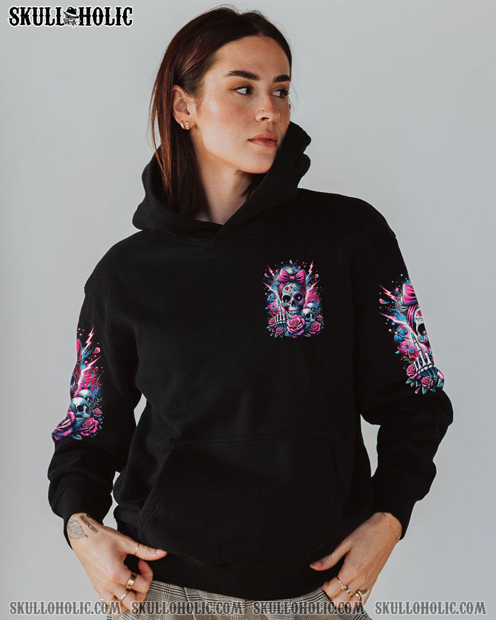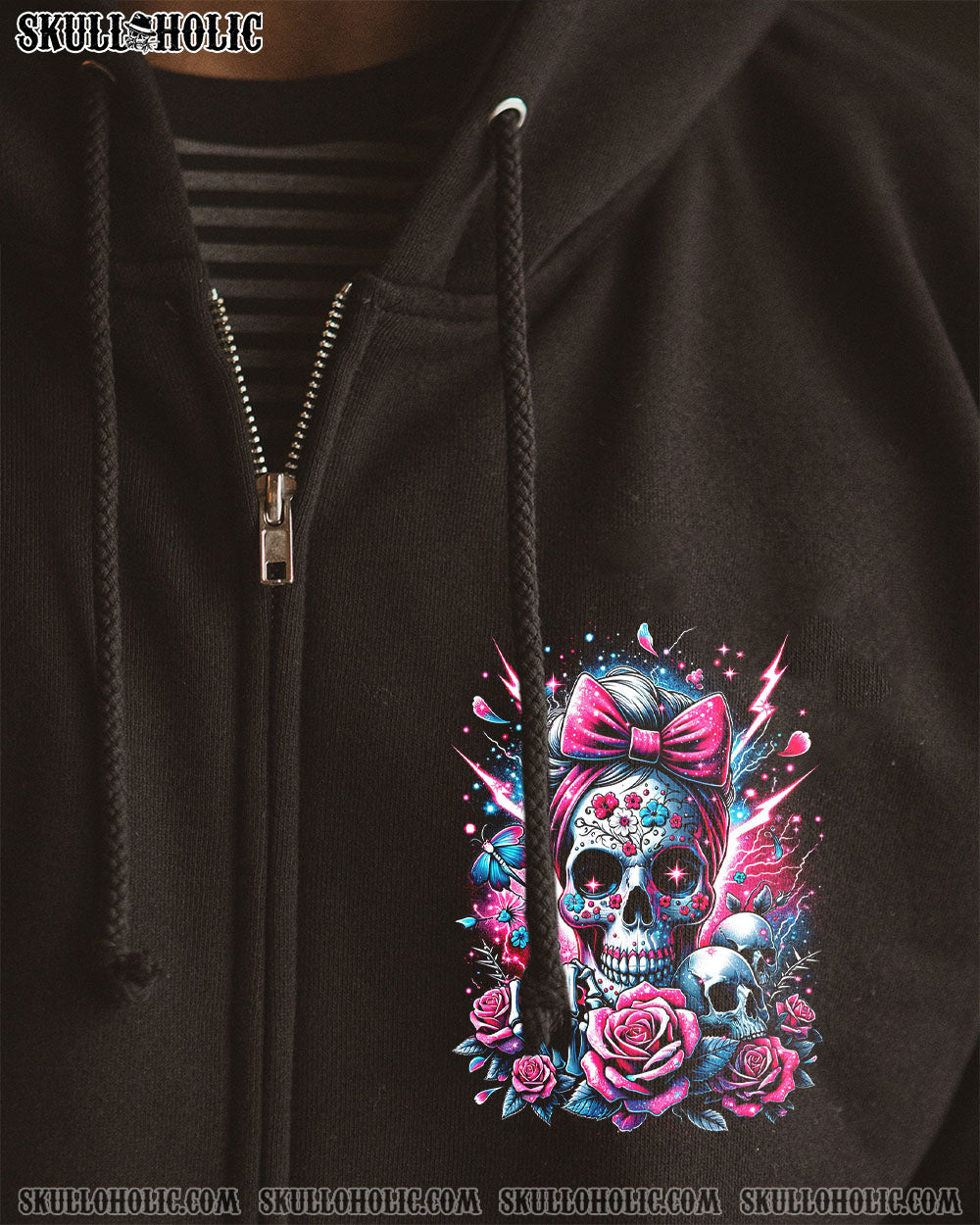 Embrace bold elegance with our unique design. Juxtaposing a skull bun and delicate bow, symbolizing edgy charm and enduring beauty, under the echoes of thunder and empowering quote. Stand out effortlessly and leave an impression with a testament to individuality and resilience. %”Design speaks louder than words.”