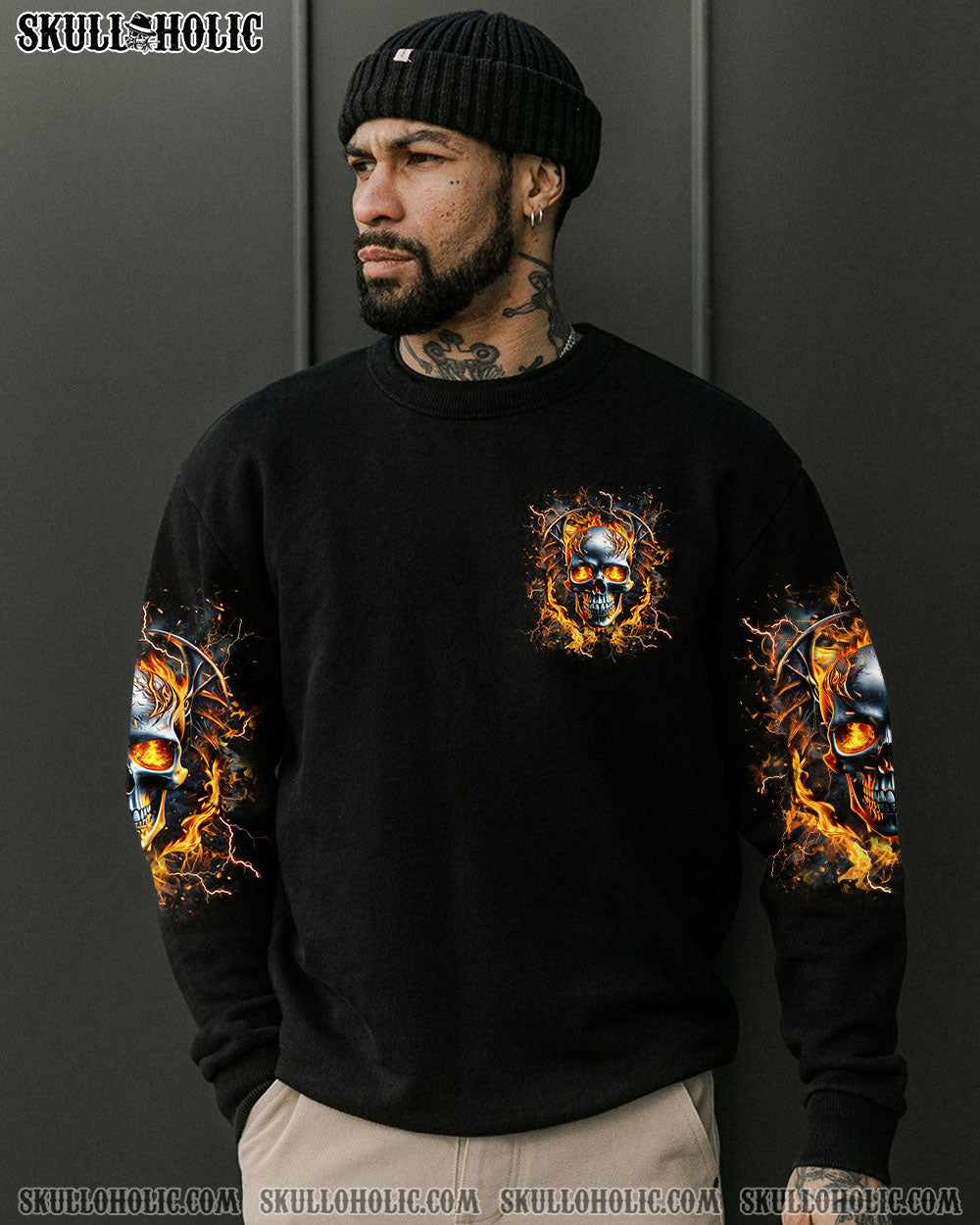 Unleash your fierce attitude with our daring design! This graphic features a menacing skull with fiery eyes and electrifying lightning bolts, embodying strength and warning. Wear this design to showcase your bold and unyielding spirit. Embrace your power with our electrifying design!