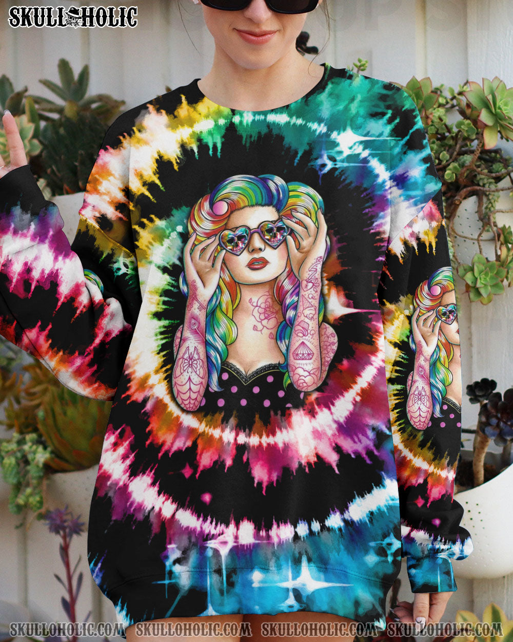 I'M BLUNT BECAUSE GOD ROLLED ME TATTOO GIRL TIE DYE ALL OVER PRINT - TLNO2507238