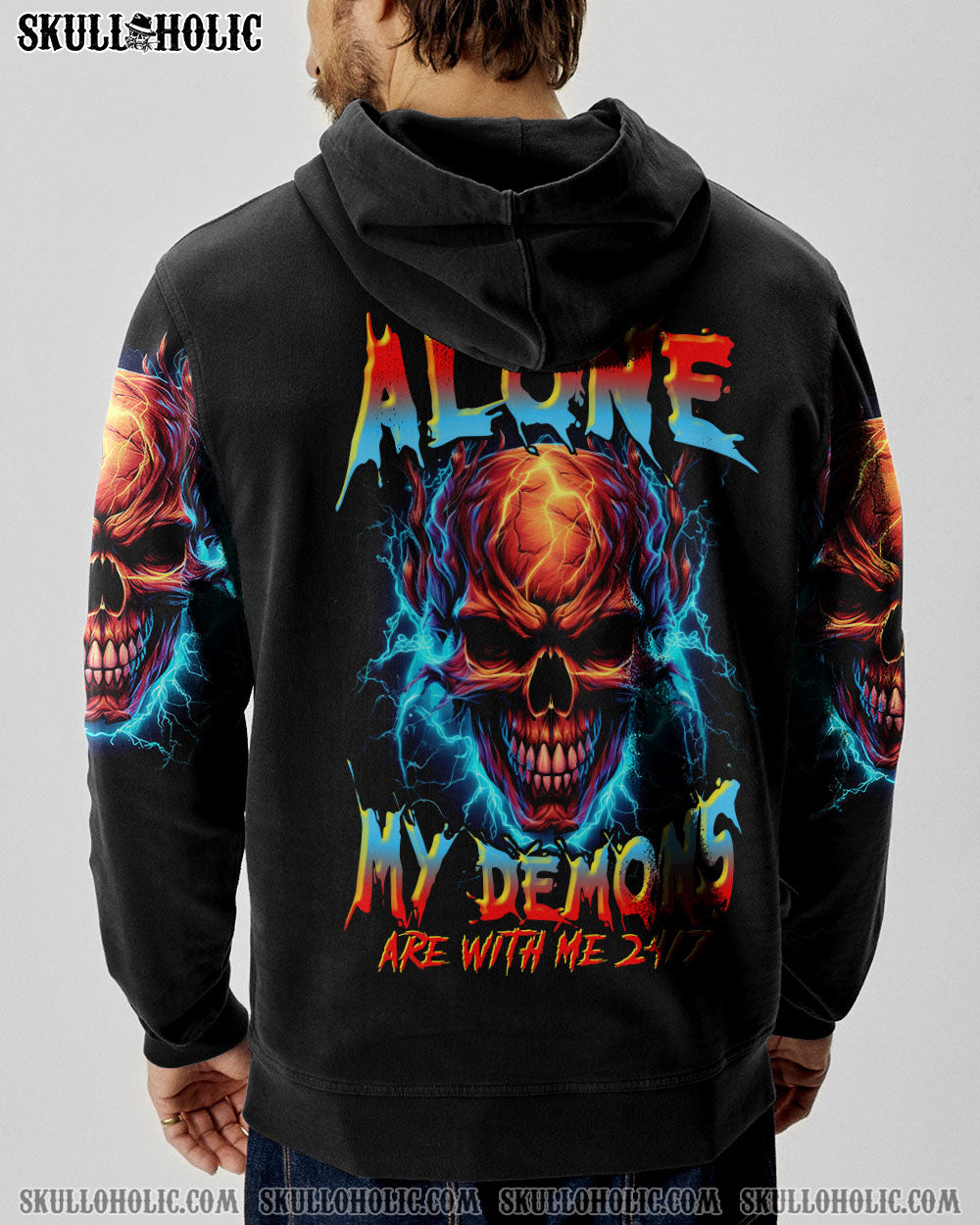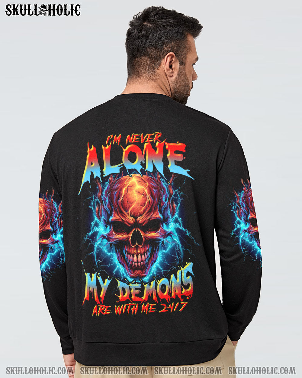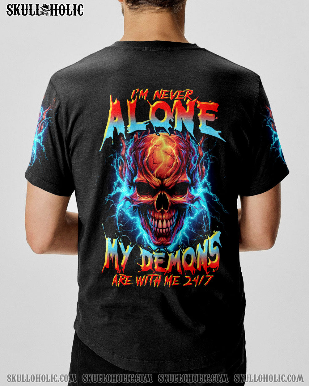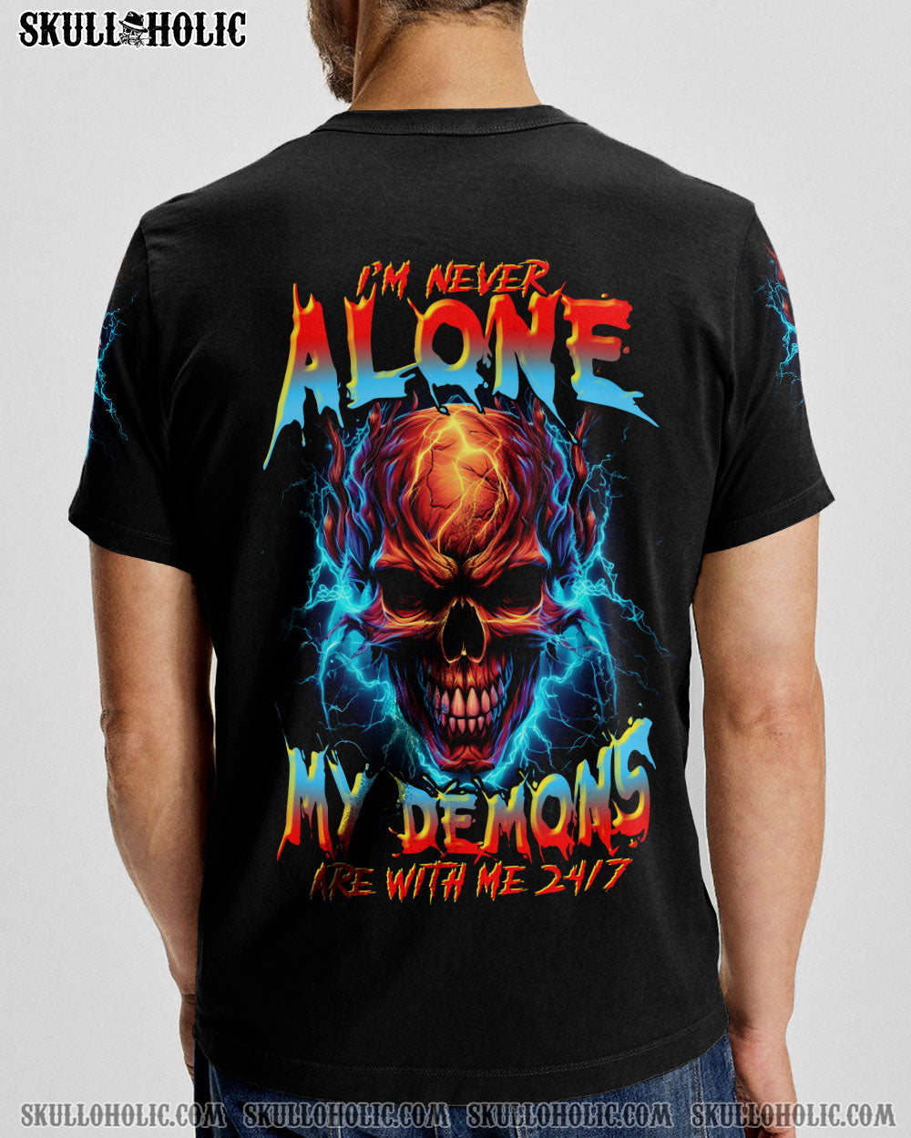 Our I’M NEVER ALONE THUNDER SKULL ALL OVER PRINT is the perfect way to showcase your rebellious side. Its fierce lightning and spark effects highlight a bold skull design. The phrase “I’m never alone, my demons are with me 24/7” is a powerful reminder of overcoming our inner struggles and using that strength to face life’s obstacles head-on.