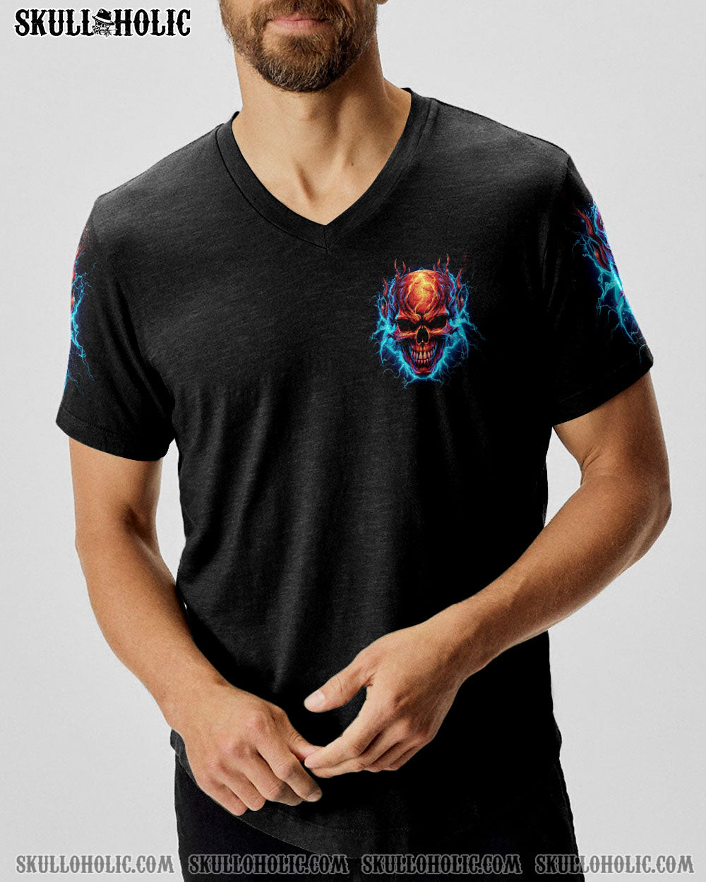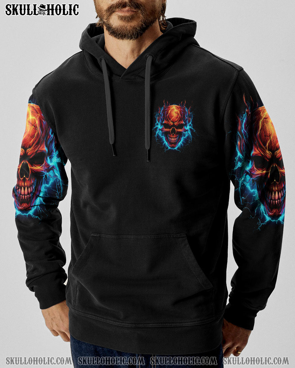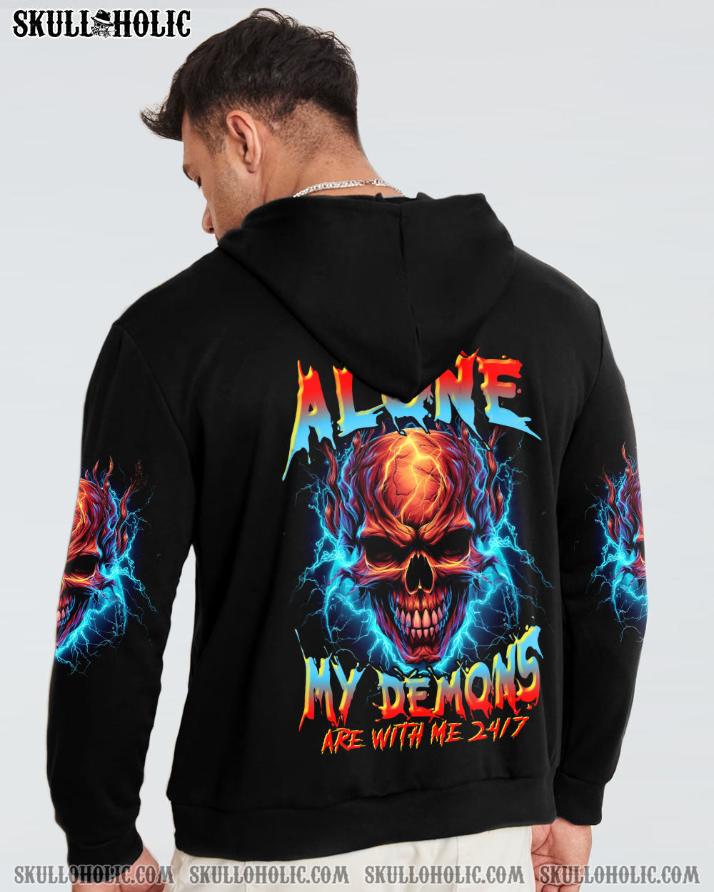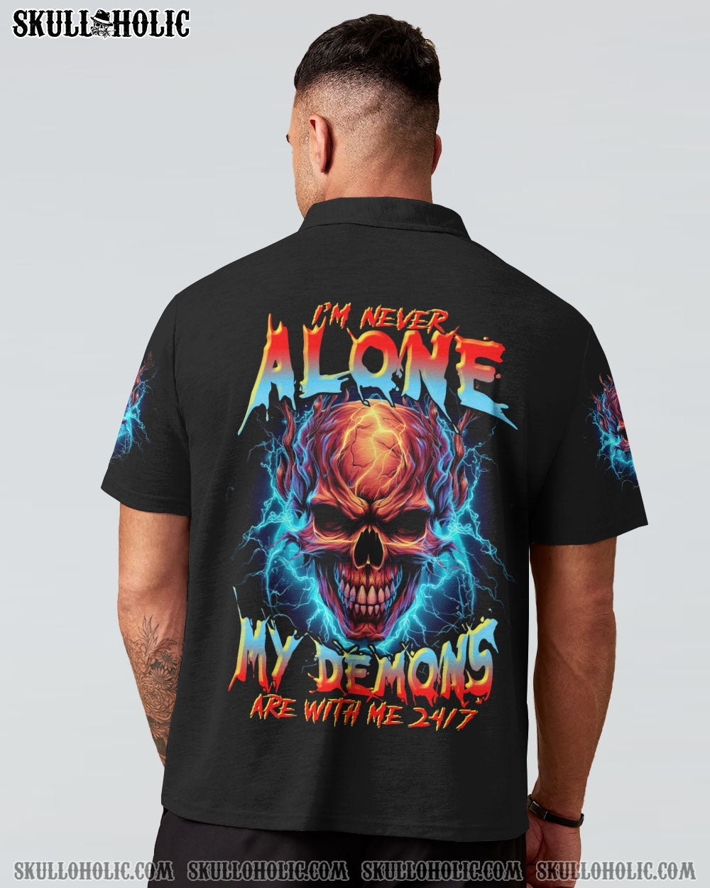 Our I’M NEVER ALONE THUNDER SKULL ALL OVER PRINT is the perfect way to showcase your rebellious side. Its fierce lightning and spark effects highlight a bold skull design. The phrase “I’m never alone, my demons are with me 24/7” is a powerful reminder of overcoming our inner struggles and using that strength to face life’s obstacles head-on.