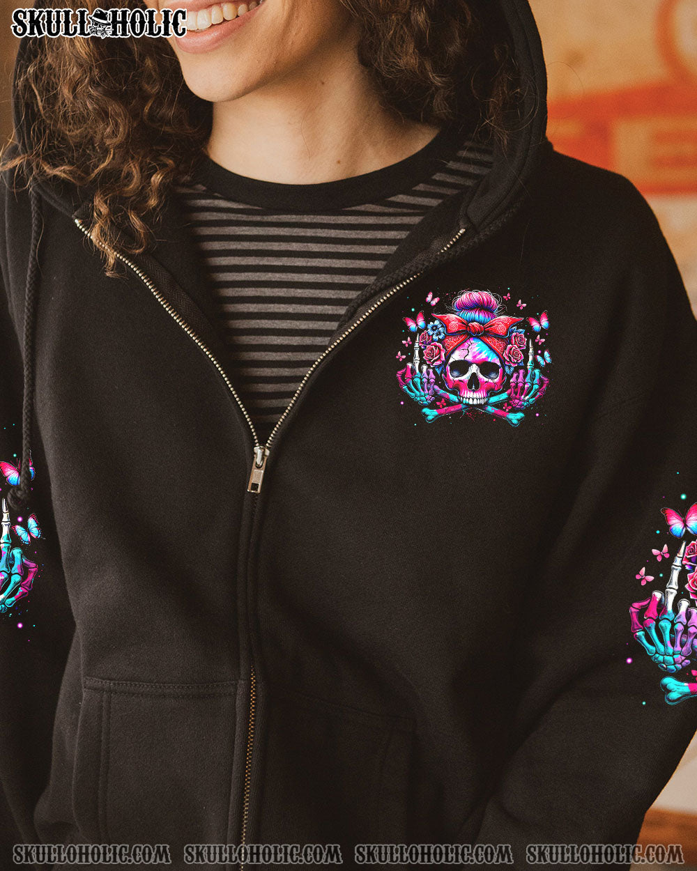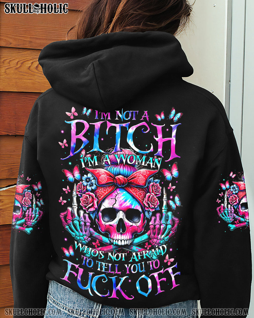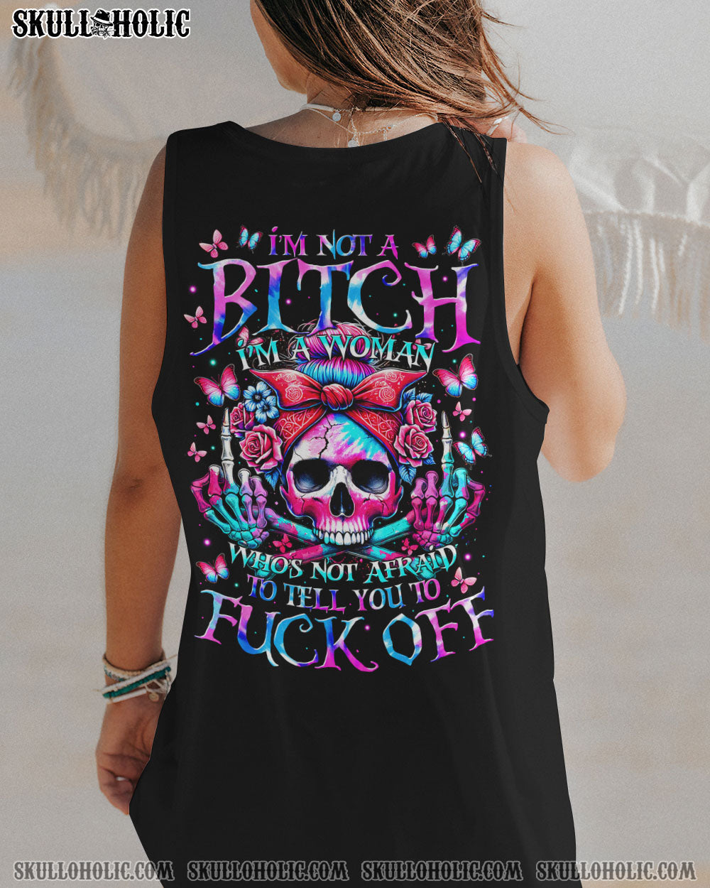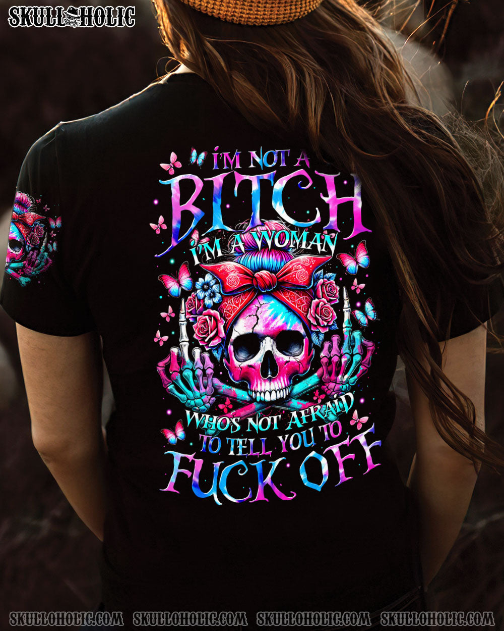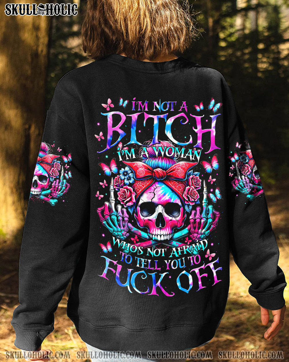 Tap into your inner strength with our bold I’M NOT A B I’M A WOMAN ALL OVER PRINT shirt. Featuring a skull, roses, and butterflies, it represents the fierce spirit of a confident woman. She knows her worth, stands tall, and lives her truth. Remind everyone that respect is earned, not given.💀🌹🦋