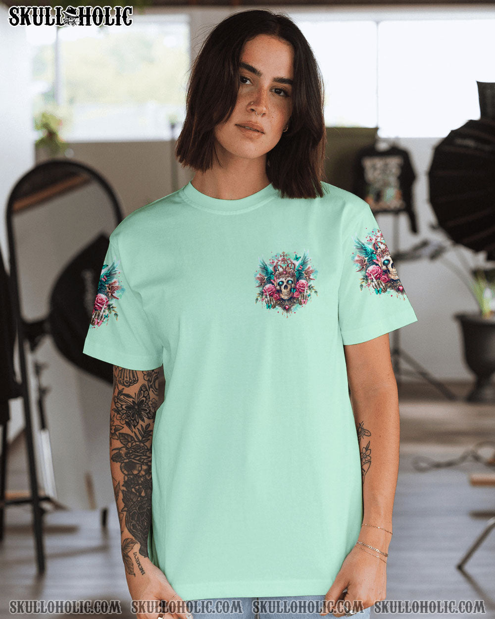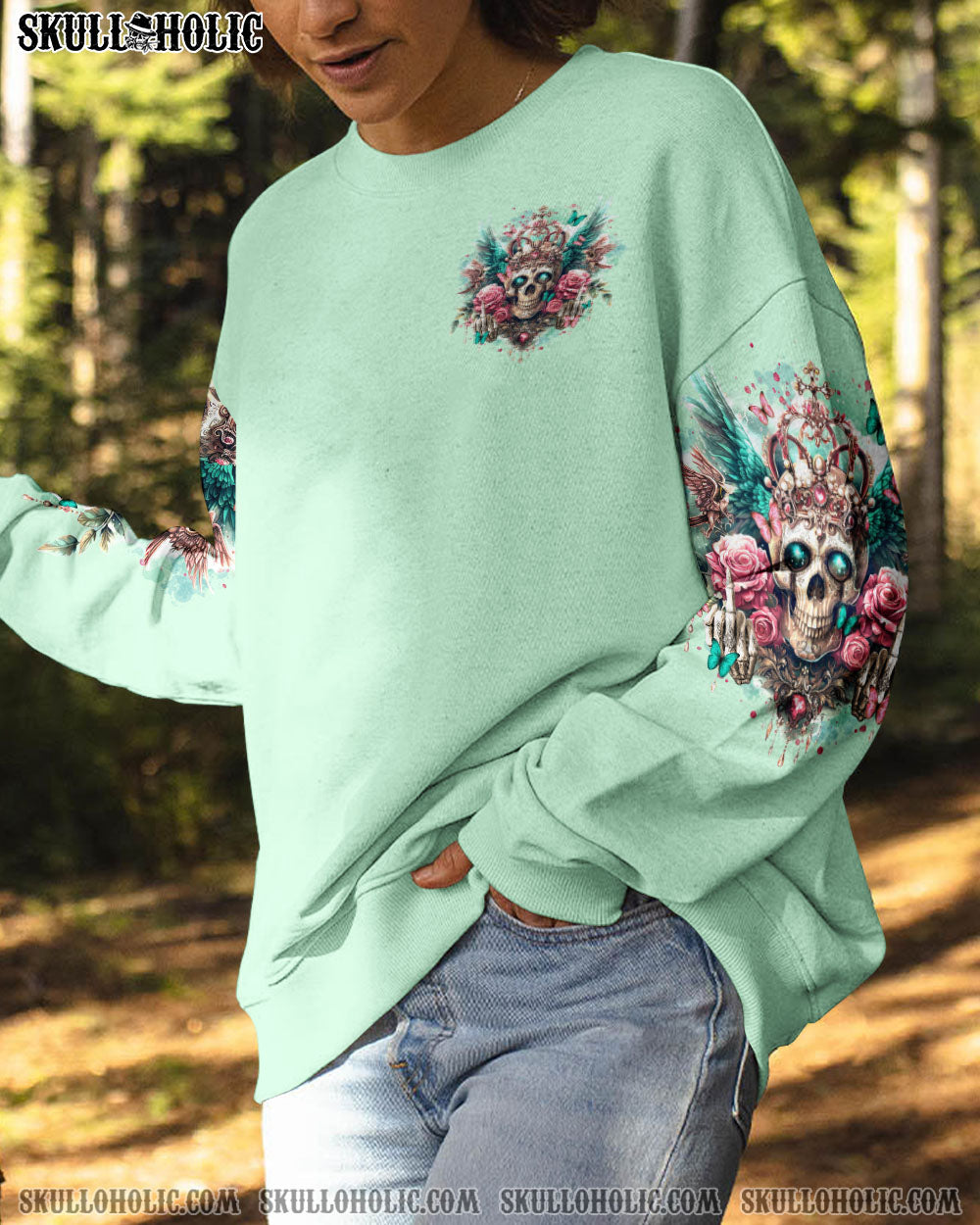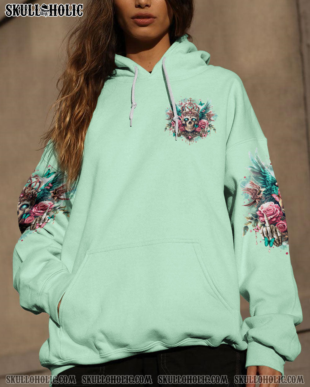 Experience fierce self-assurance with our I’M THE F QUEEN SKULL ALL OVER PRINT. Adorned with roses, wings, and a mysterious smile, this design radiates strength and sovereignty. Make a powerful statement of empowerment and confidence with this unique piece, rejecting societal labels and embracing your inherent worth and authority. Defy challenges with unapologetic determination.