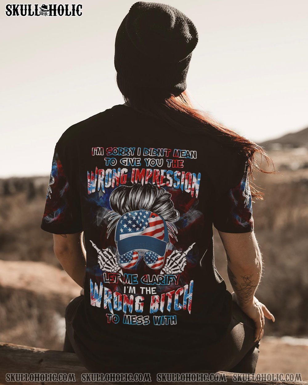 I’M THE WRONG B TO MESS WITH MESSY BUN ALL OVER PRINT – TLTW0804232