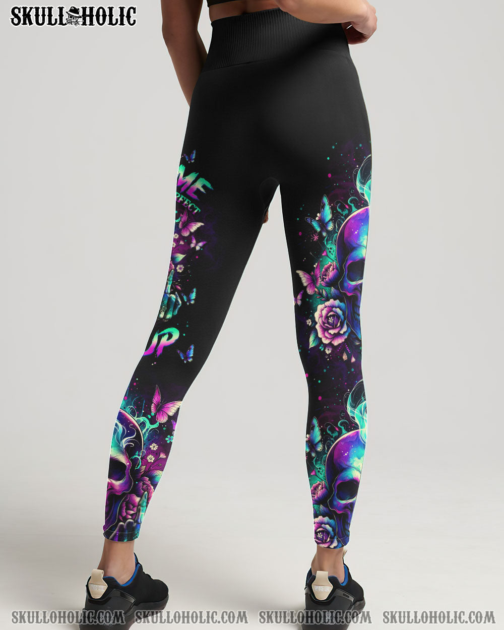 Our intricate floral skull print is the perfect combination of edgy and enchanting. A mysterious smiley face radiates enigmatic charm, enhanced by vibrant butterflies and magical flying flowers. The bold colors make a powerful statement: “Judge me when you are perfect, otherwise shut up”. Showcase your unique style with this eye-catching design!
