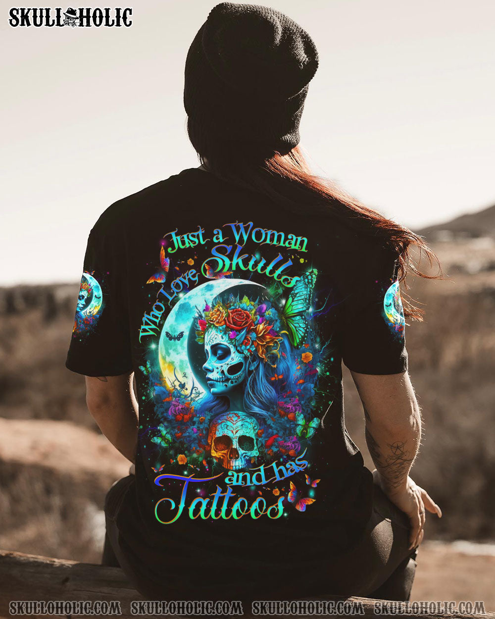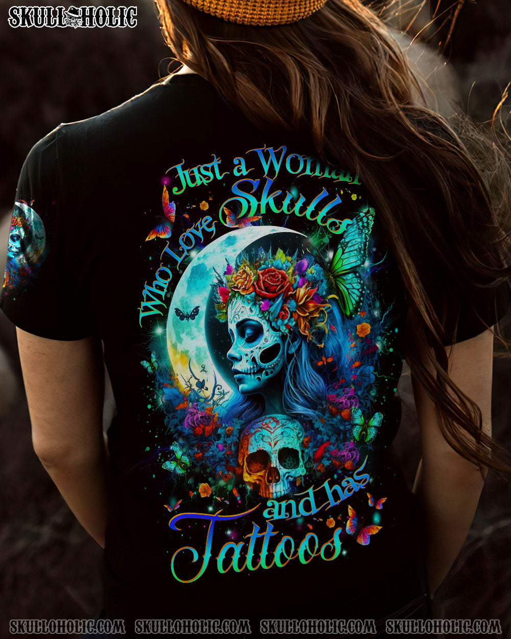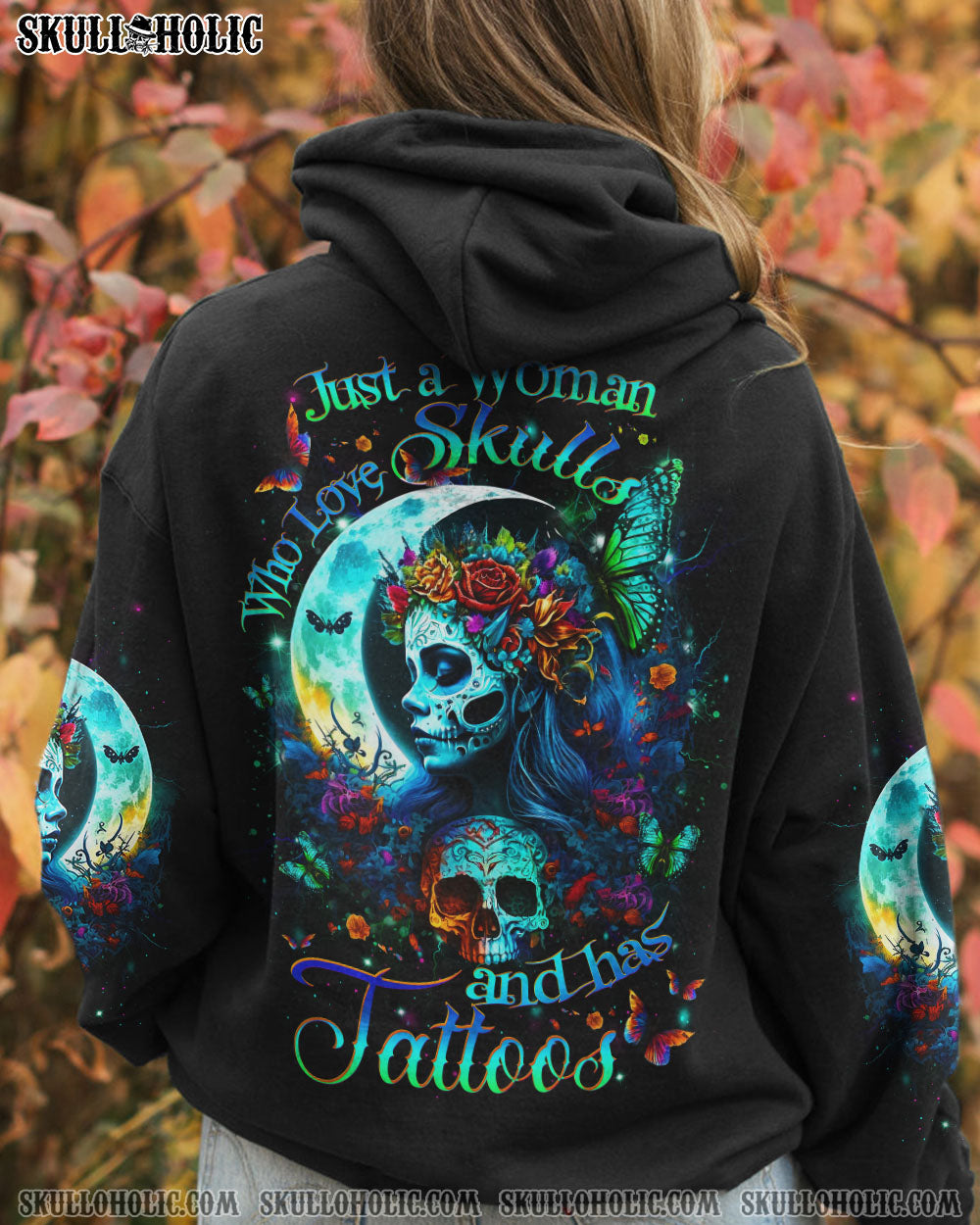 JUST A WOMAN WHO LOVES SKULL AND HAS TATTOOS ALL OVER PRINT - YHDU2007231