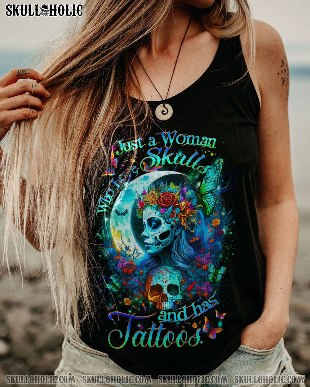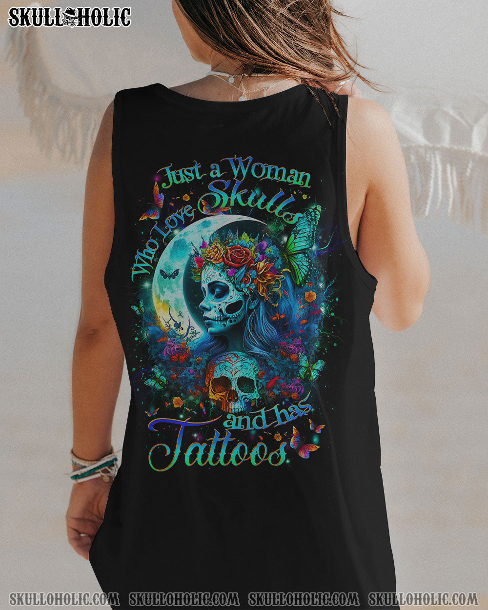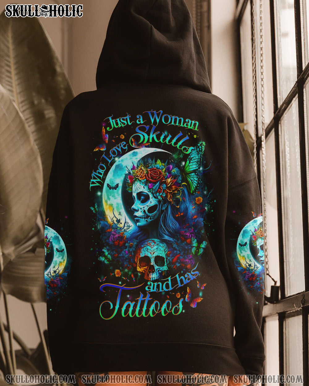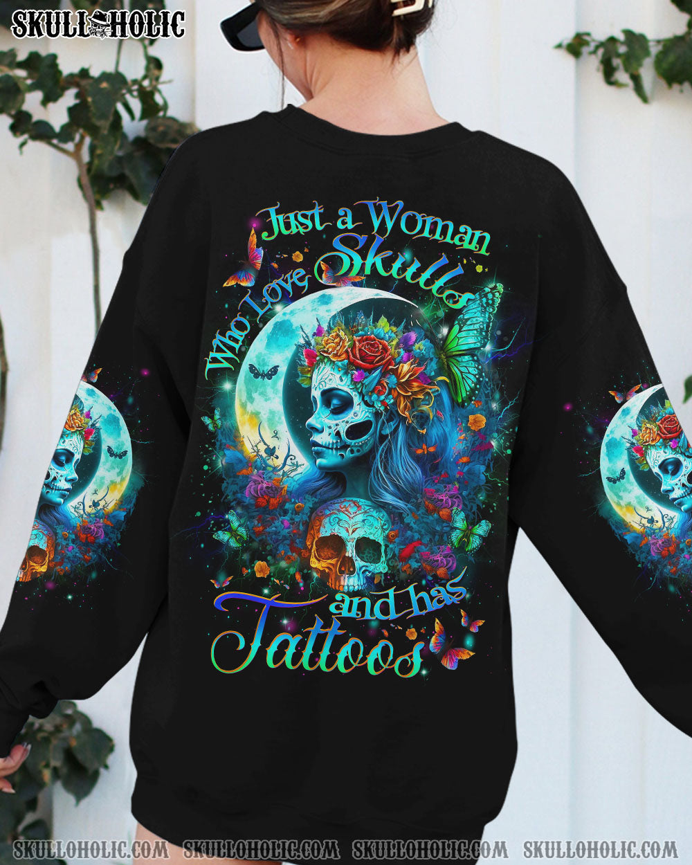 JUST A WOMAN WHO LOVES SKULL AND HAS TATTOOS ALL OVER PRINT - YHDU2007231