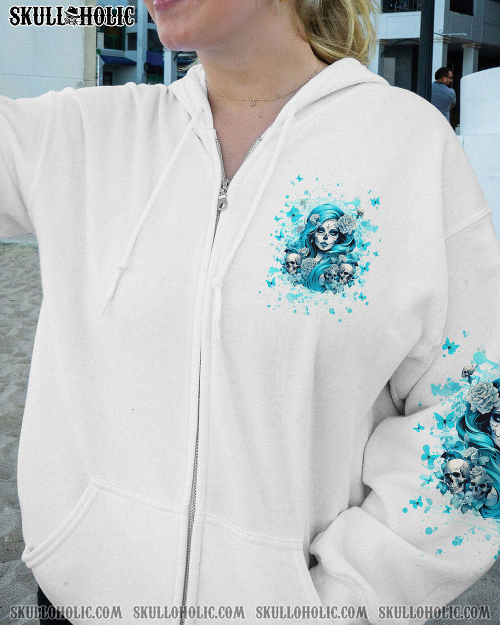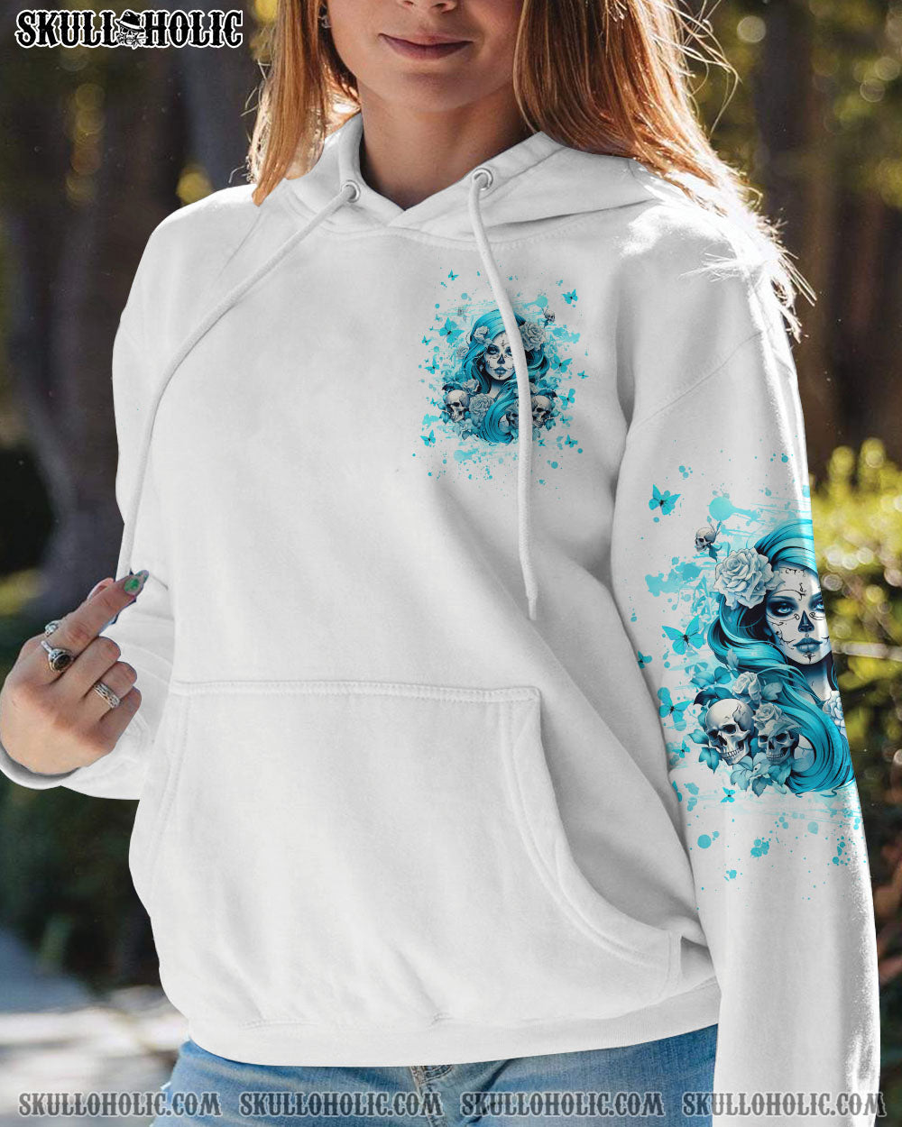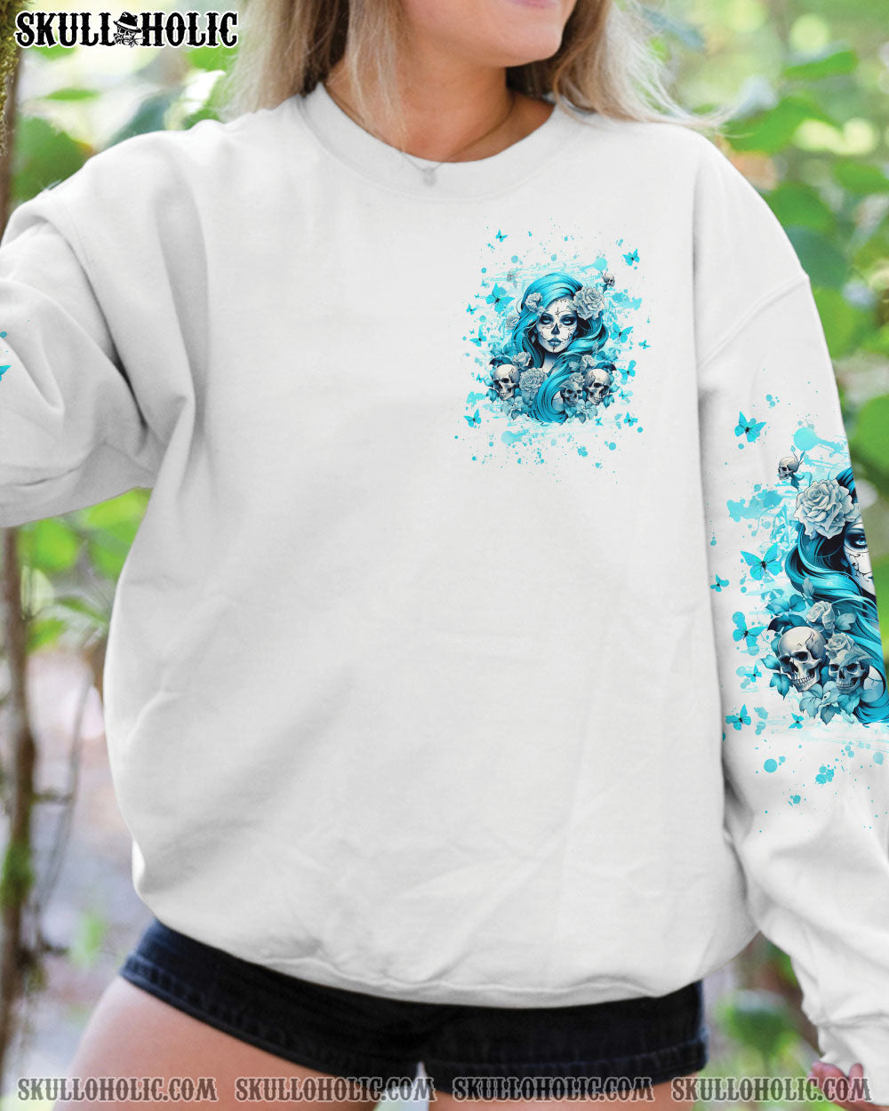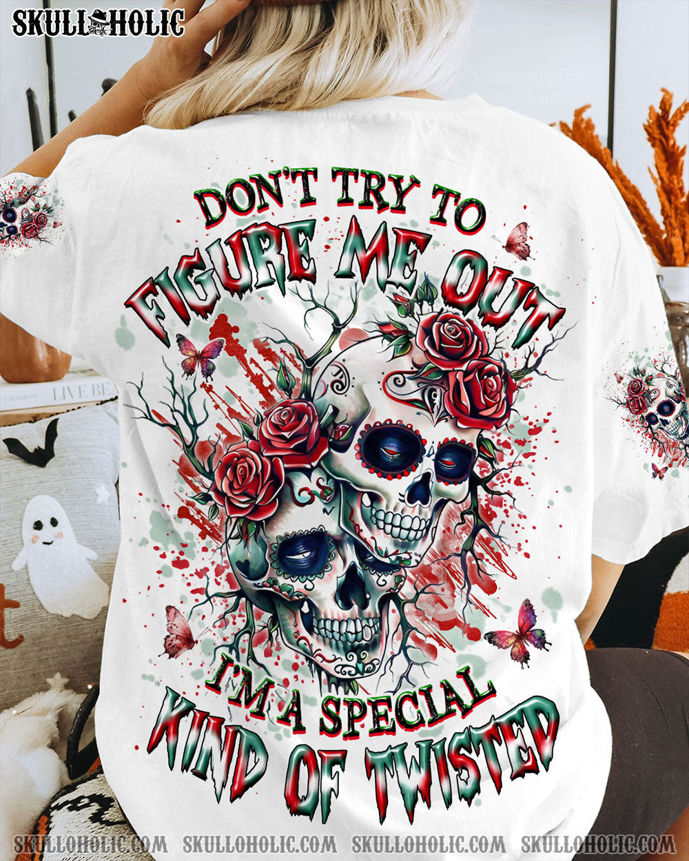 JUST A WOMAN WHO LOVES SKULL AND HAS TATTOOS ALL OVER PRINT – YHHG2507242