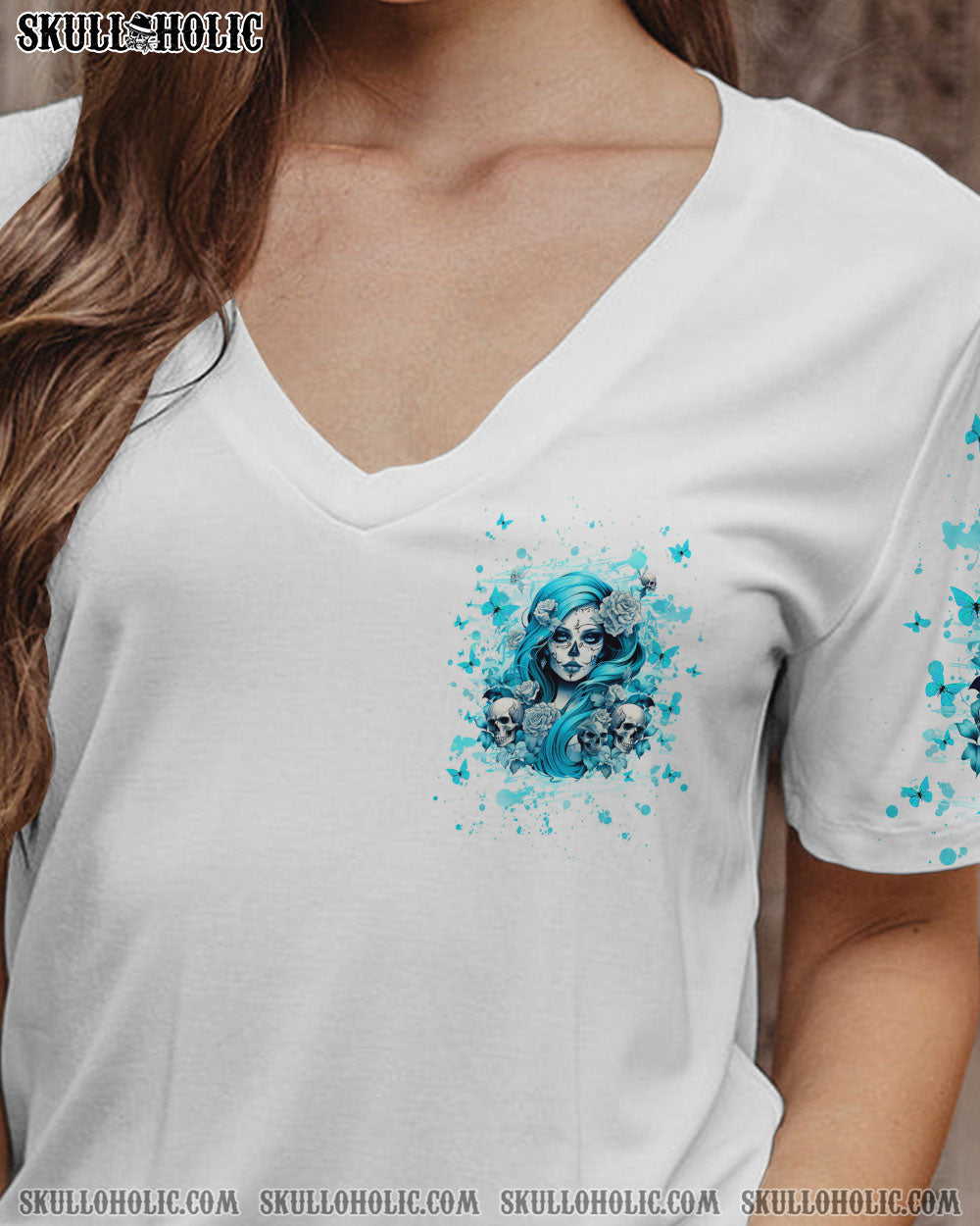 Celebrate your fierce and fabulous side with this bold design of a striking skull lady surrounded by flowers and butterflies. It’s a tribute to those who embrace their unique style and passions. Perfect for the woman who combines elegance with edge.