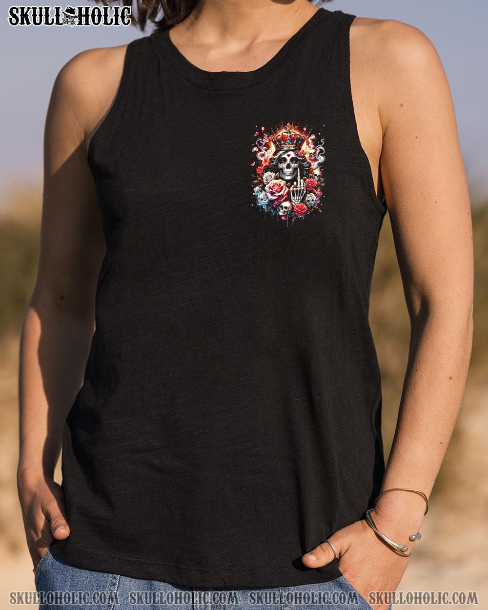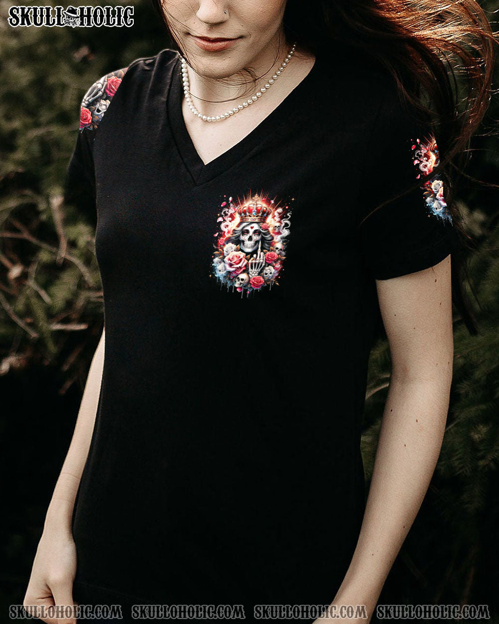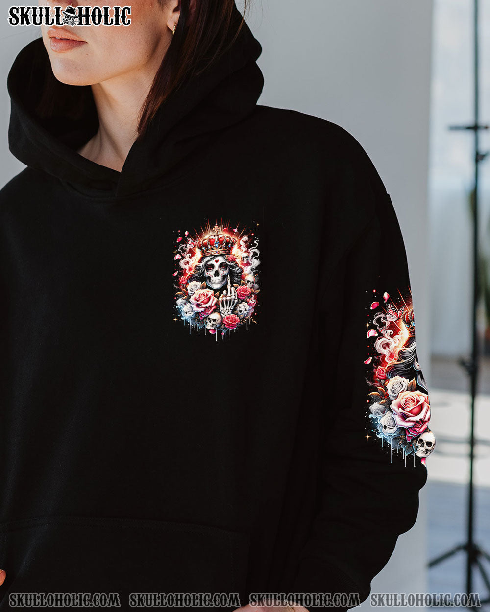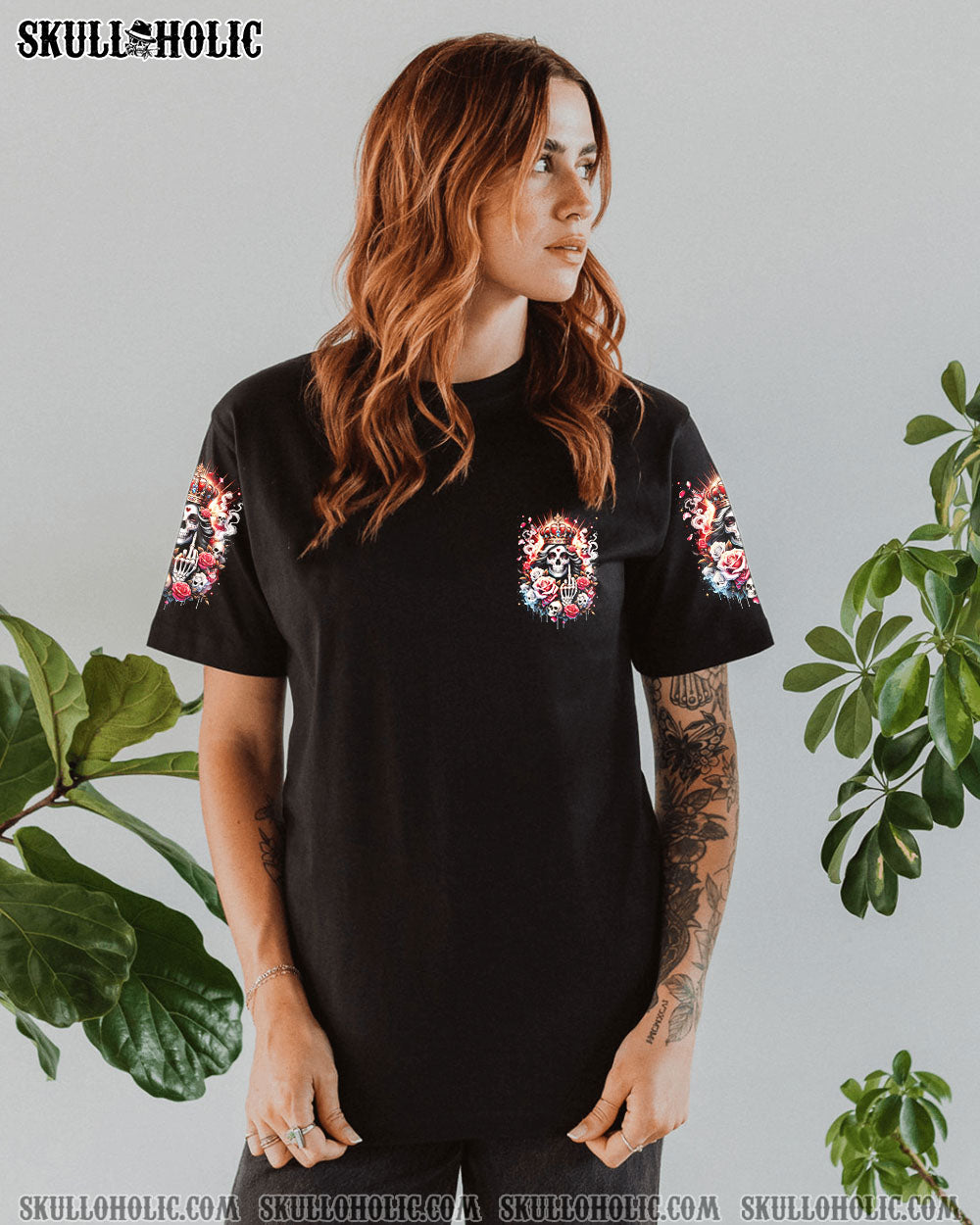 Embrace your unapologetic attitude with our LIKE ME OR NOT ALL OVER PRINT shirt. The crowned skull surrounded by fiery roses, smoke, and flames boldly declares independence. Fearless elegance meets delicate beauty in this outstanding design that celebrates individuality. Confidence reigns supreme in a world free of boundaries.
