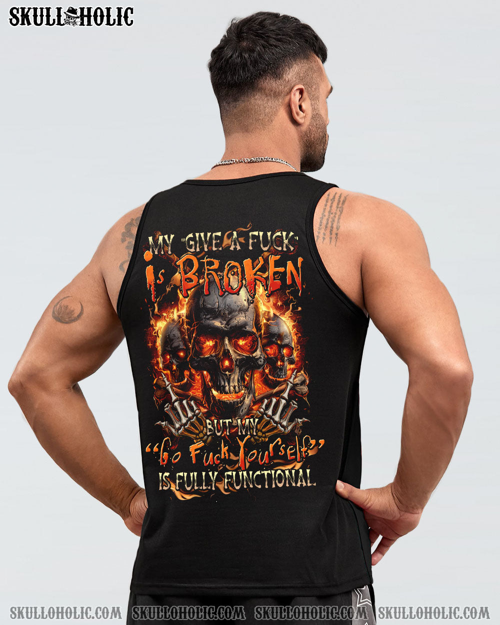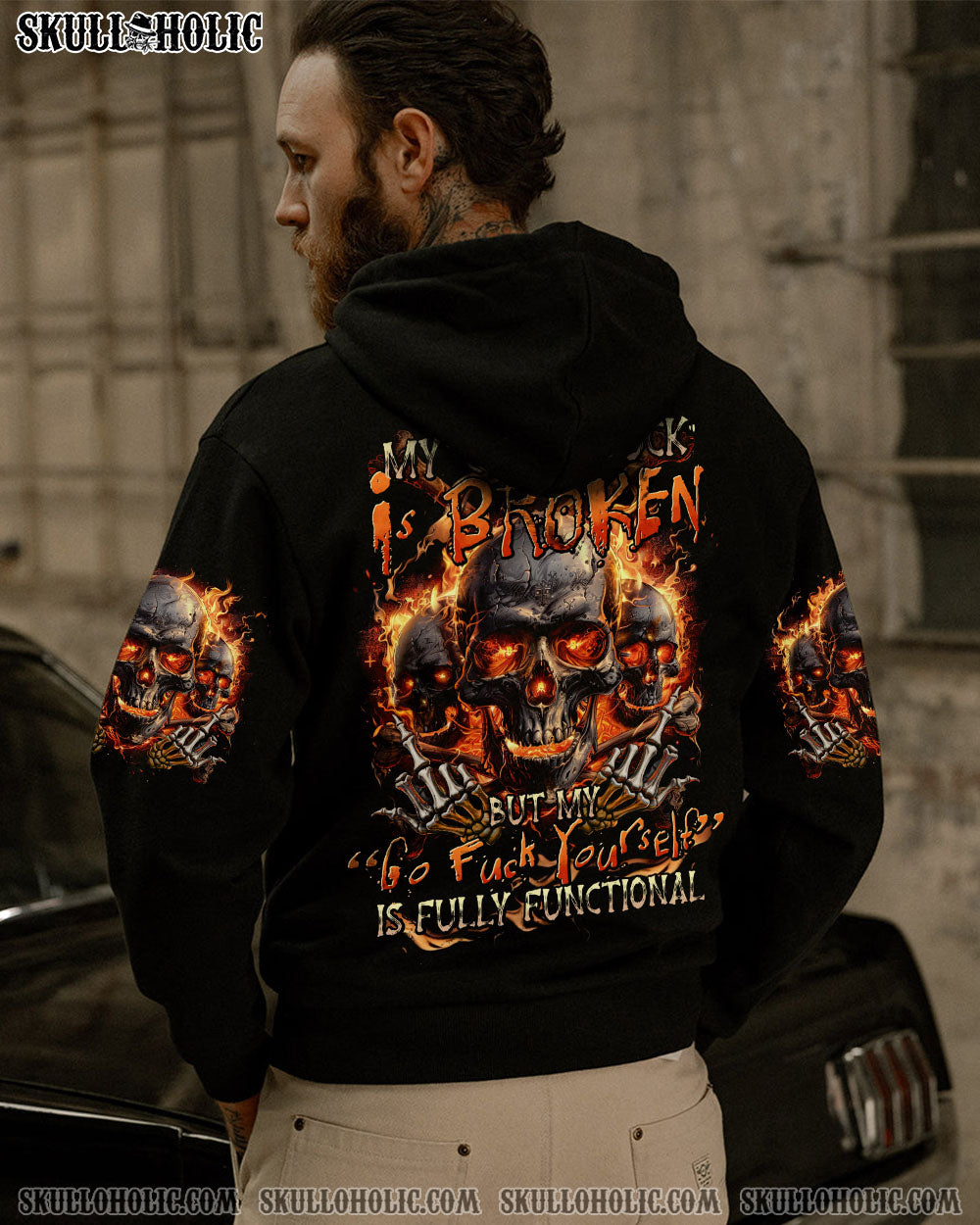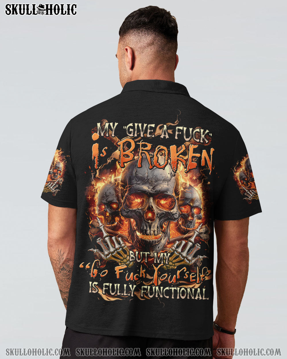Embrace the bold energy of our MY GIVE A F IS BROKEN ALL OVER PRINT. Adorned with skulls, flames, and a powerful quote, this design symbolizes resilience and determination in the face of adversity. Let it inspire you to face challenges with courage and embrace your inner strength.